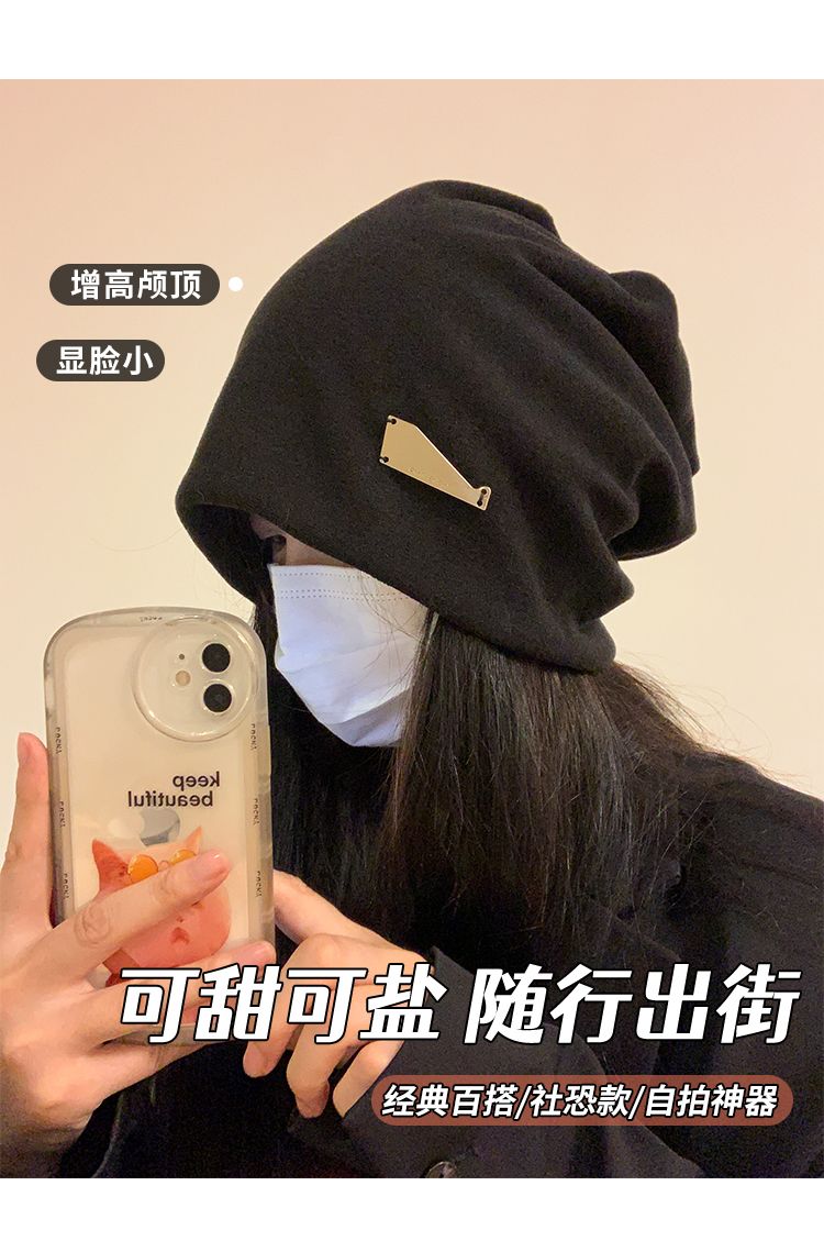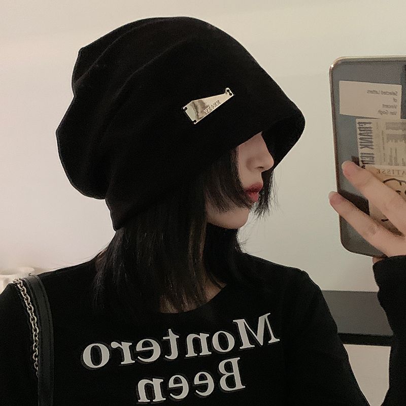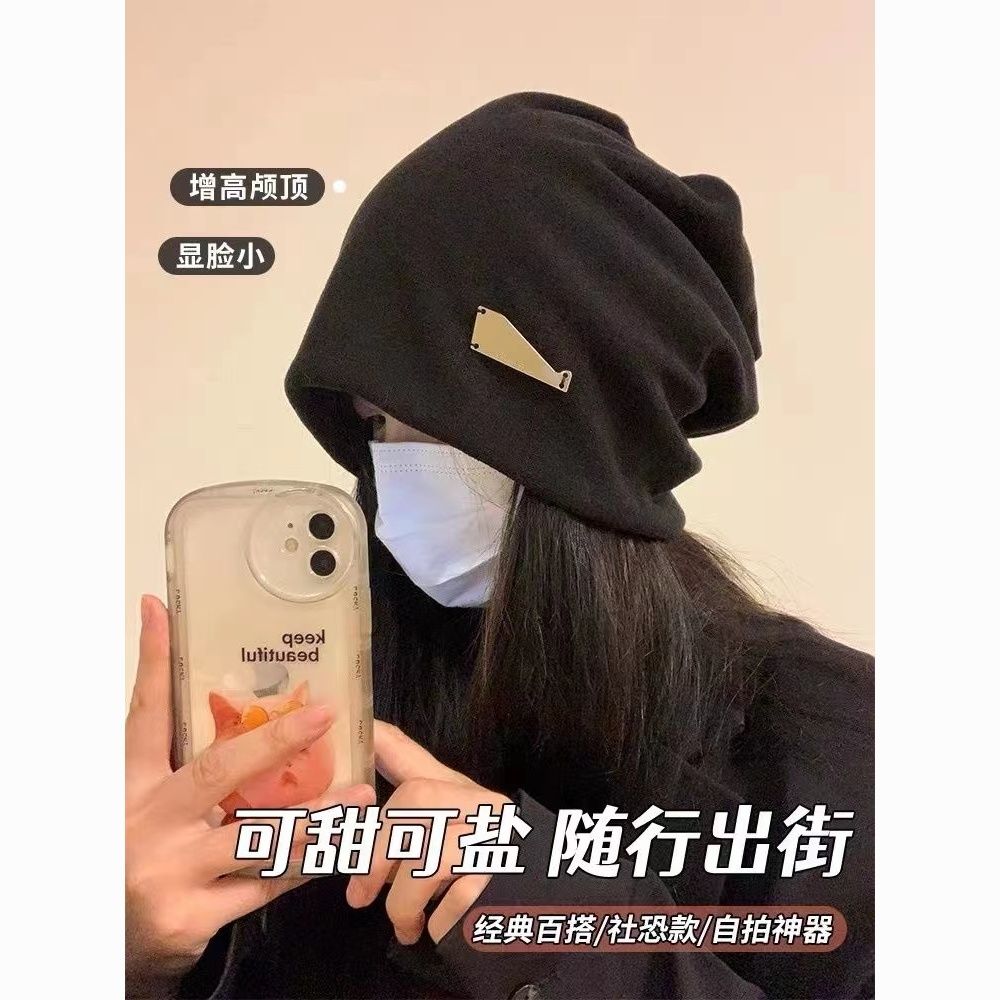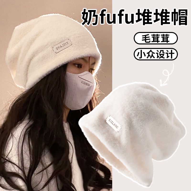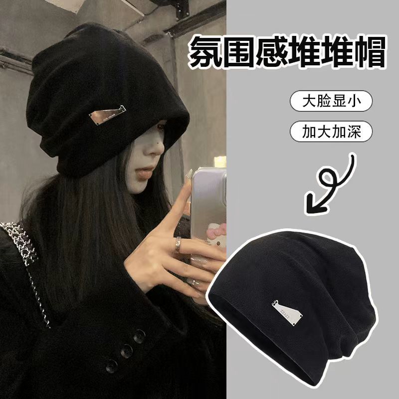 慵懒风大头围堆堆帽子女秋冬季韩版时尚新款针织冷帽显脸小包头帽