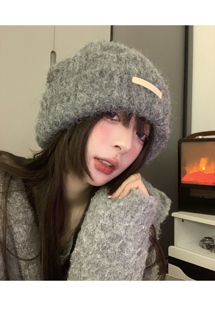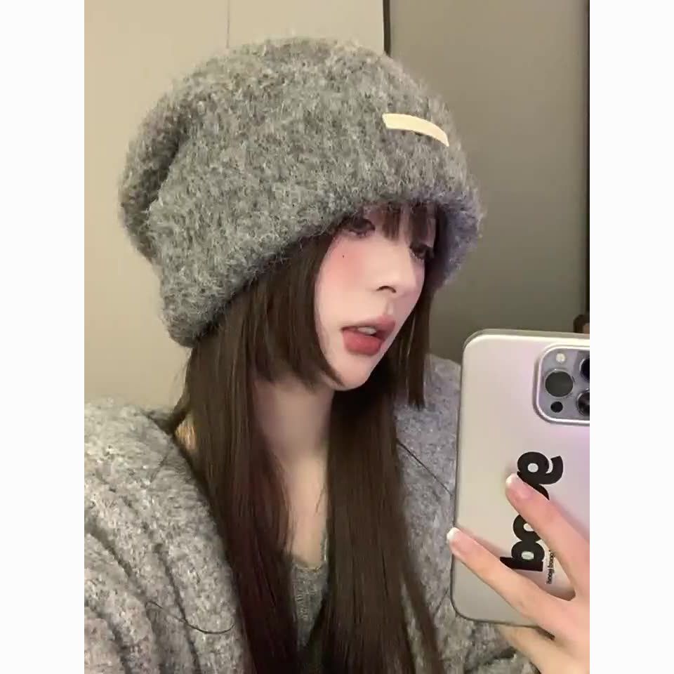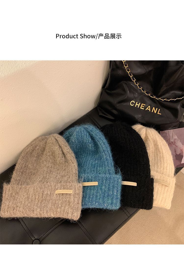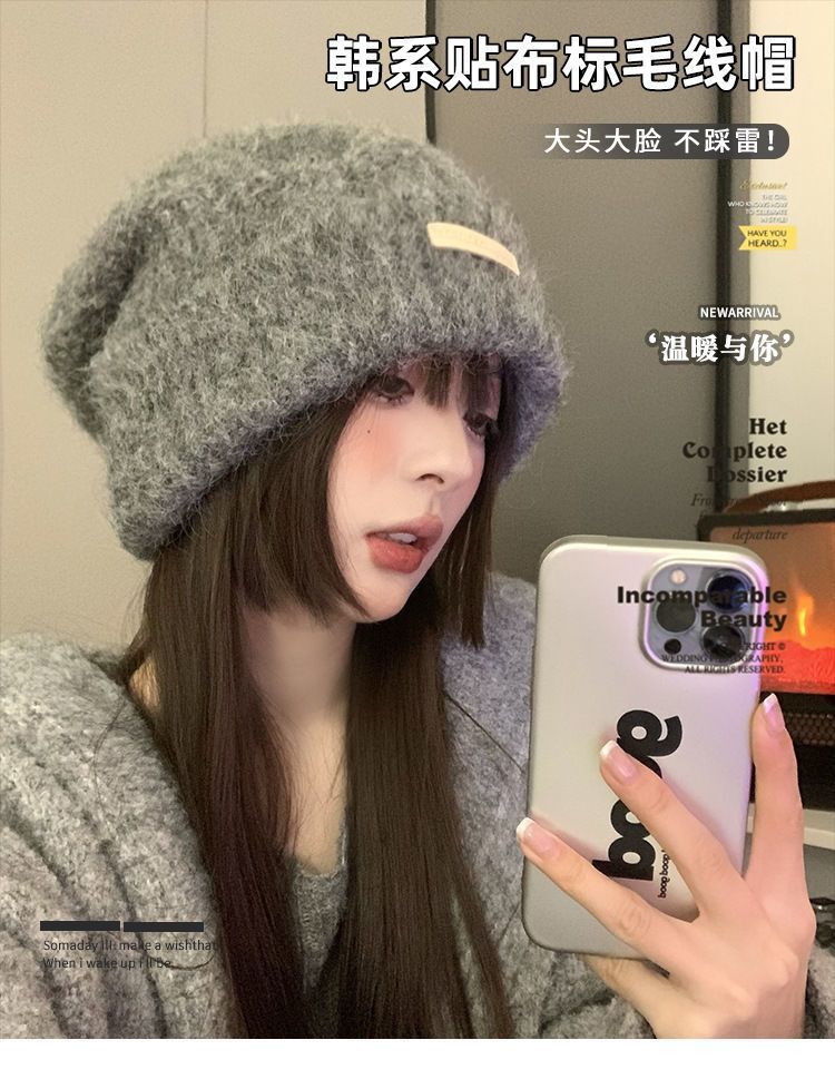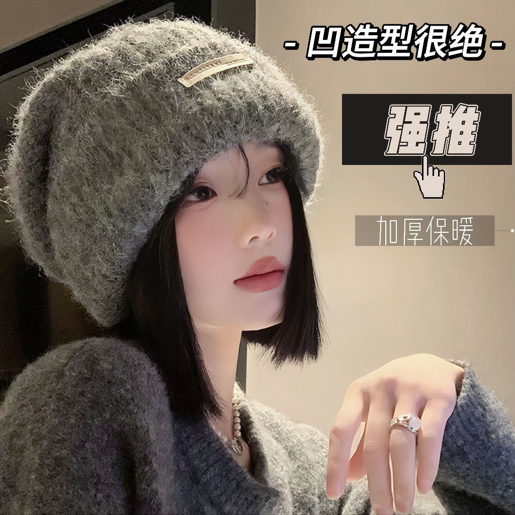 羊毛大头毛线帽堆堆帽秋冬季新款休闲加厚冷帽保暖护耳情侣针织帽