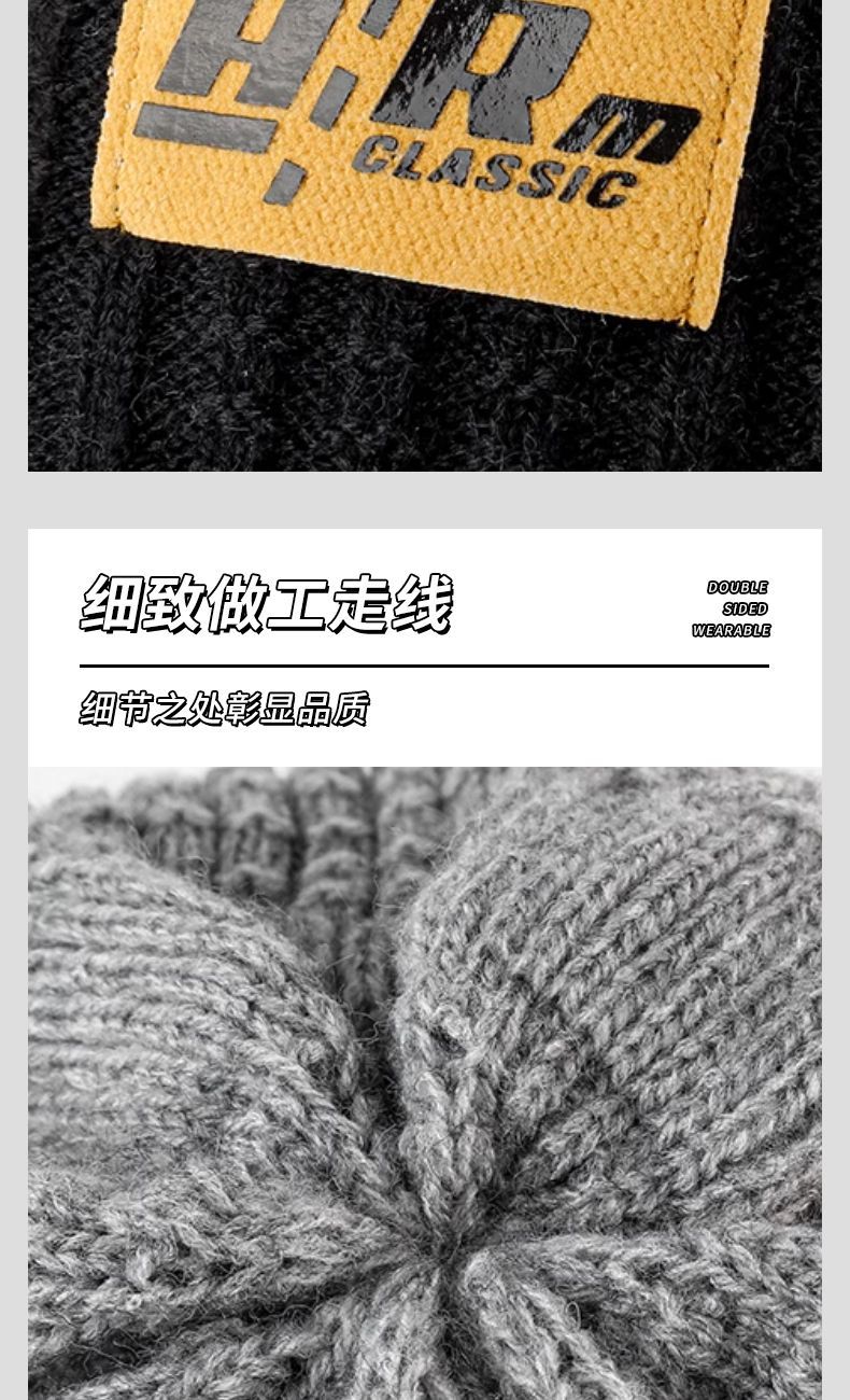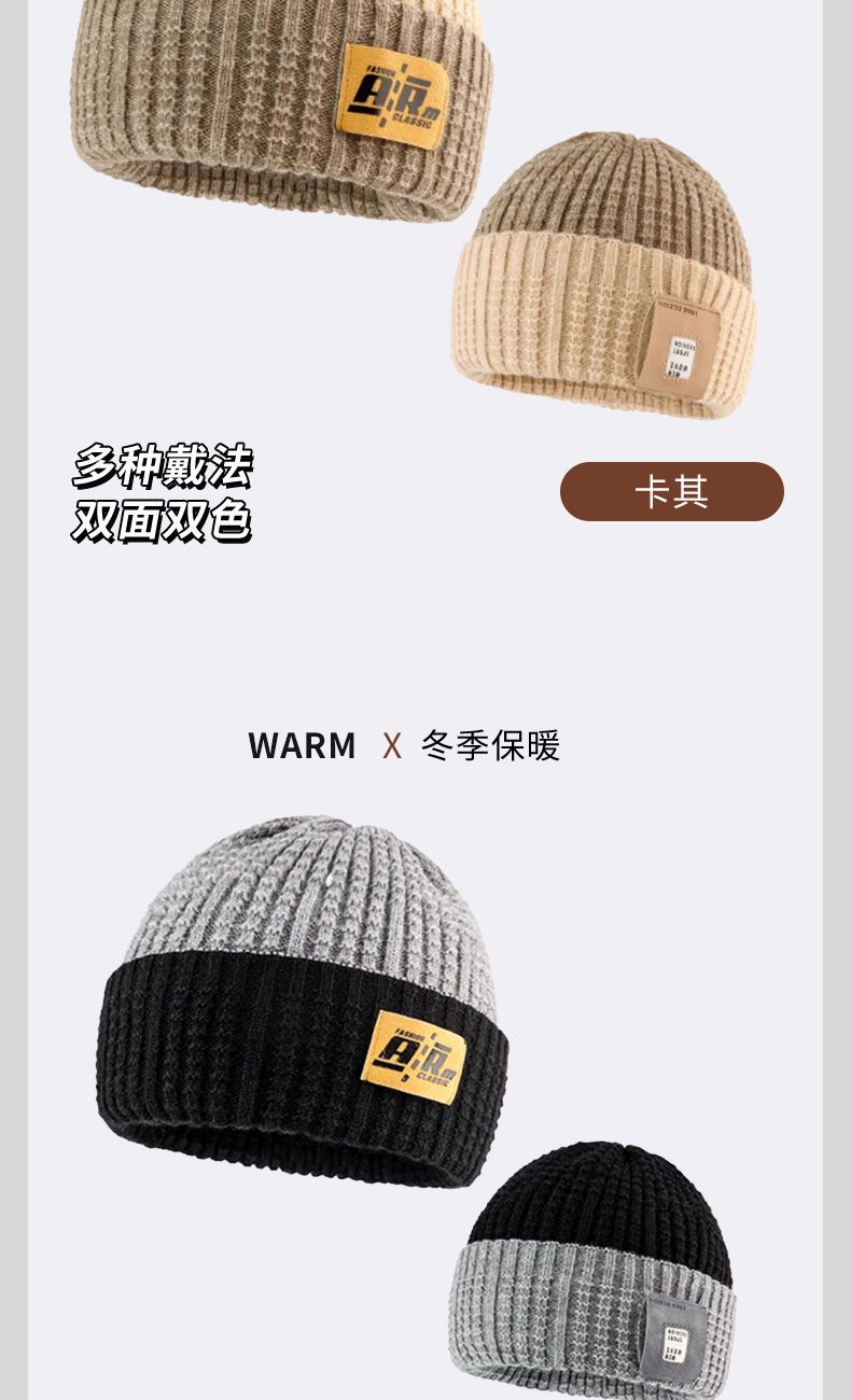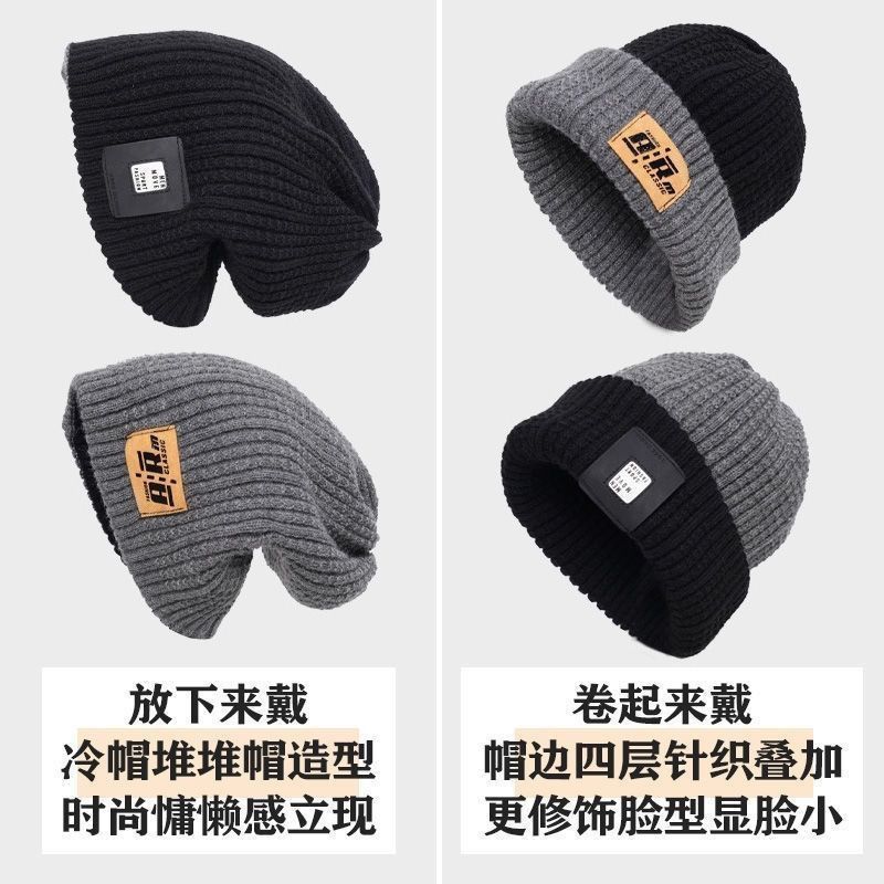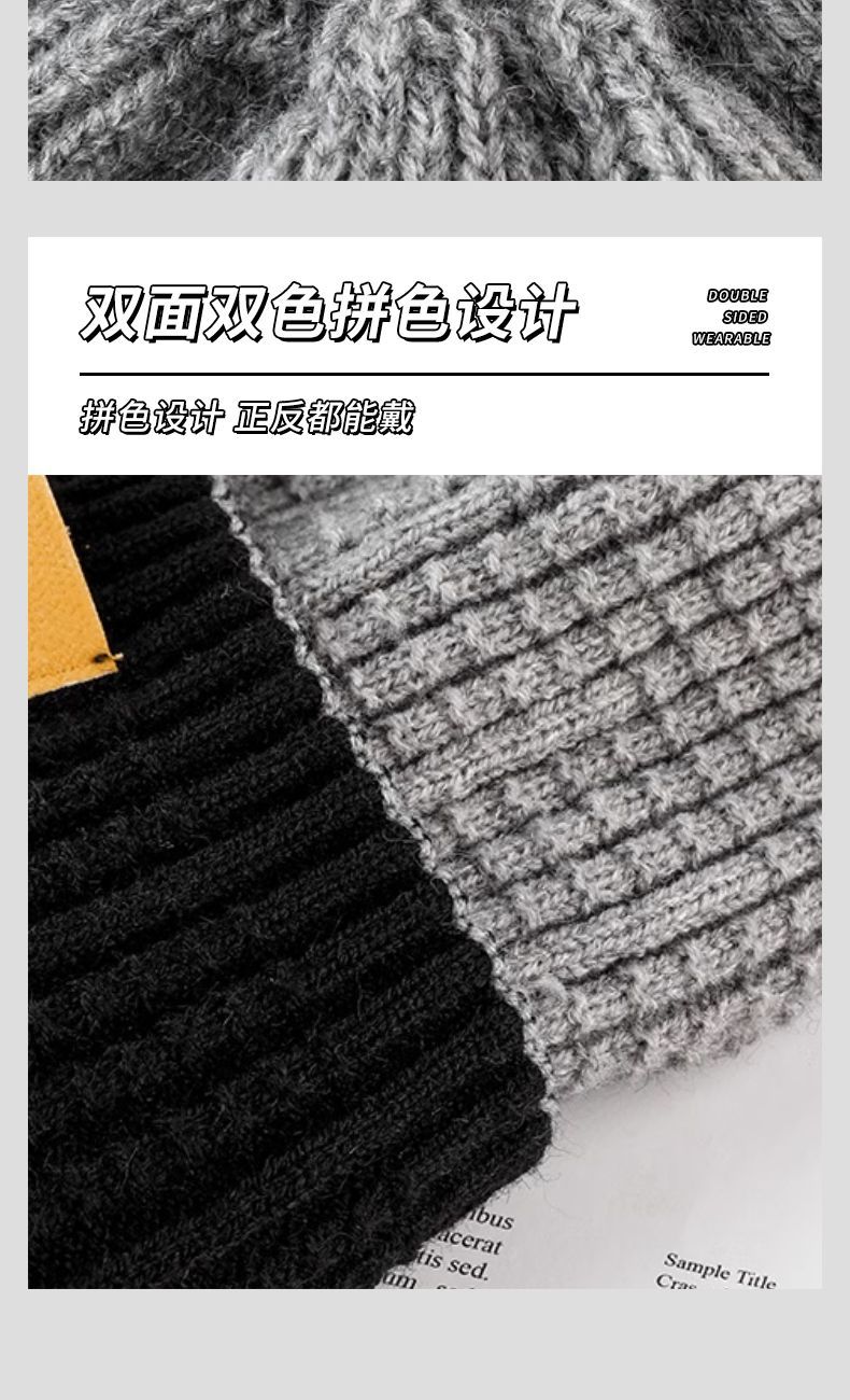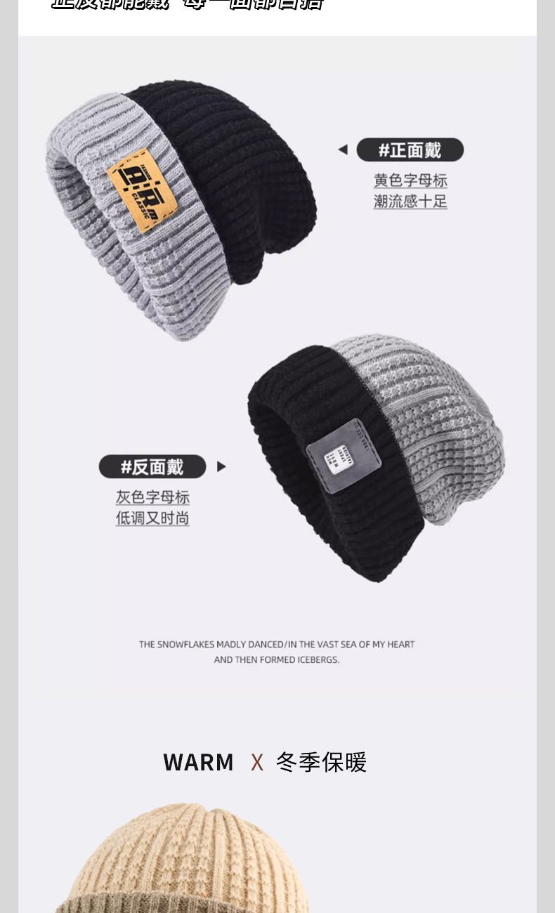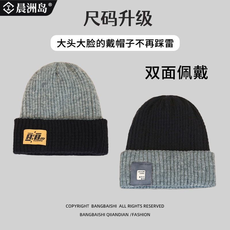 冬季针织帽子男女时尚双面大头围保暖护耳潮毛线帽子堆堆帽防寒布