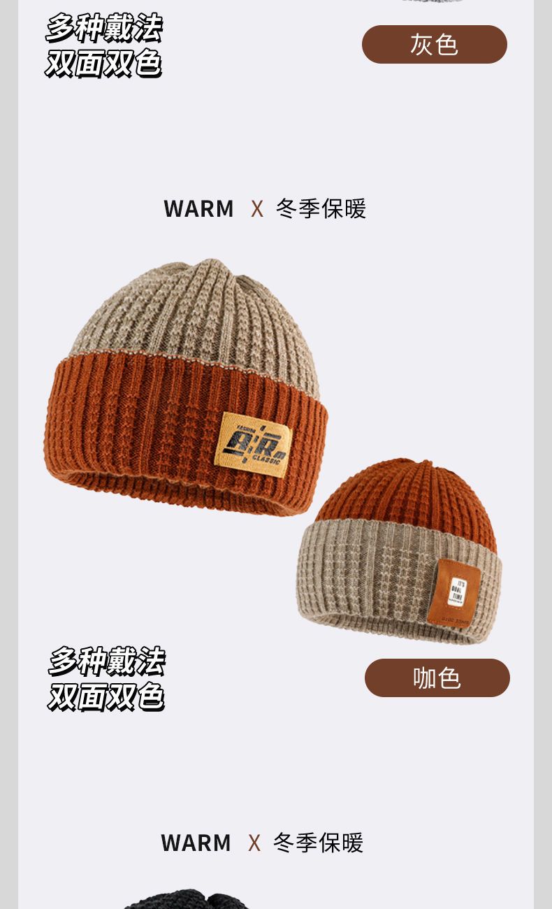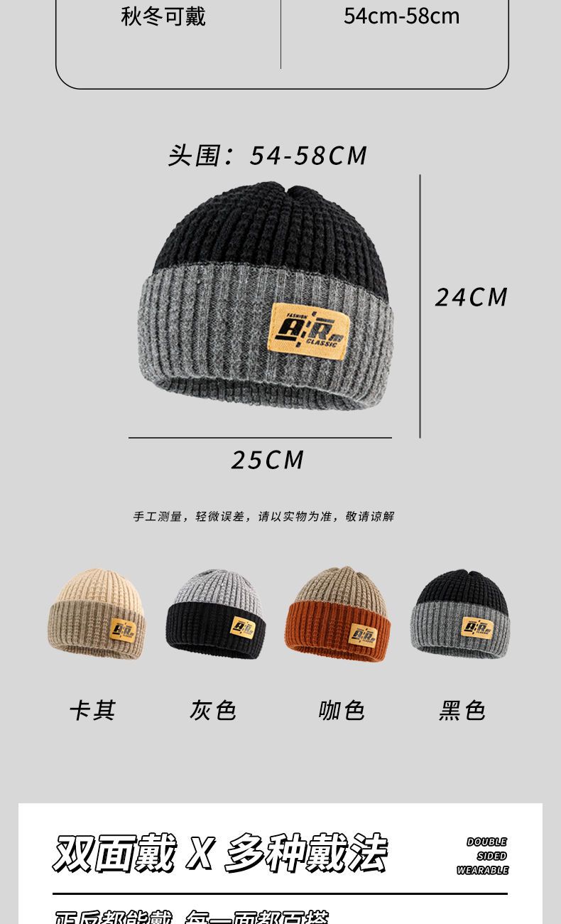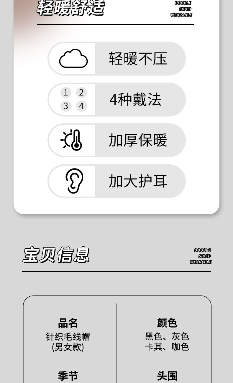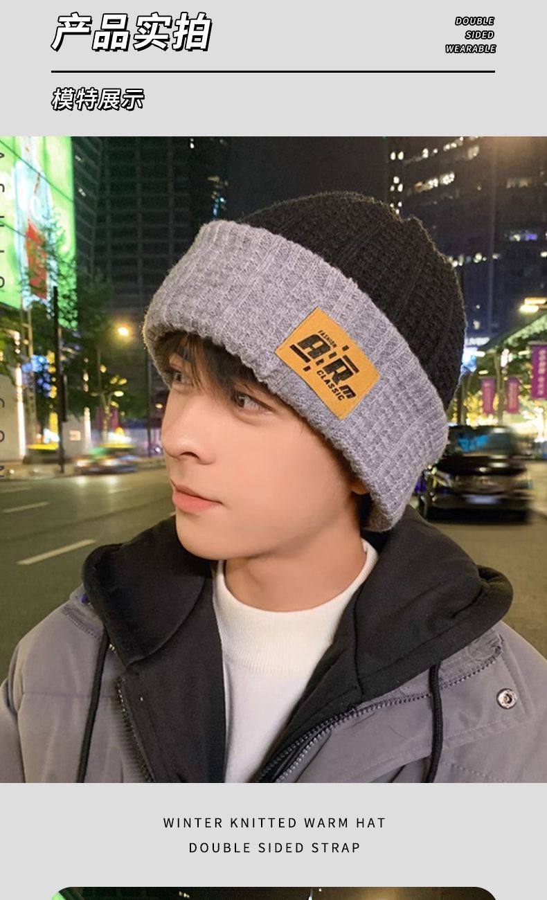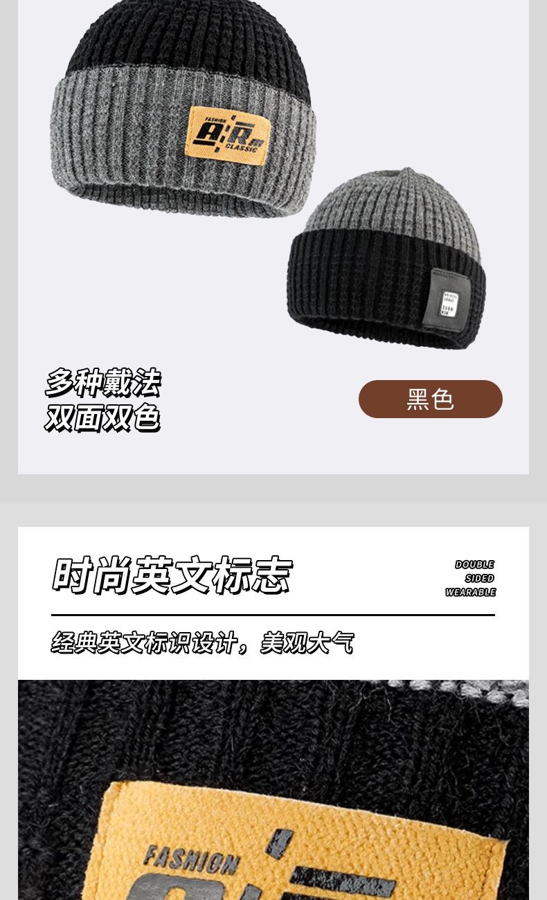 冬季针织帽子男女时尚双面大头围保暖护耳潮毛线帽子堆堆帽防寒布