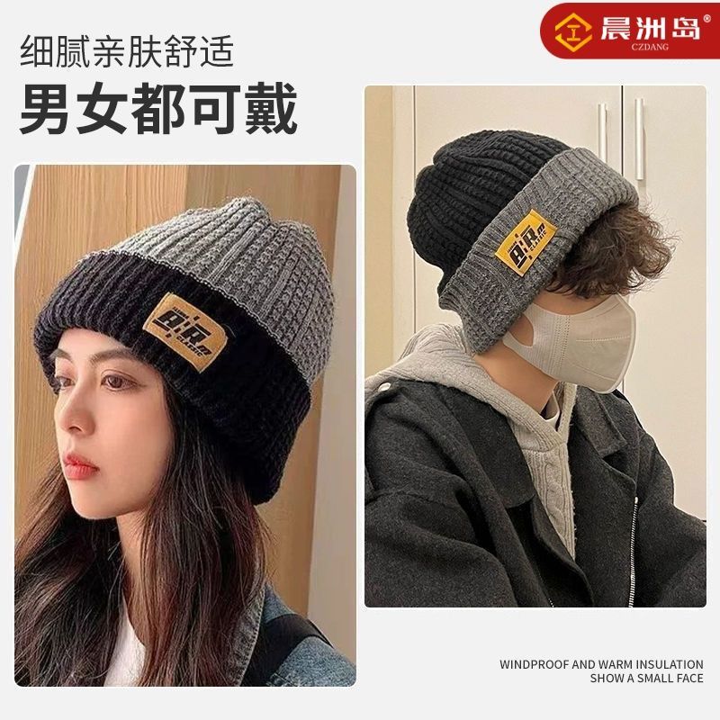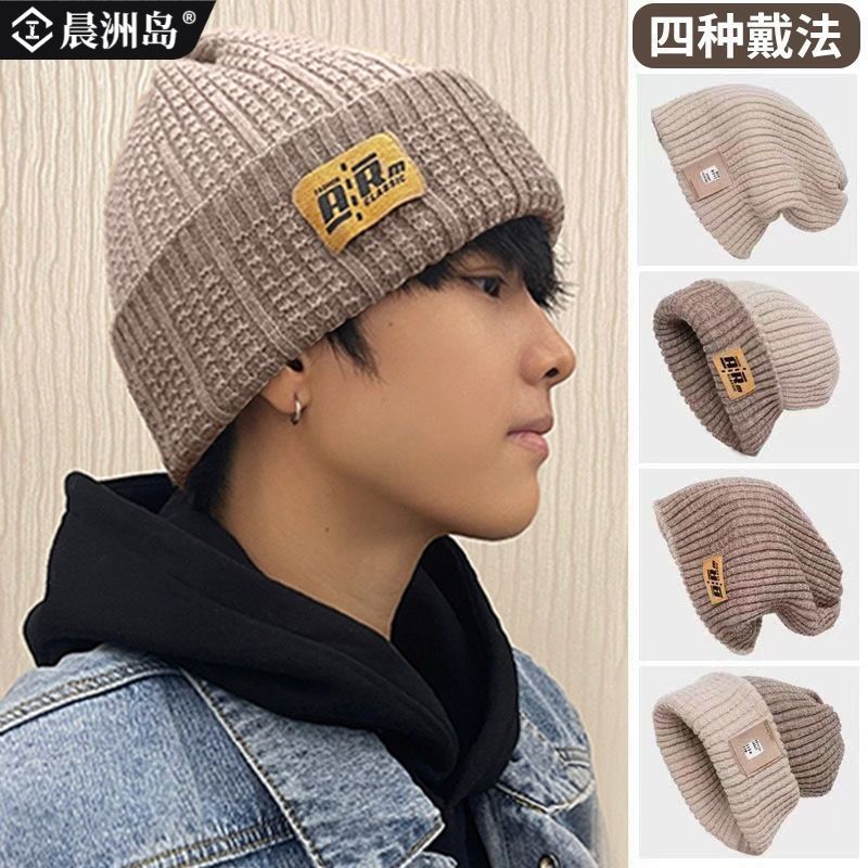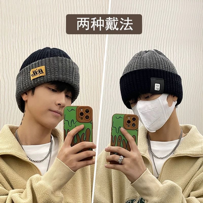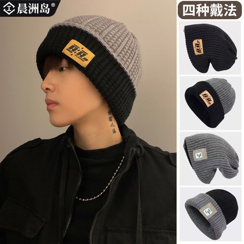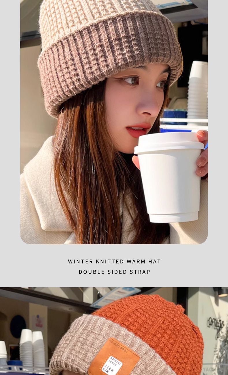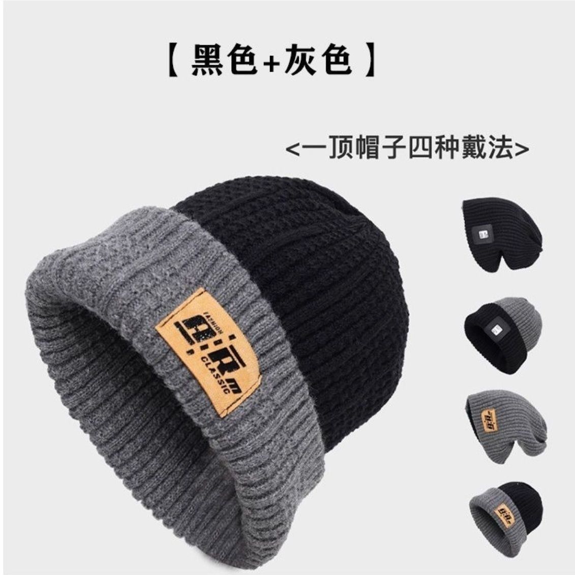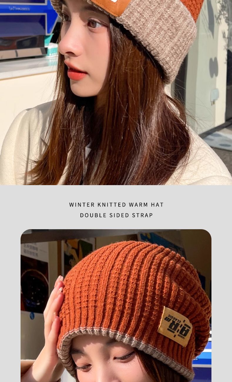 冬季针织帽子男女时尚双面大头围保暖护耳潮毛线帽子堆堆帽防寒布