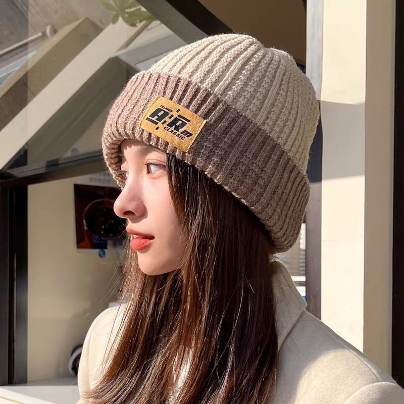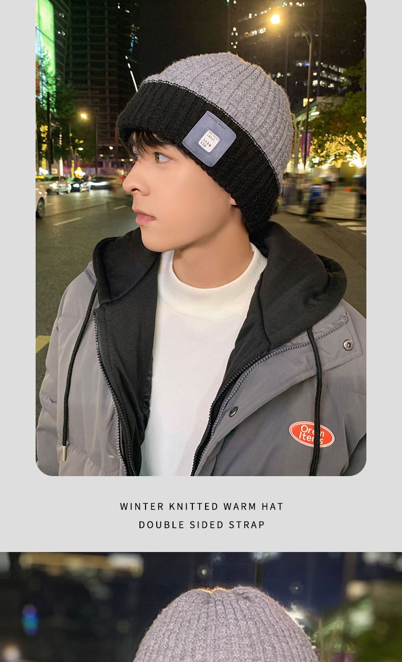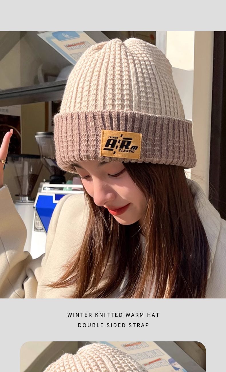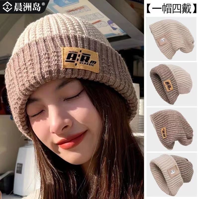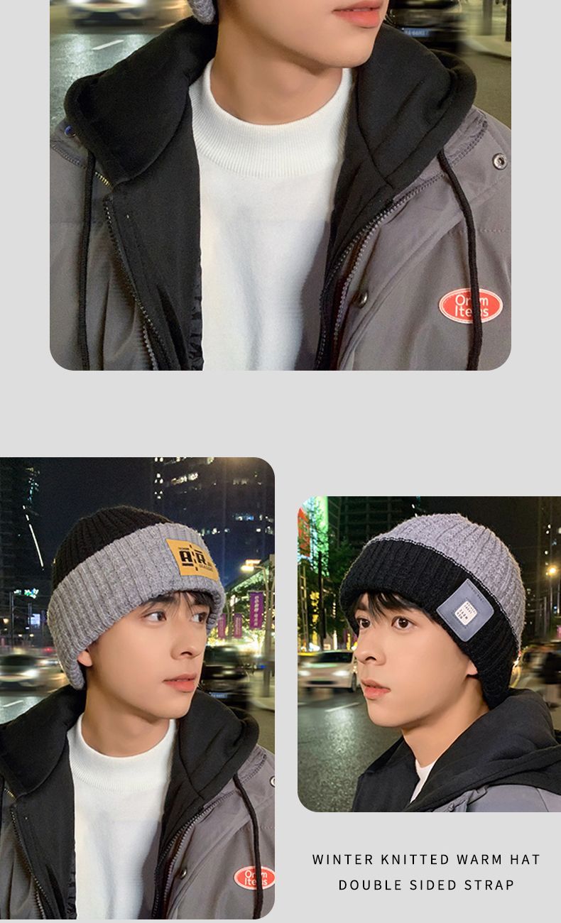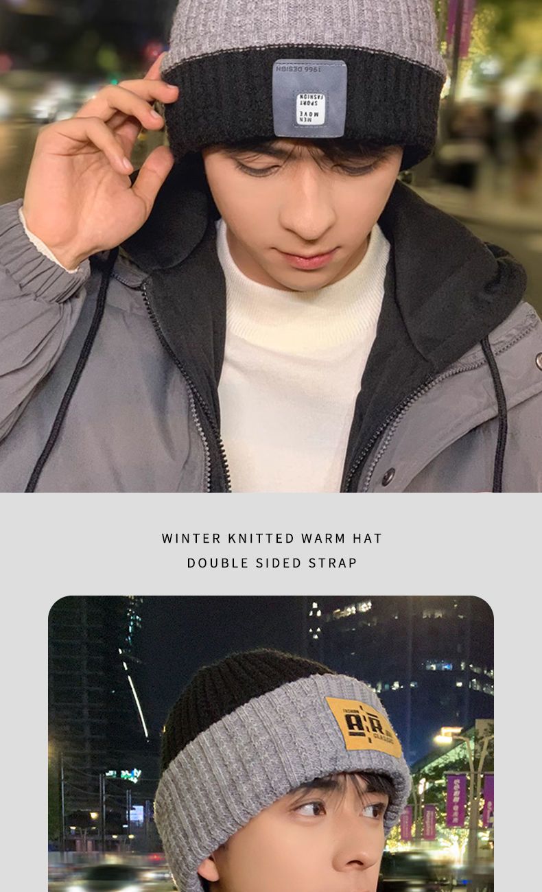 冬季针织帽子男女时尚双面大头围保暖护耳潮毛线帽子堆堆帽防寒布
