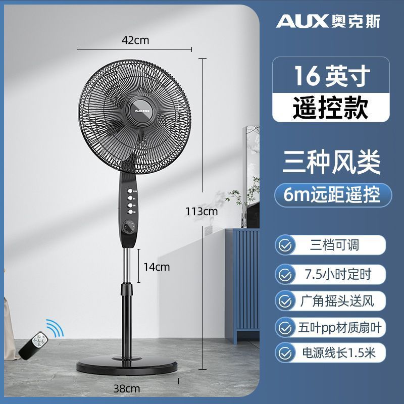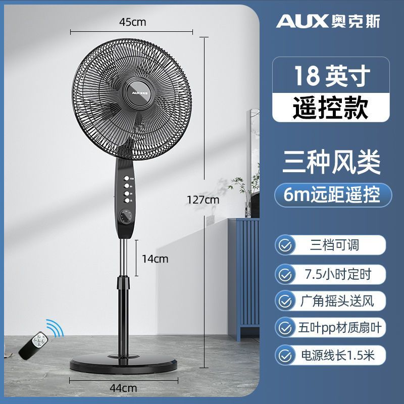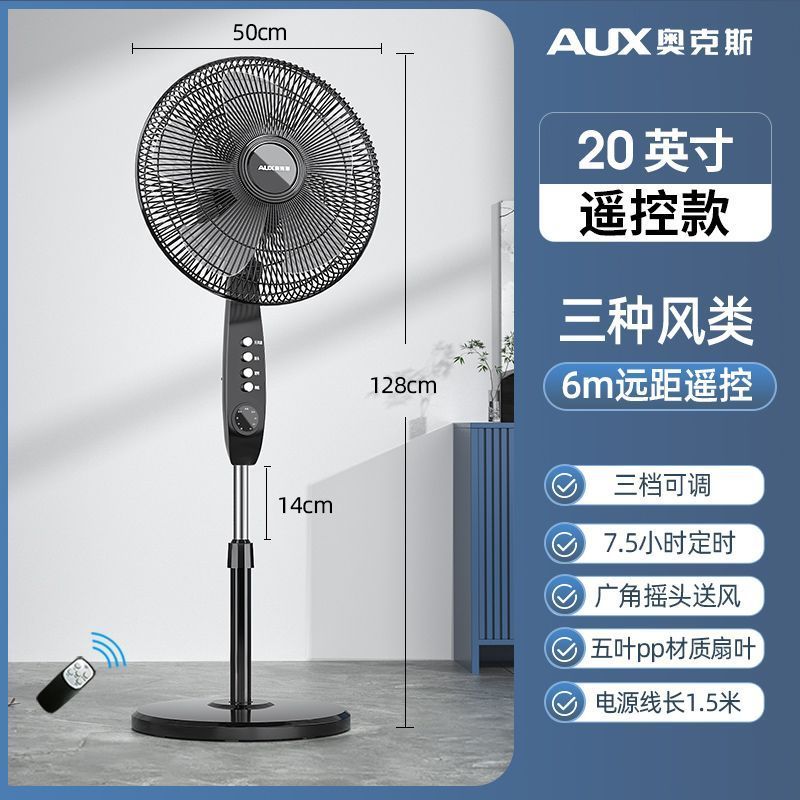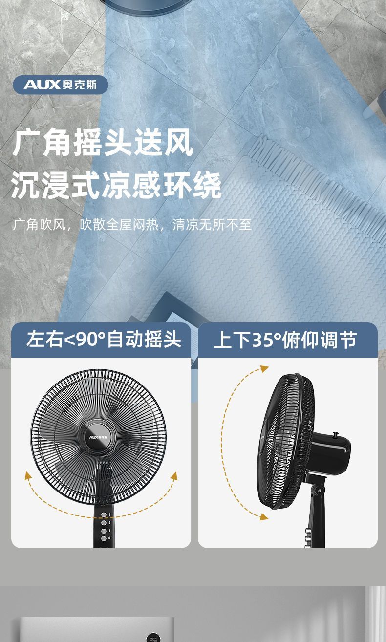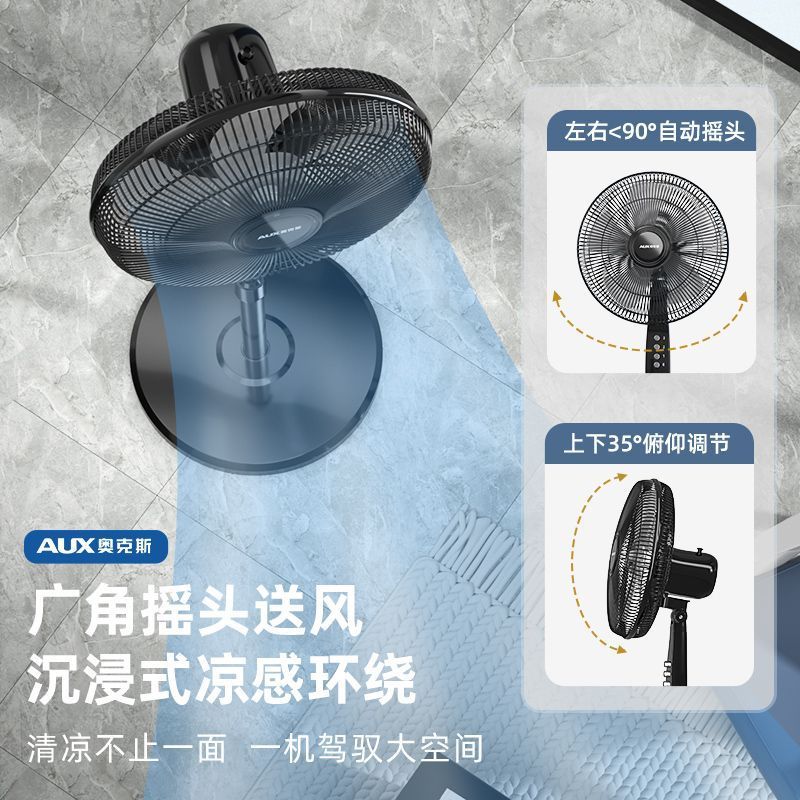 奥克斯电风扇风扇家用落地式落地扇宿舍静音摇头遥控学生定时省电