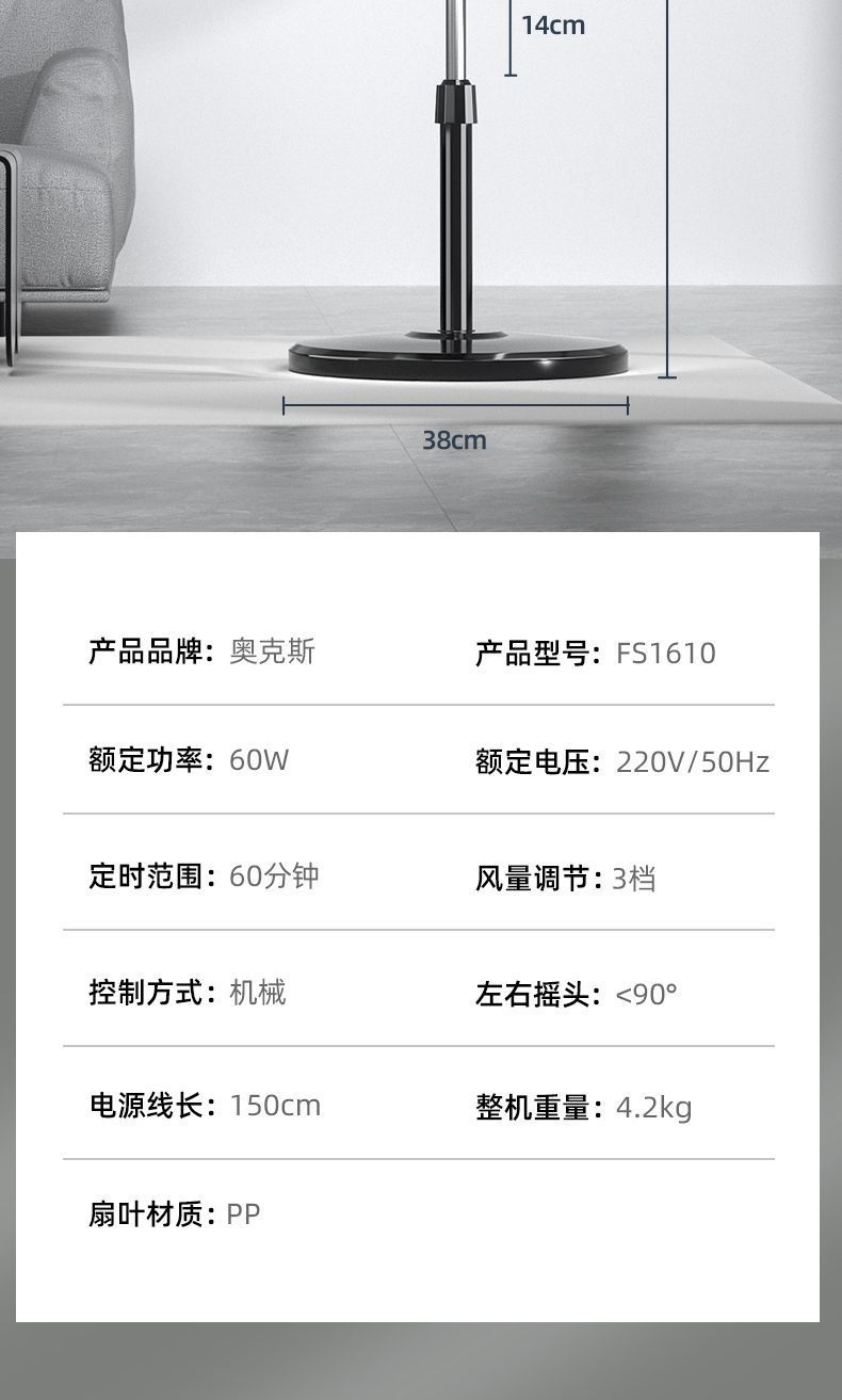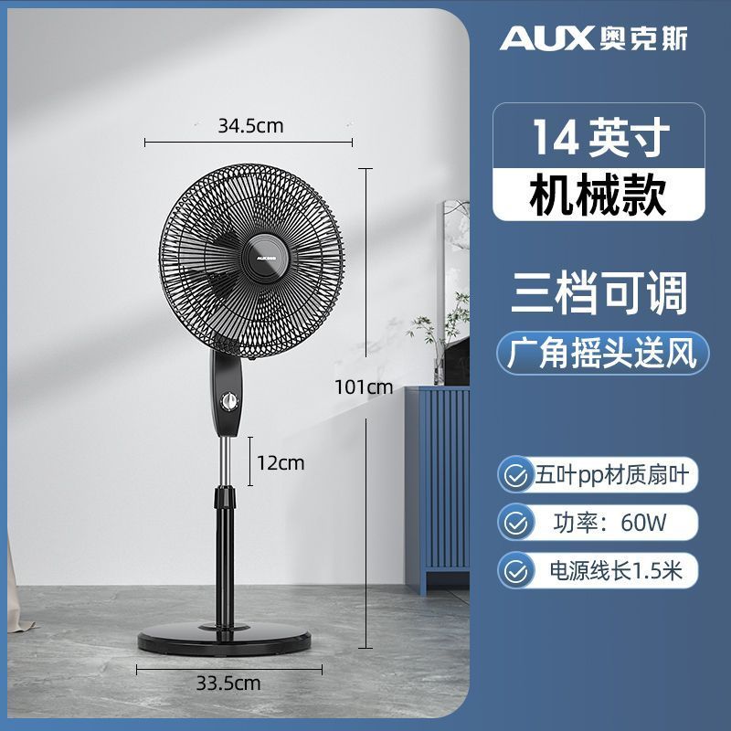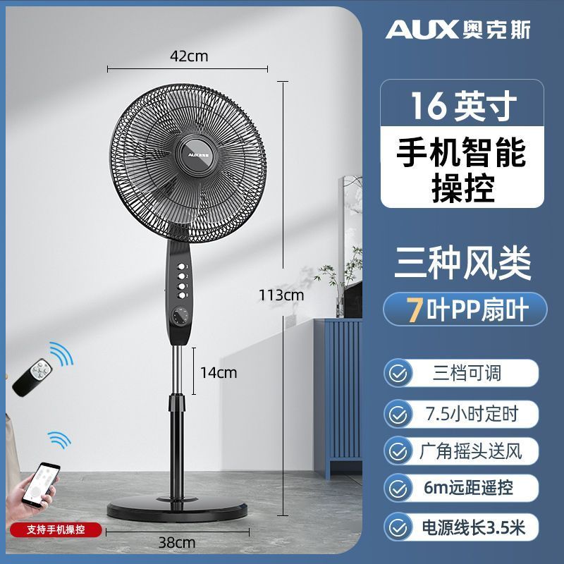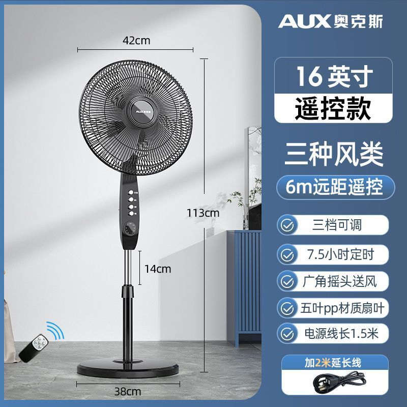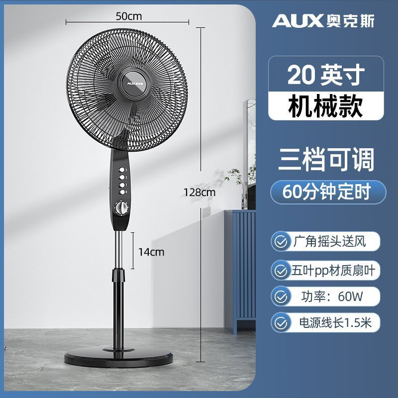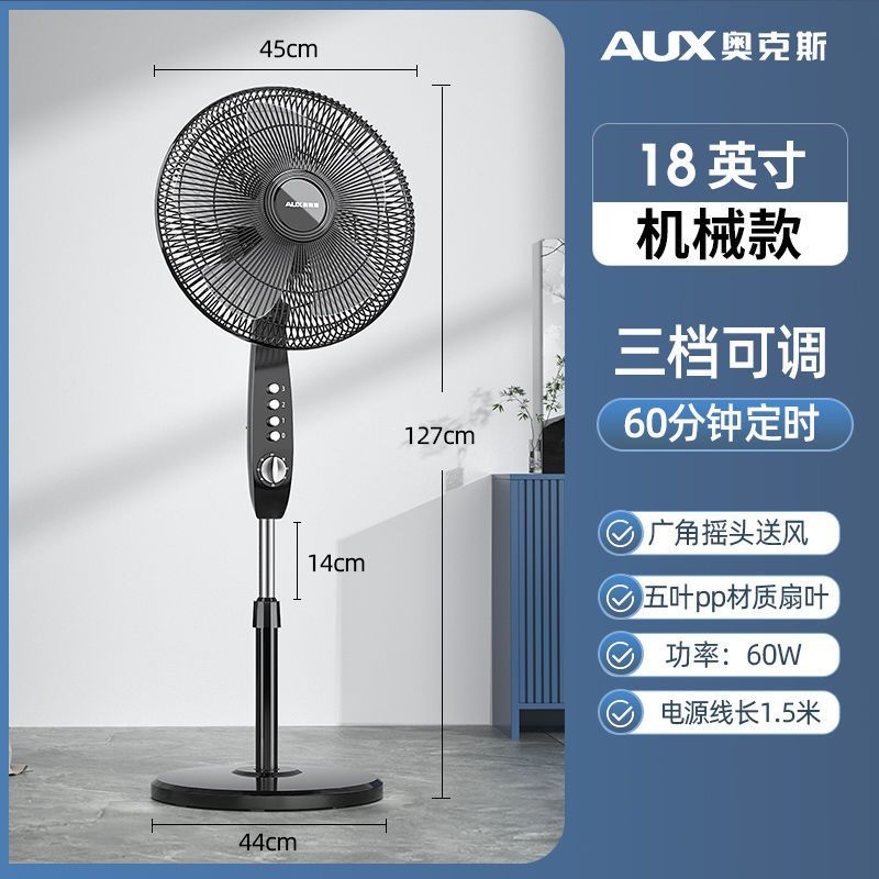 奥克斯电风扇风扇家用落地式落地扇宿舍静音摇头遥控学生定时省电
