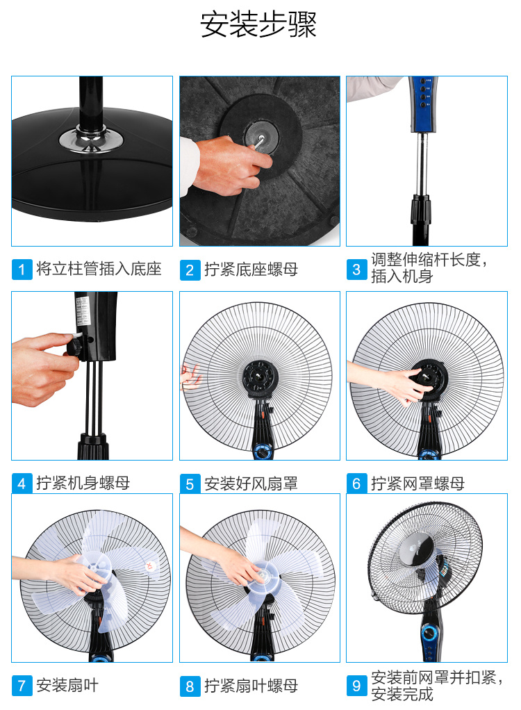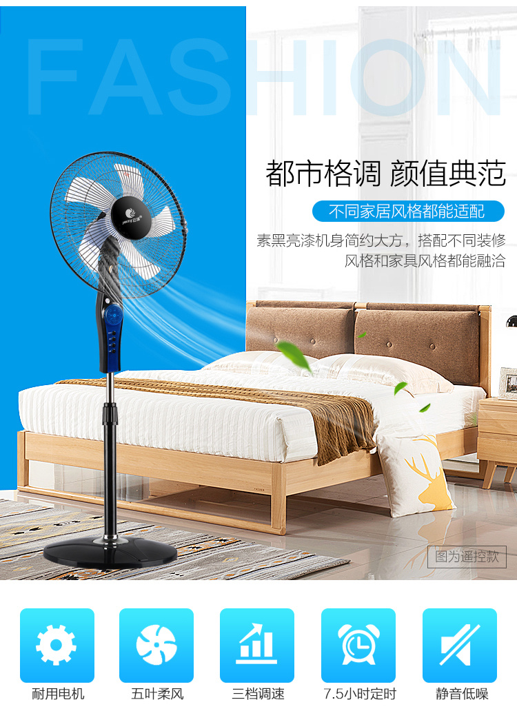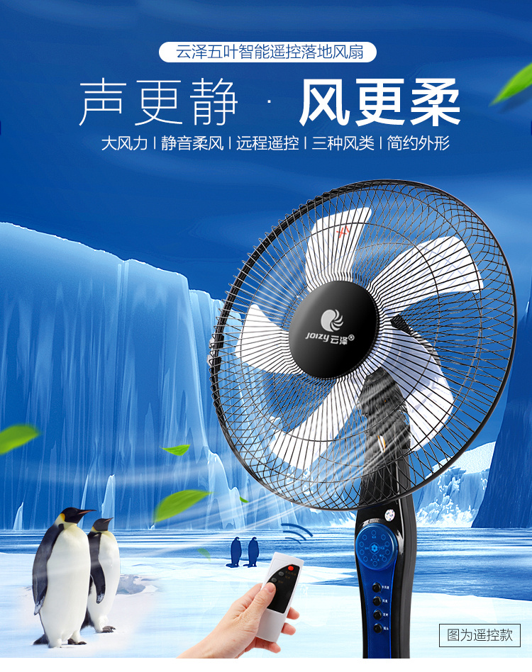 云泽电风扇家用落地扇遥控机械摇头定时台式立式升降大五叶商用