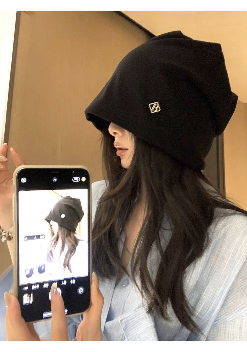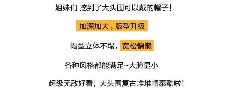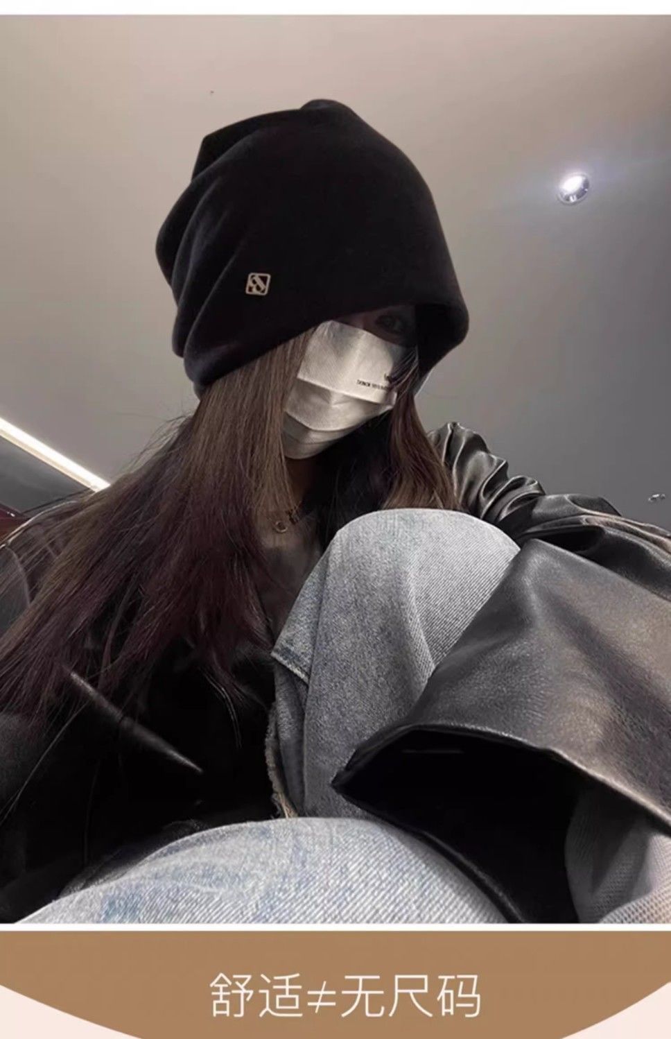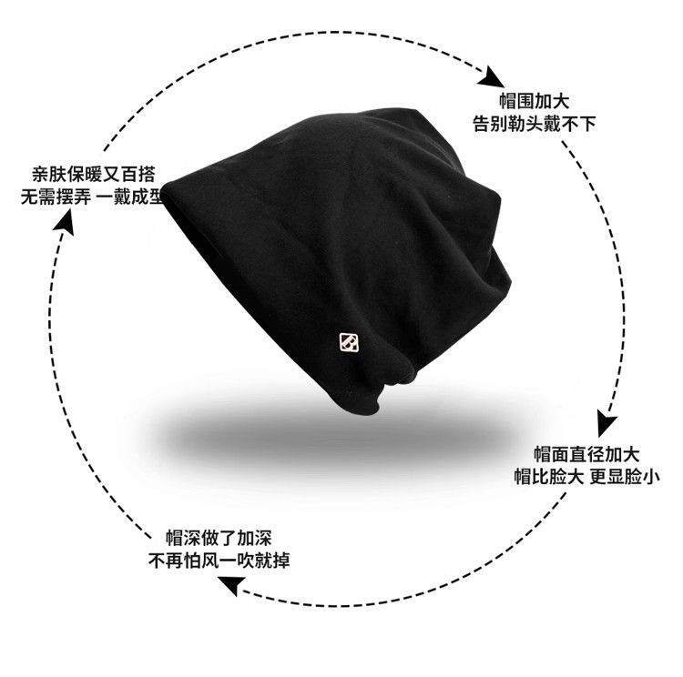 堆堆帽子女慵懒风套头帽大头围秋冬季新款韩版冷帽显脸小包头帽潮
