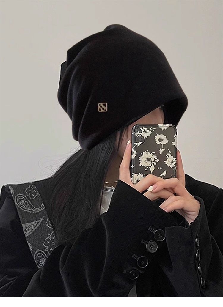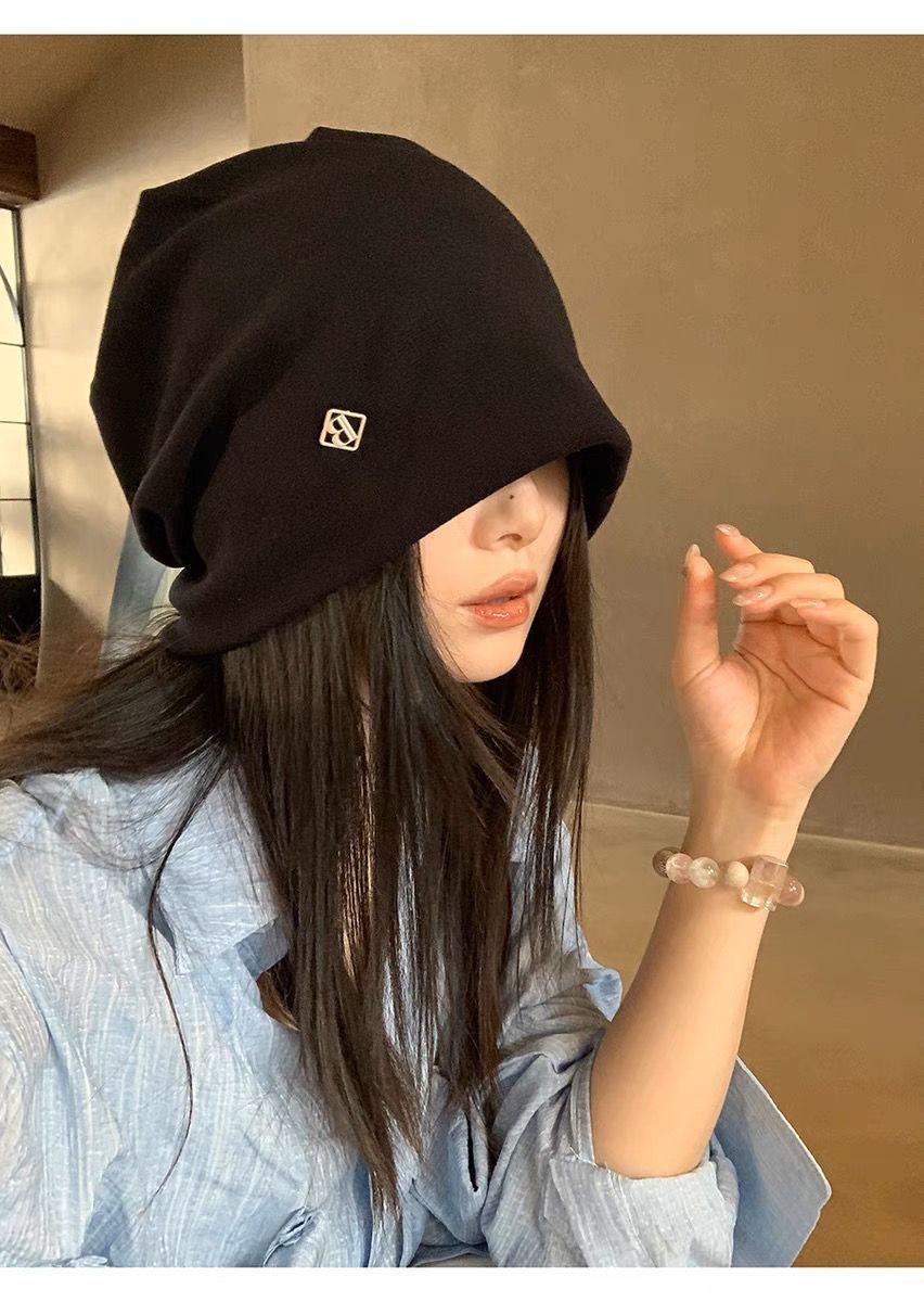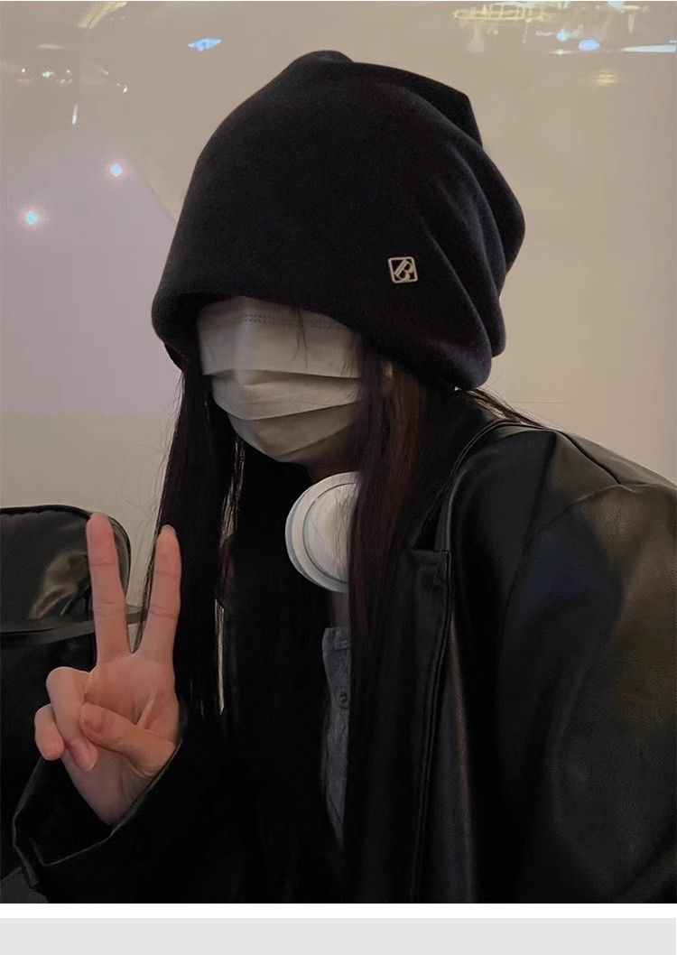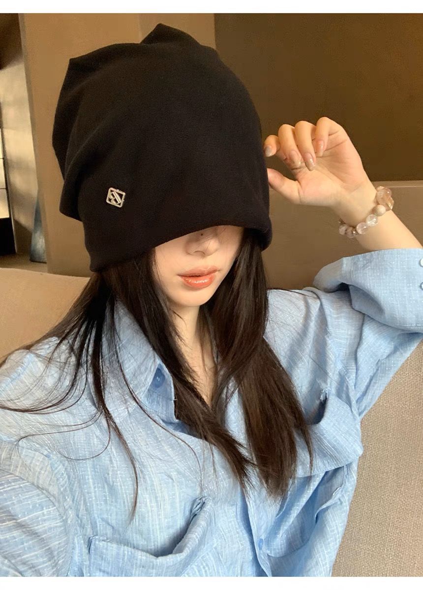 堆堆帽子女慵懒风套头帽大头围秋冬季新款韩版冷帽显脸小包头帽潮