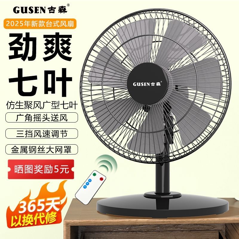 古森台式电风扇家用16寸台扇摇头落地扇遥控宿舍节能床头台式风扇