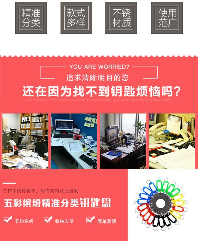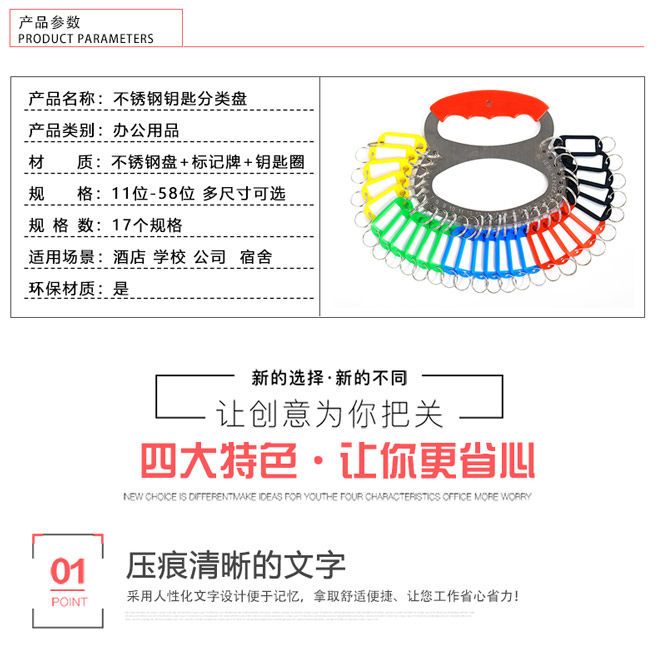 钥匙盘加厚不锈钢标记牌钥匙板钥匙收纳管理钥匙圈环