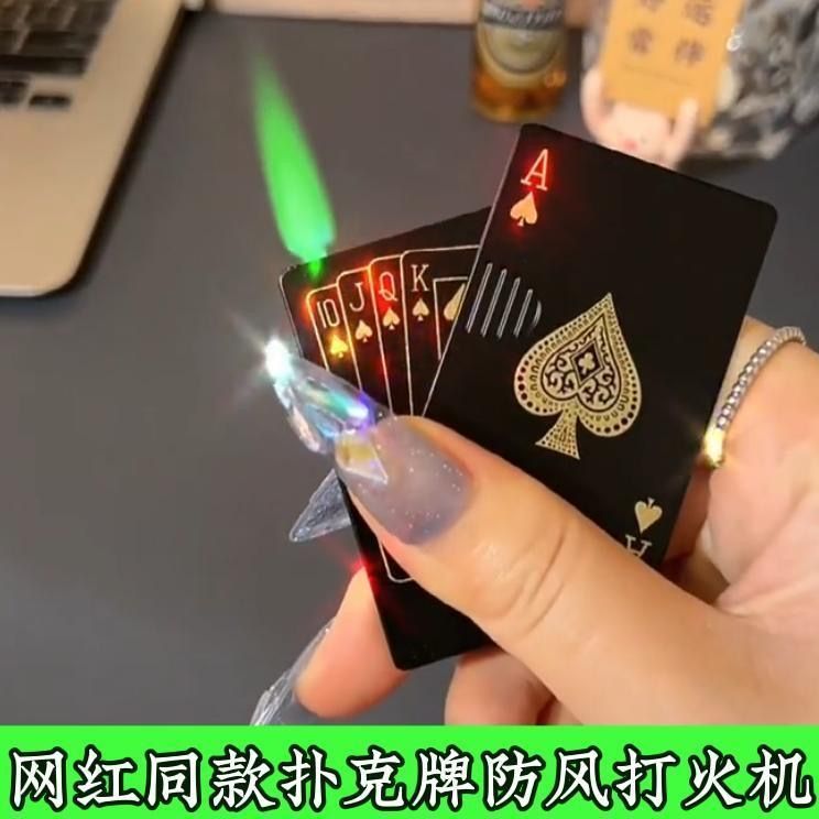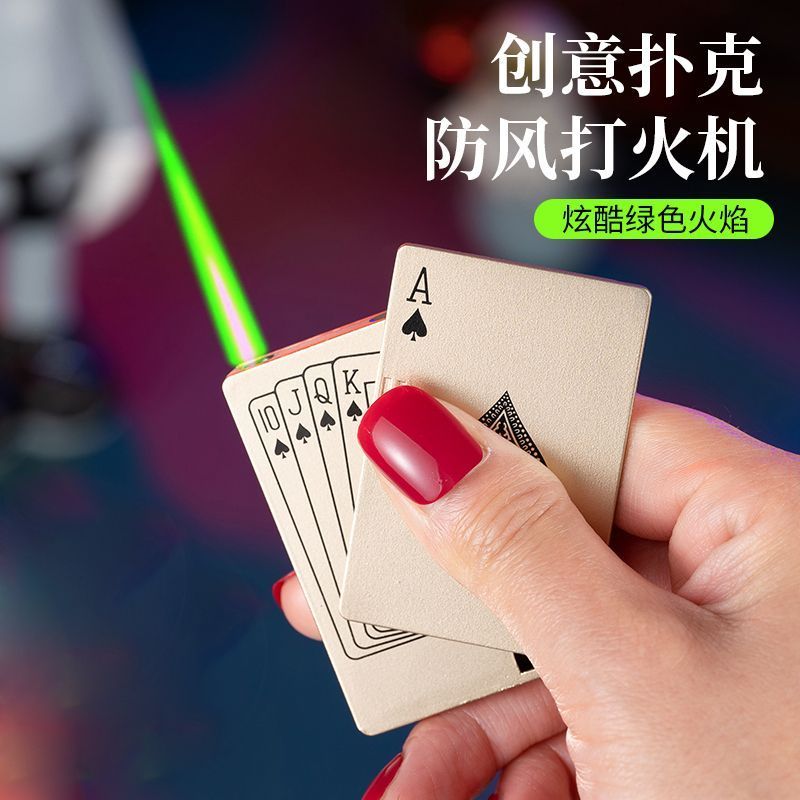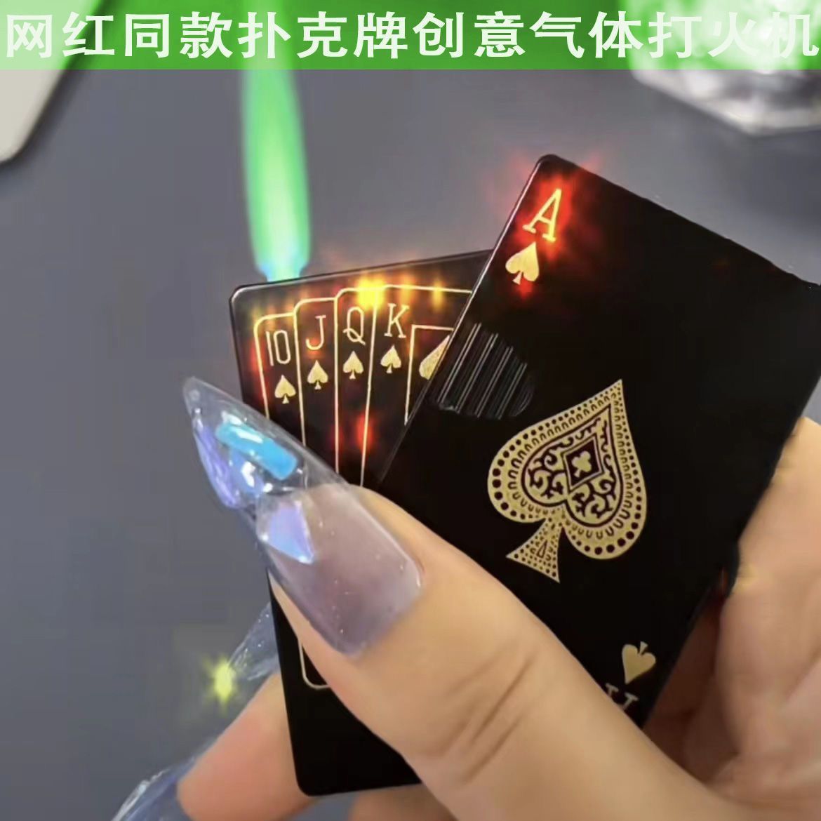 抖音快手同款黑桃A扑克牌充气绿焰打火机防风创意定制送男友老公