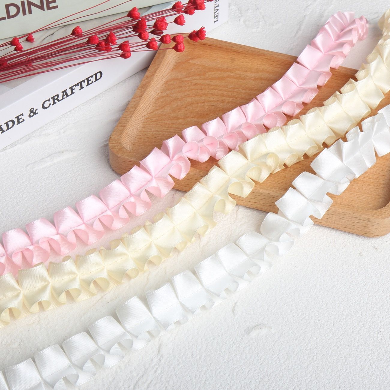 2.5cm双边涤纶打皱加密丝带服装diy蕾丝荷叶边洛丽塔头饰花边辅料
