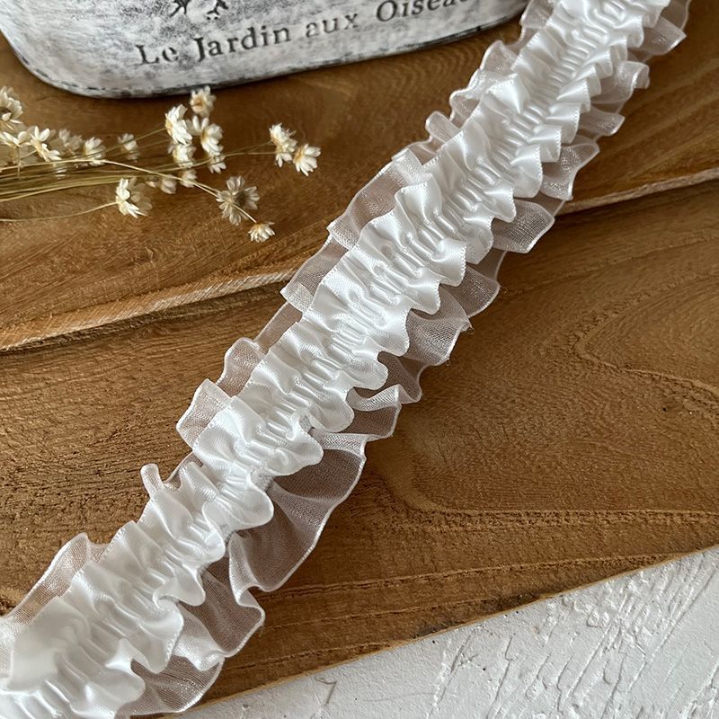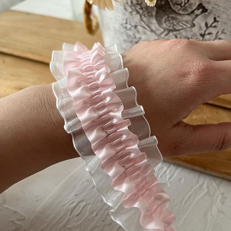 4CM宽小香风双层弹力蕾丝花边辅料木耳松紧手工洛丽塔娃衣装饰