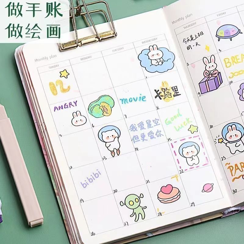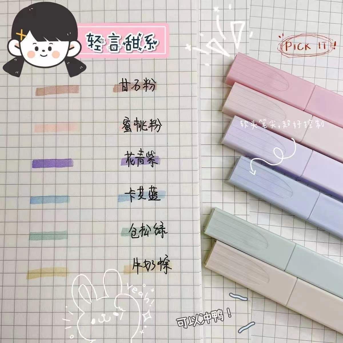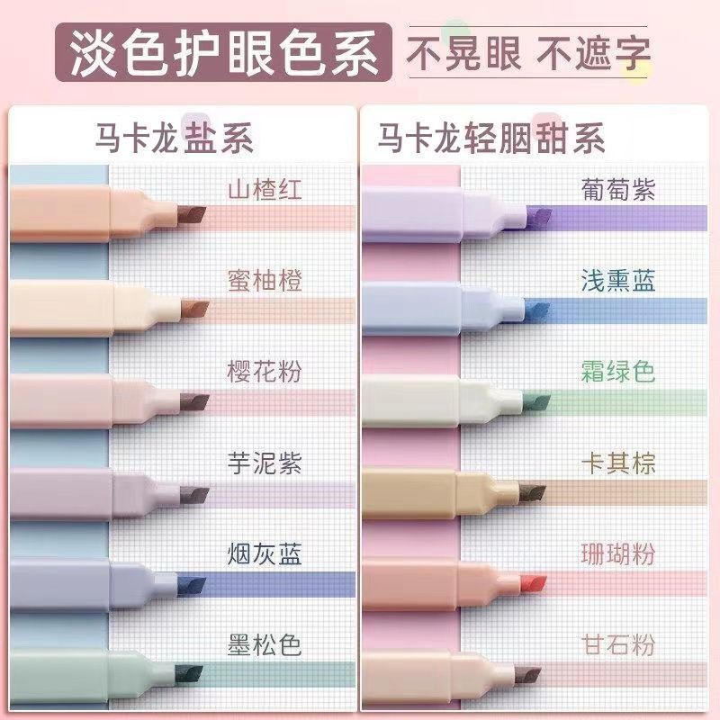 莫兰迪荧光笔ins复古色记号笔马卡龙色笔记笔学生重点标记笔套装