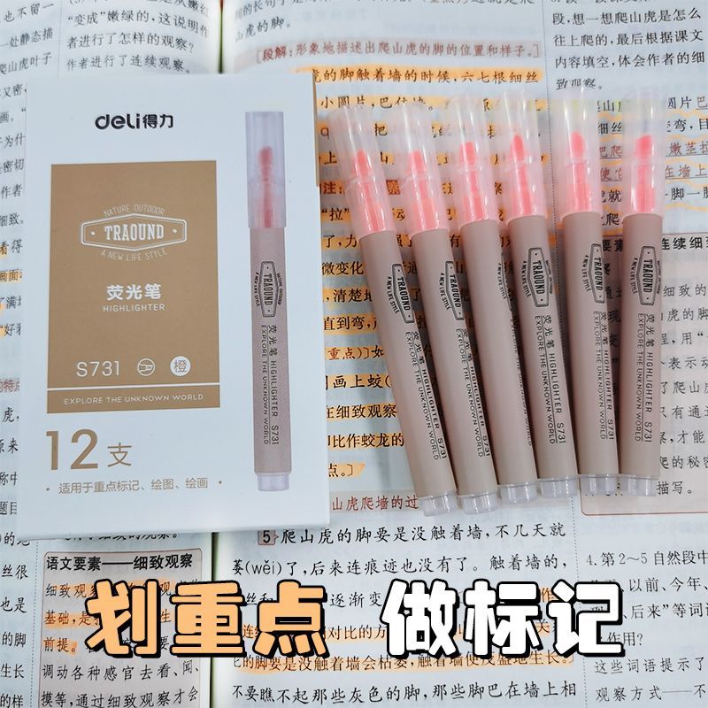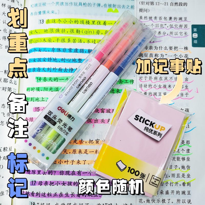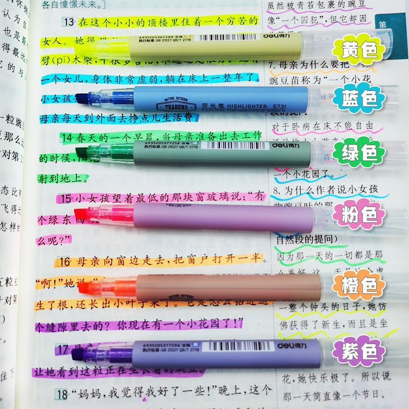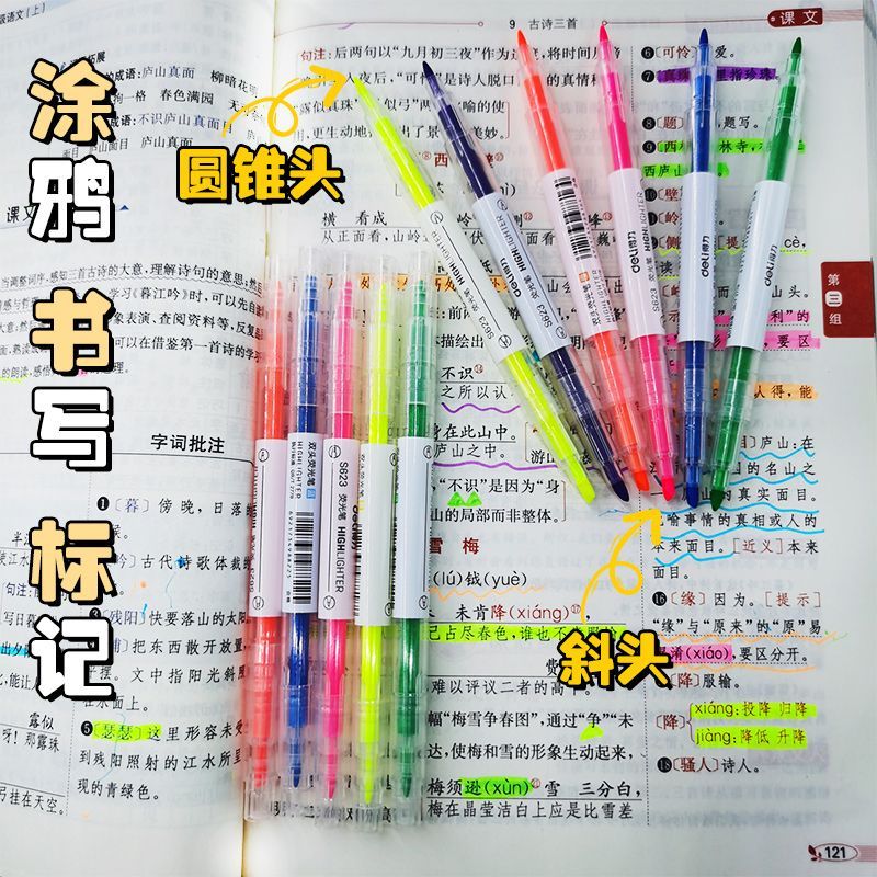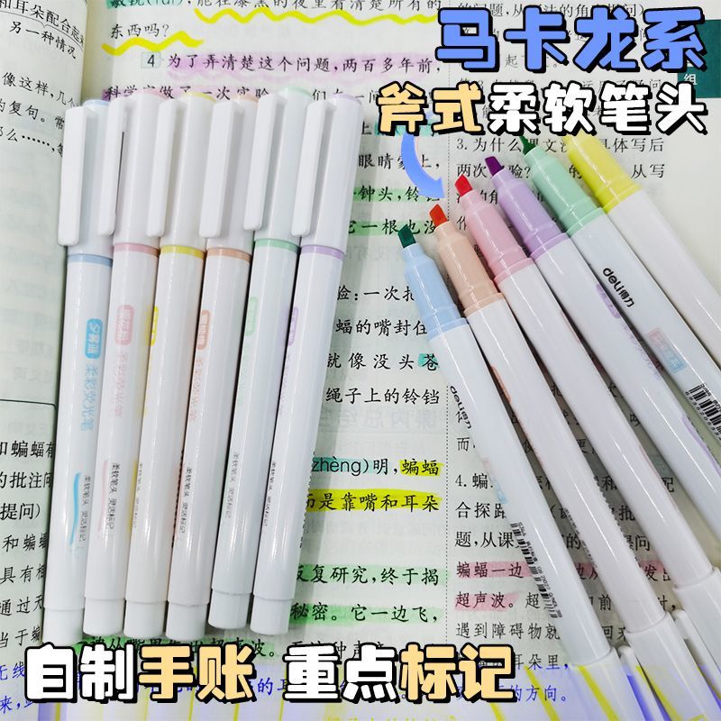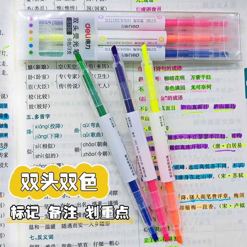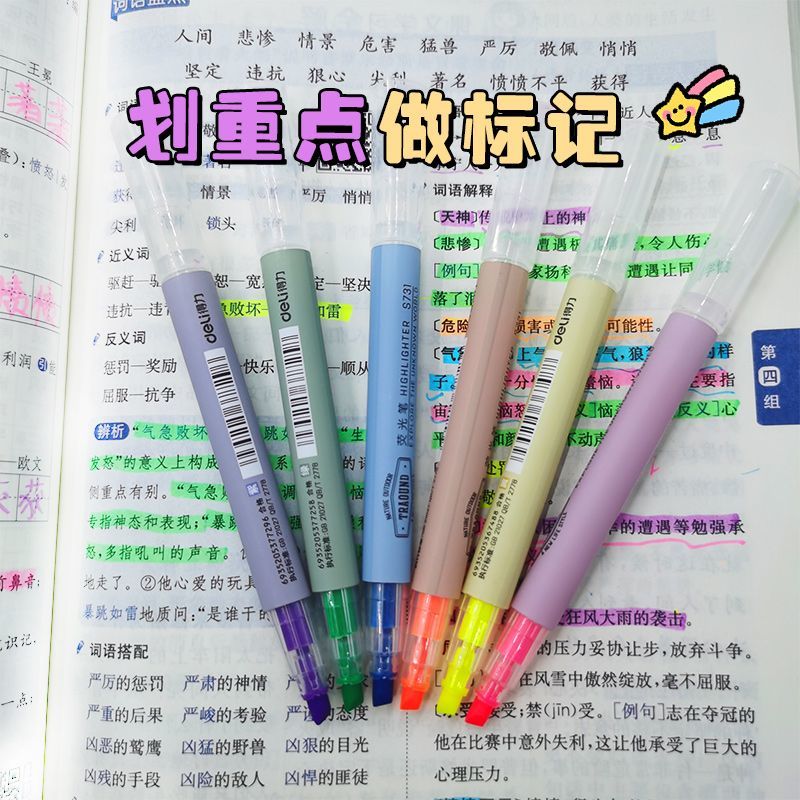 得力荧光笔ins高颜值记号粗划重点套装彩色标记笔粗头学生双头笔