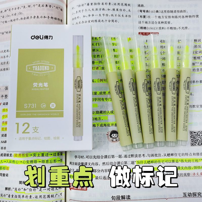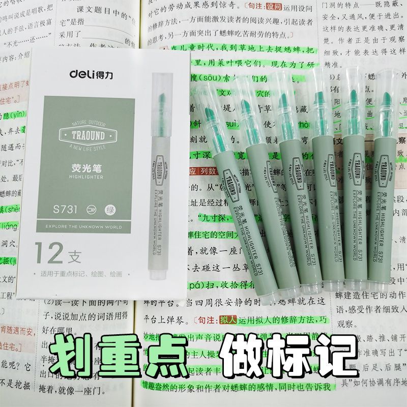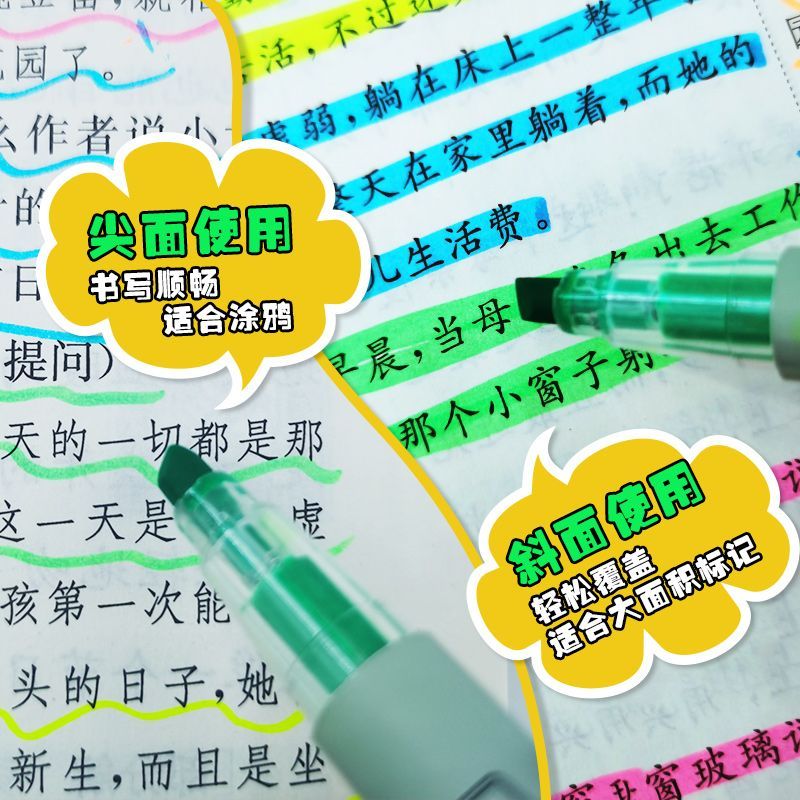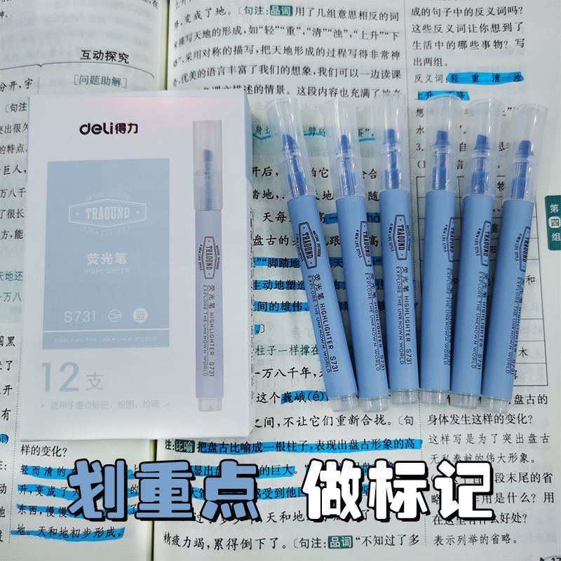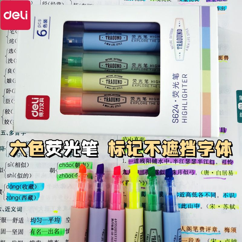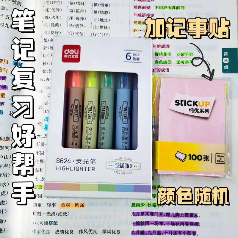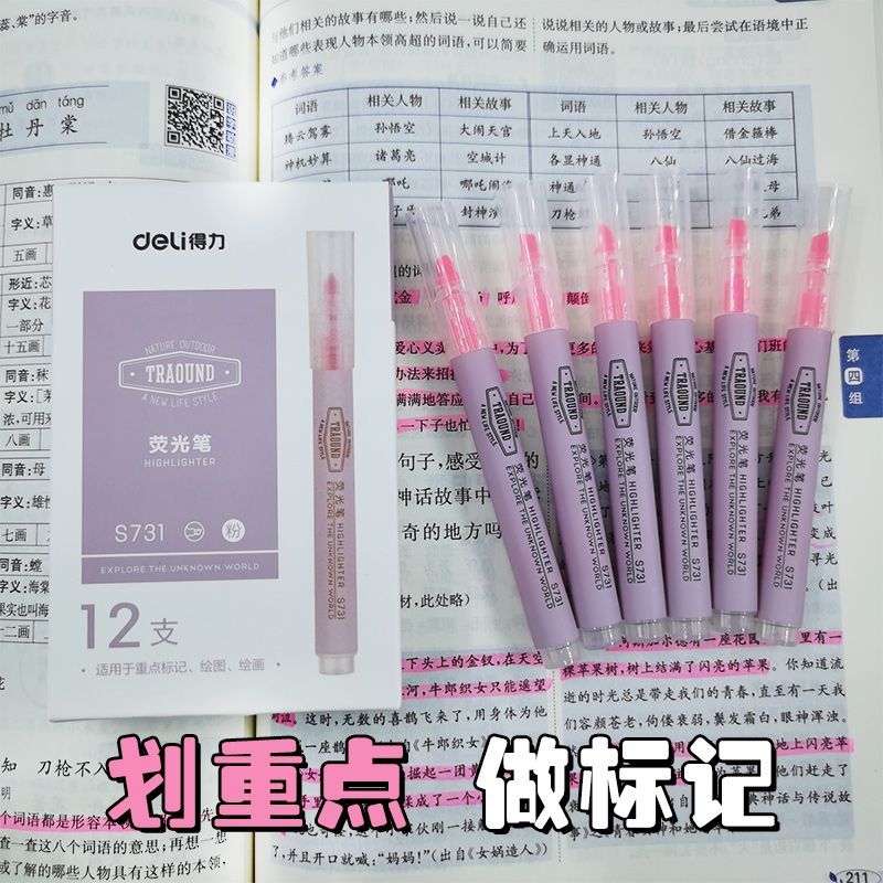 得力荧光笔ins高颜值记号粗划重点套装彩色标记笔粗头学生双头笔