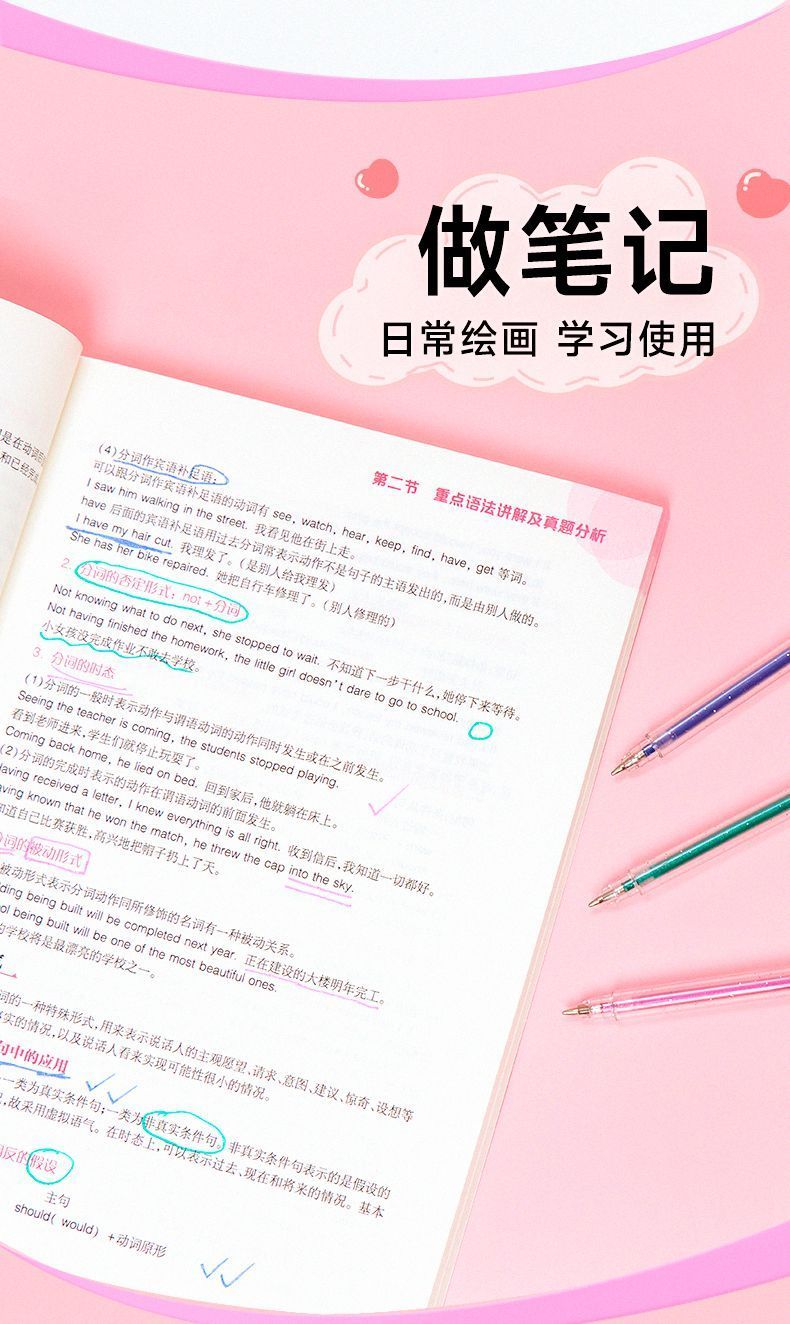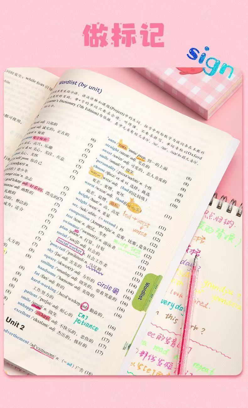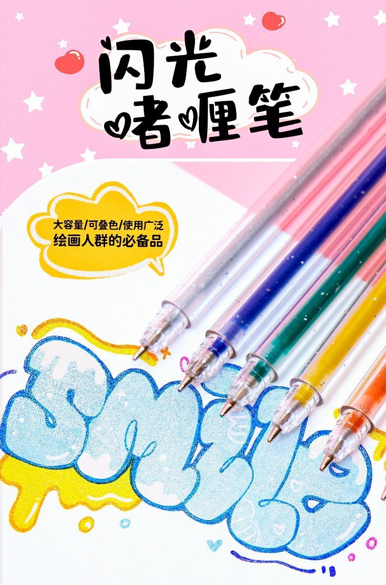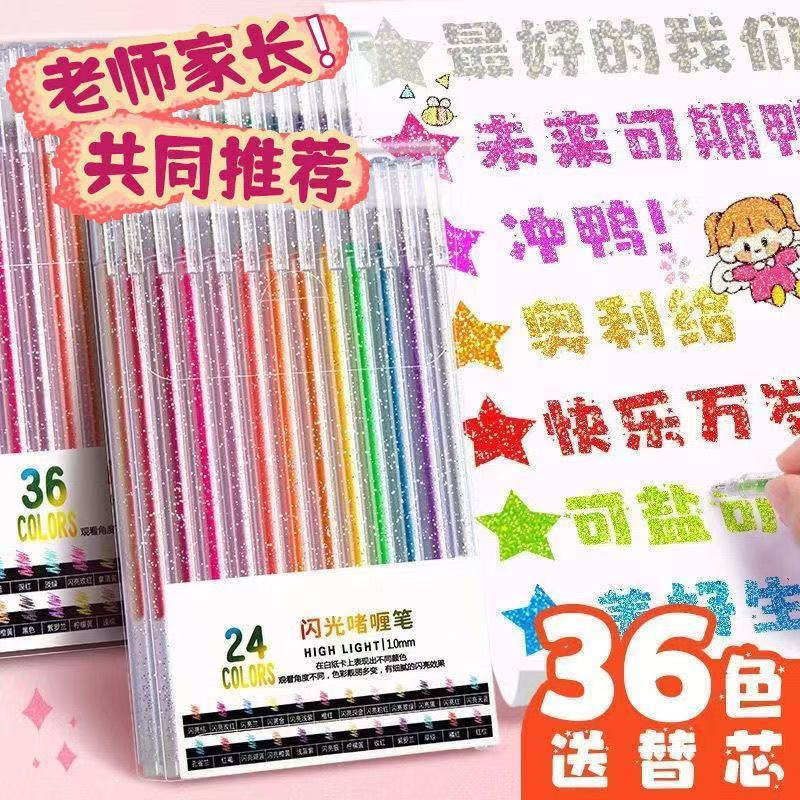 啫喱发光闪亮彩色闪光笔学生手账笔手账专用儿童荧光笔记号笔划重
