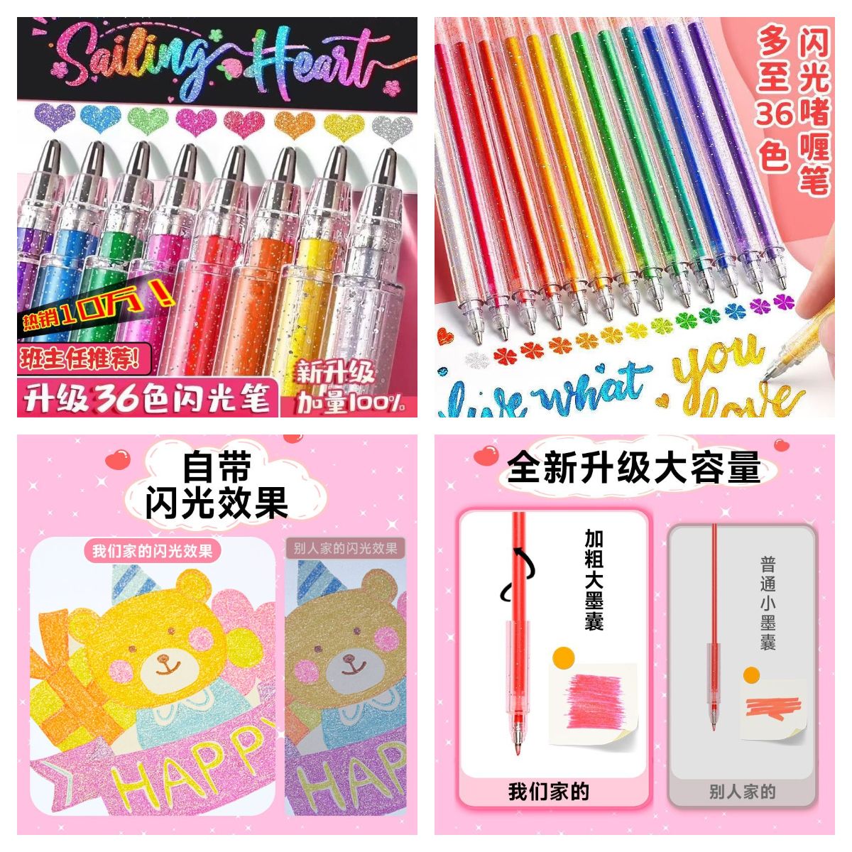 | pull cap flash gel pen core 1 color +2 pieces [3 pieces in hand]](拔帽闪光啫喱笔芯1色+2支【到手3支】) | USD $1.53 | 999999 piece available |