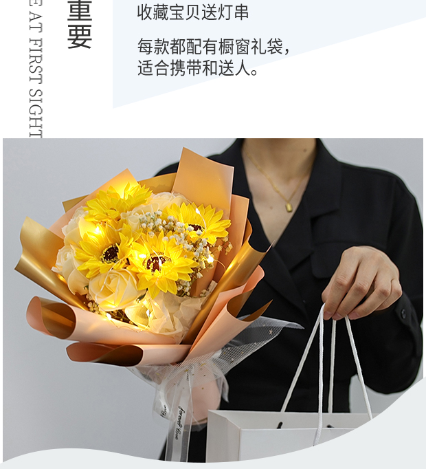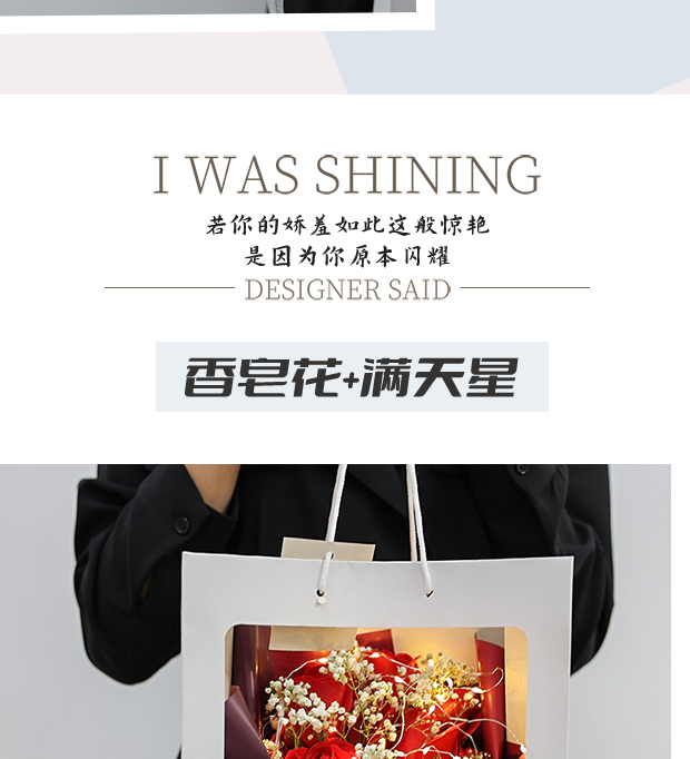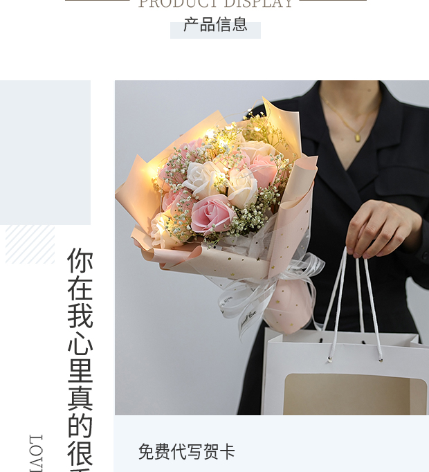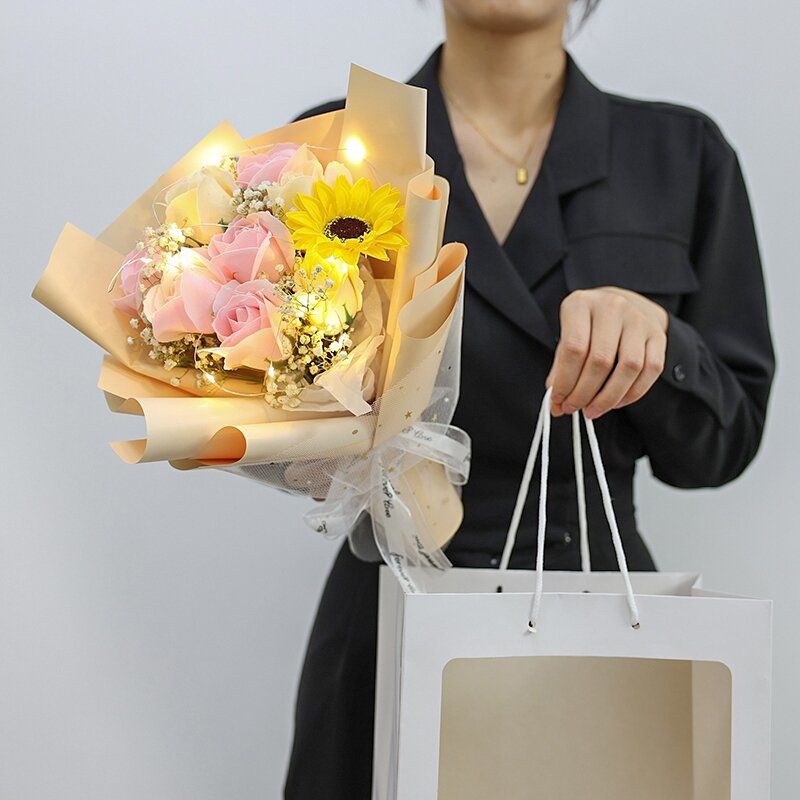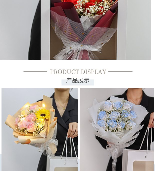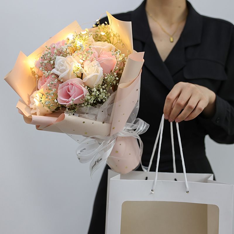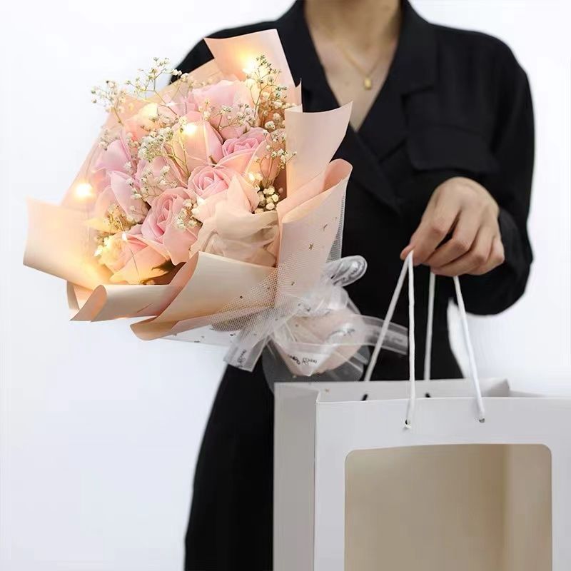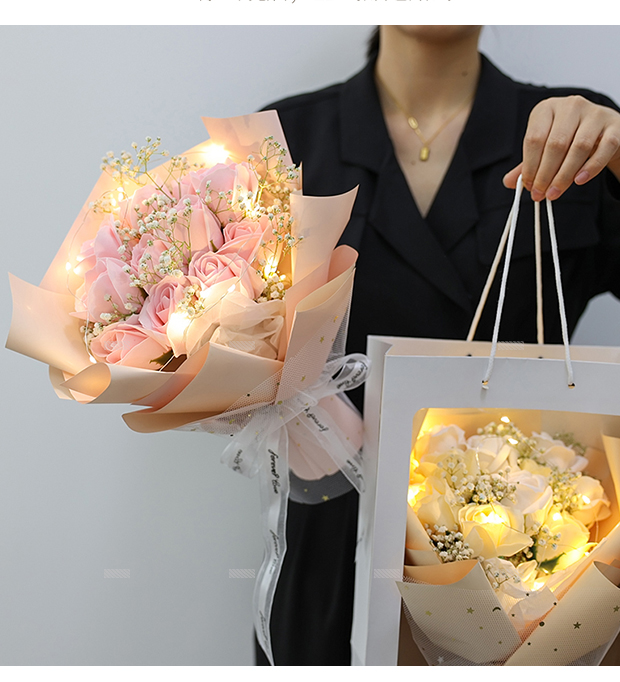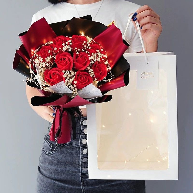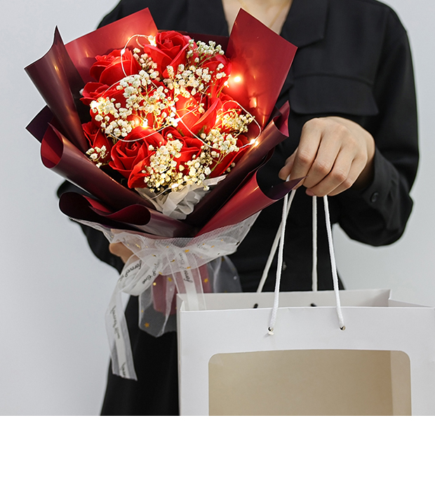 | including bouquet + window handbag + colored lights [finished product delivery]](含花束+开窗手提袋+彩灯【成品发货】) | USD $7.23 | 999999 piece available |