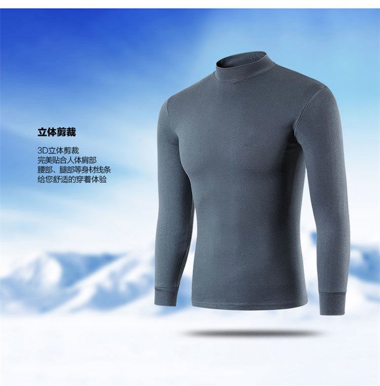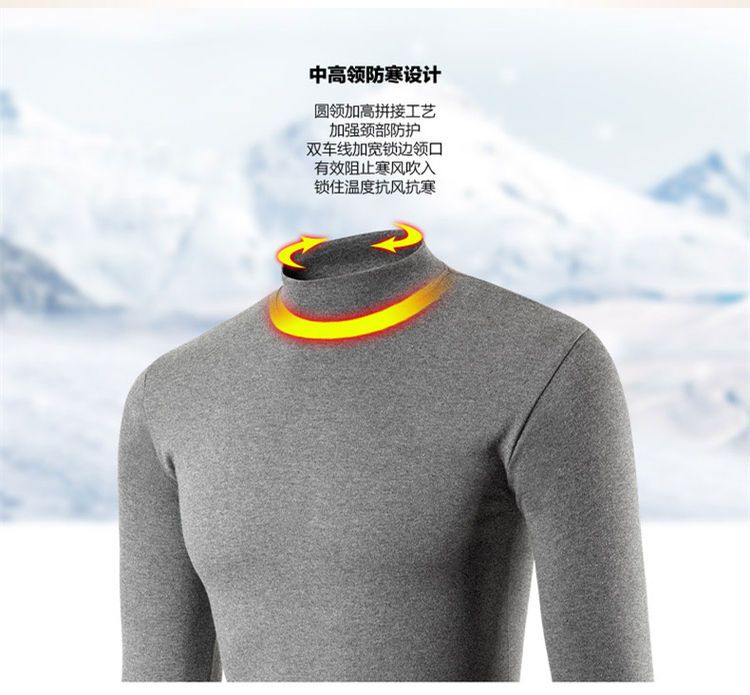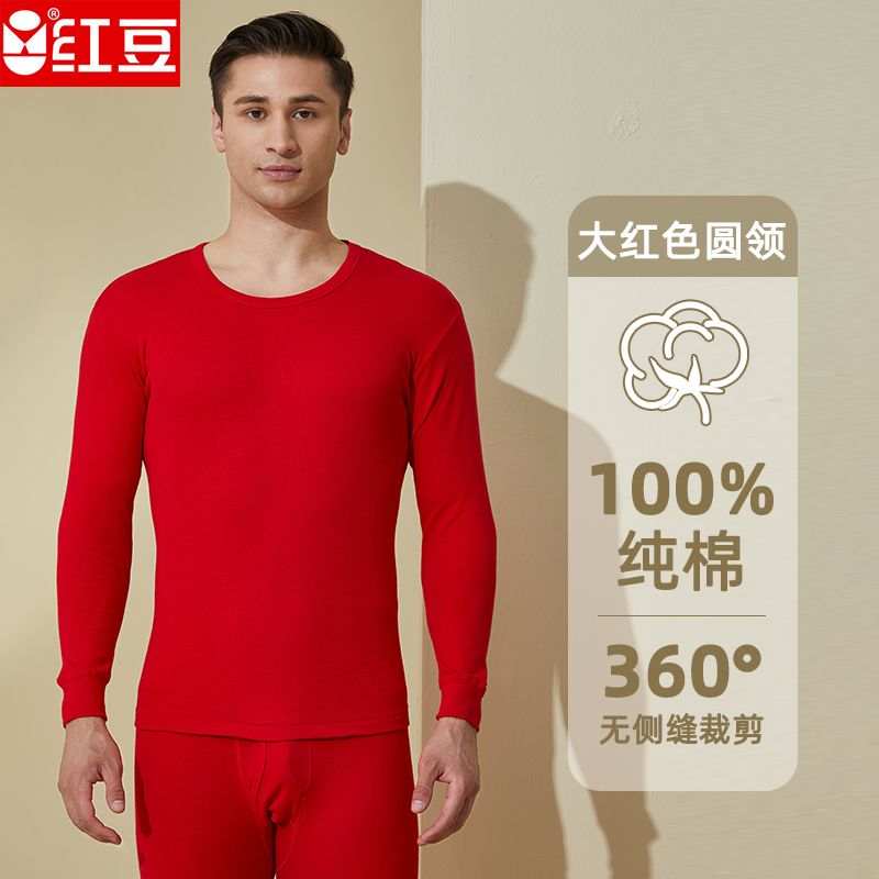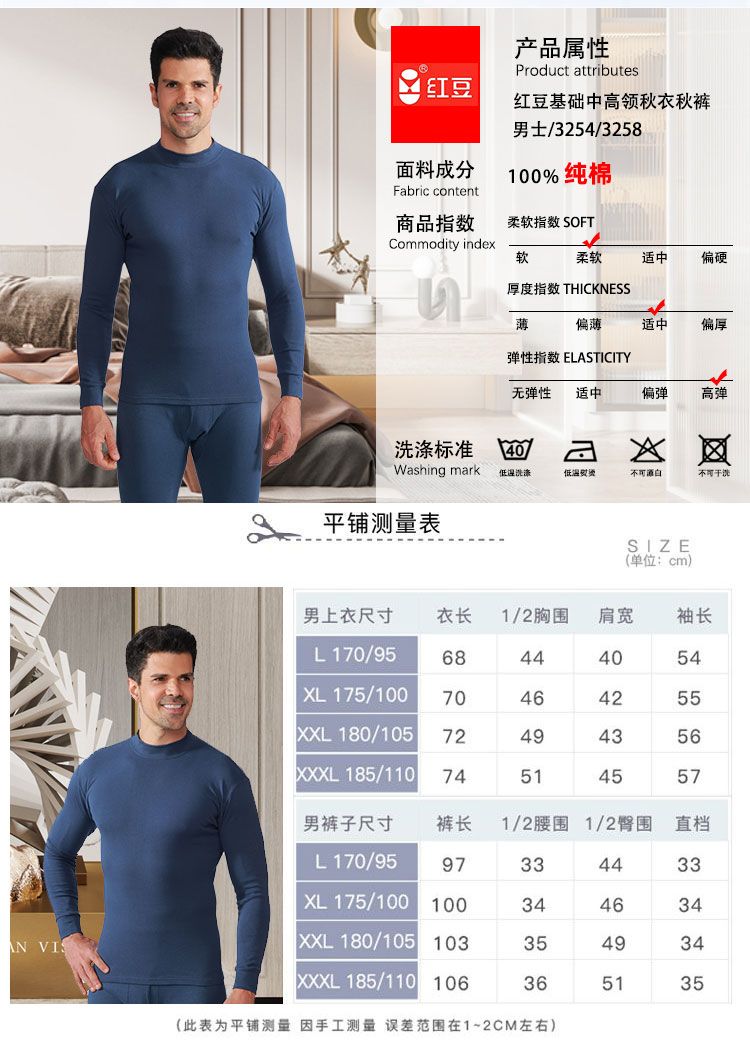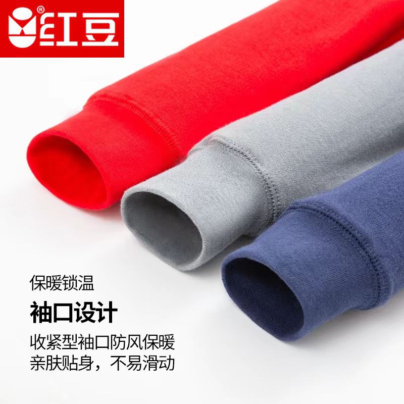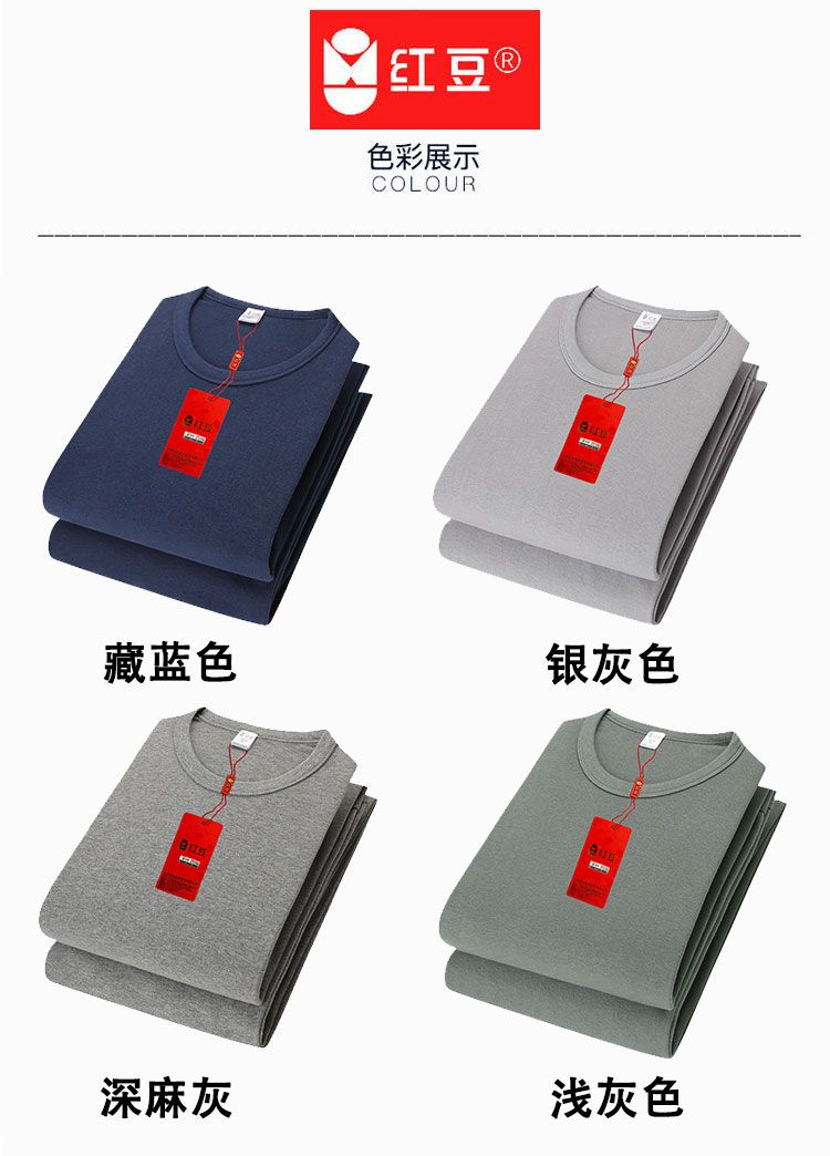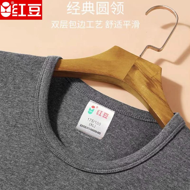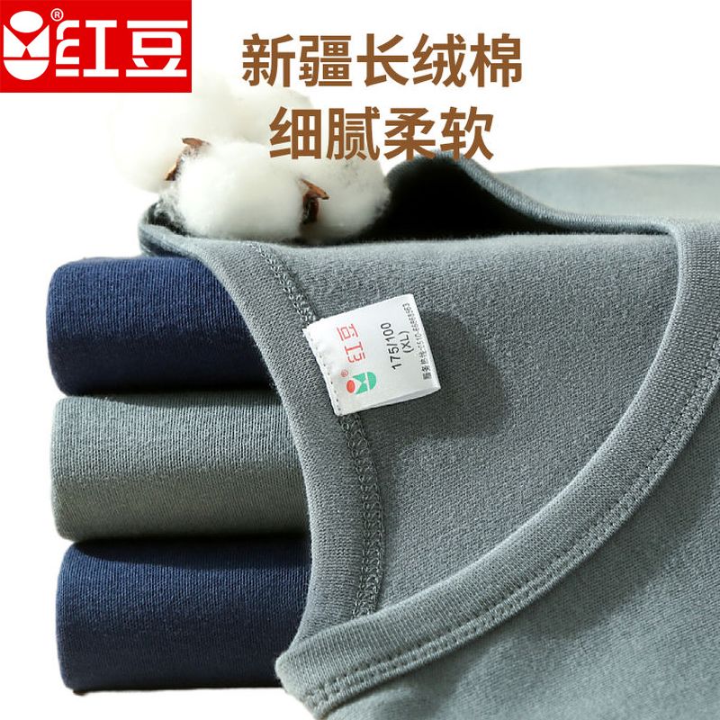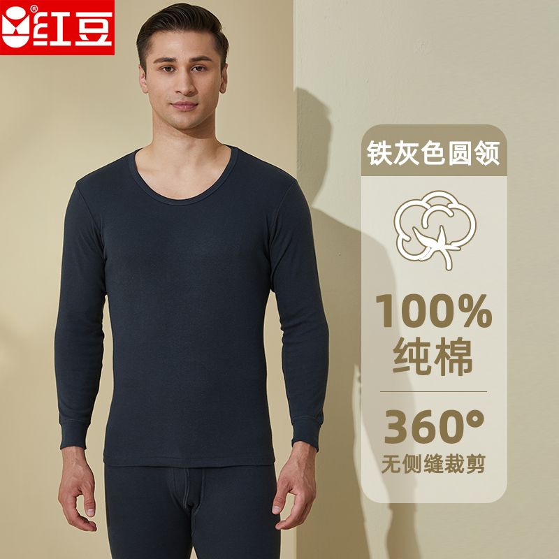 红豆【100%纯棉套装】男士秋衣秋裤圆领棉毛衫半高领秋冬保暖套装