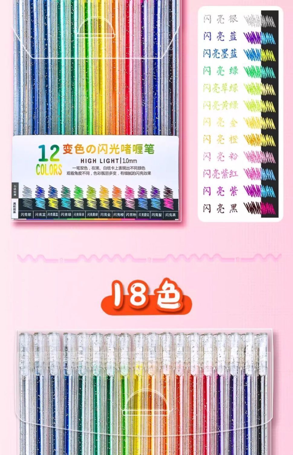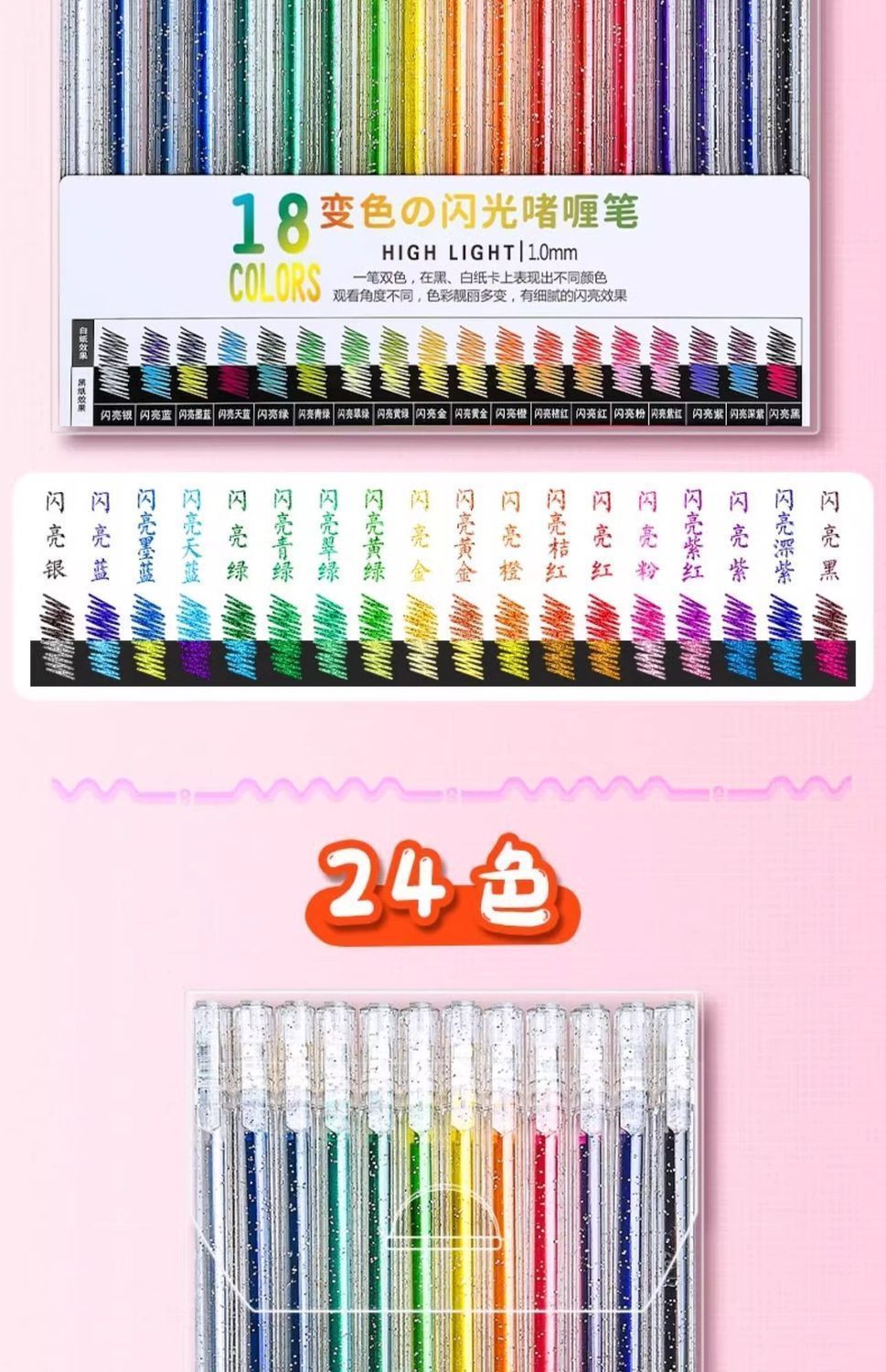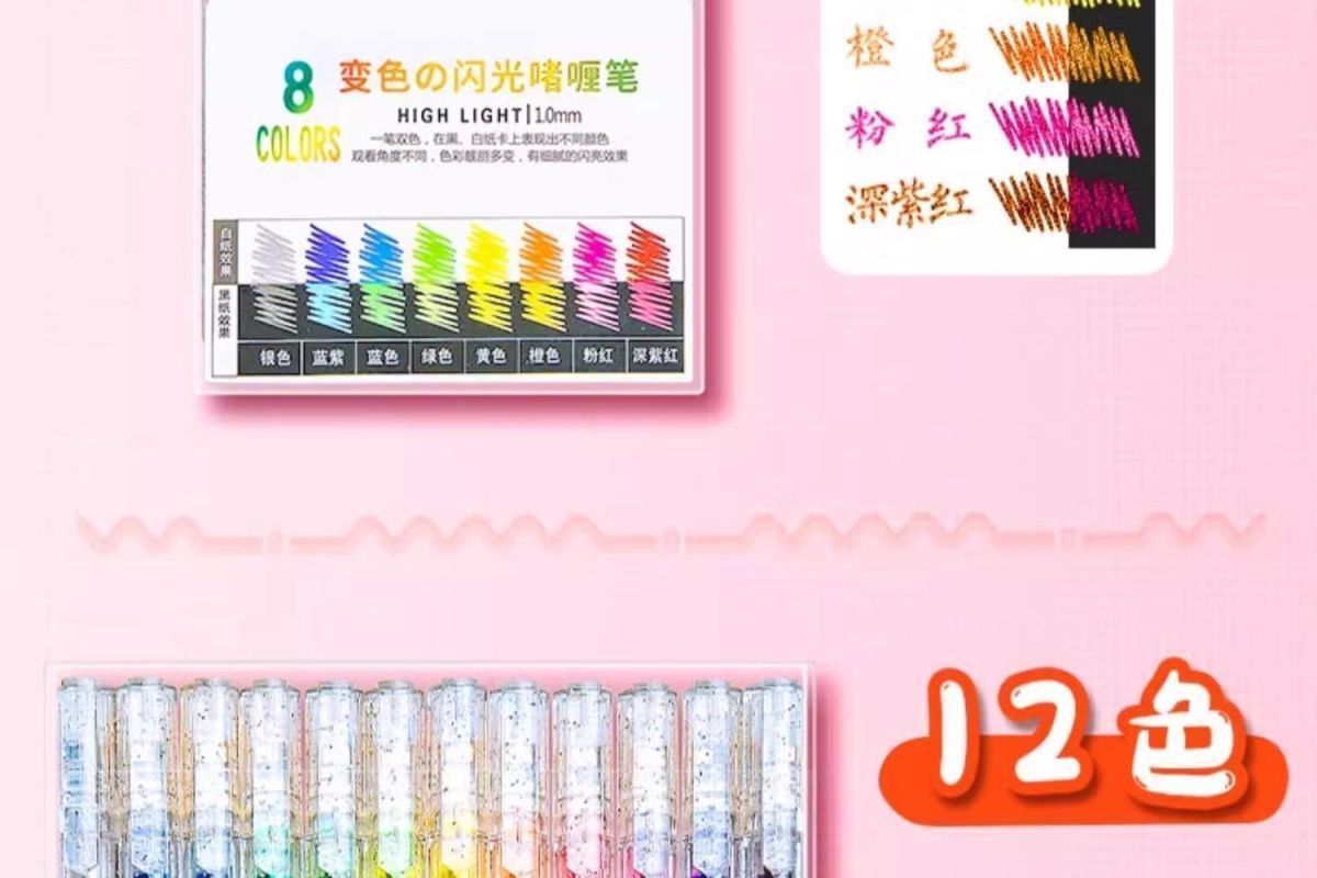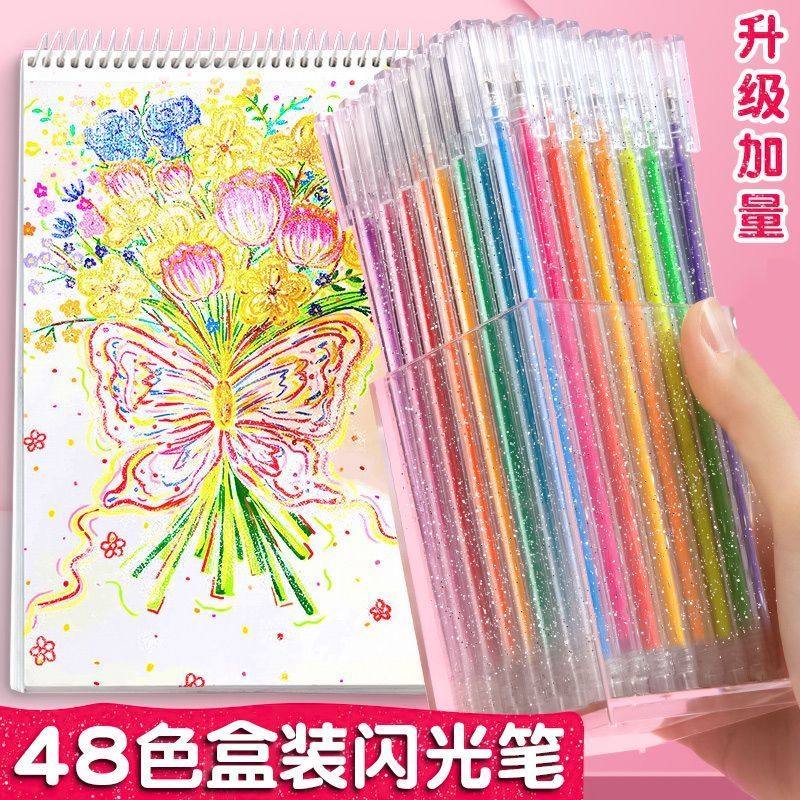 彩光笔闪光啫喱笔彩色儿童手帐专用珠光水彩笔荧光标记笔学生用闪