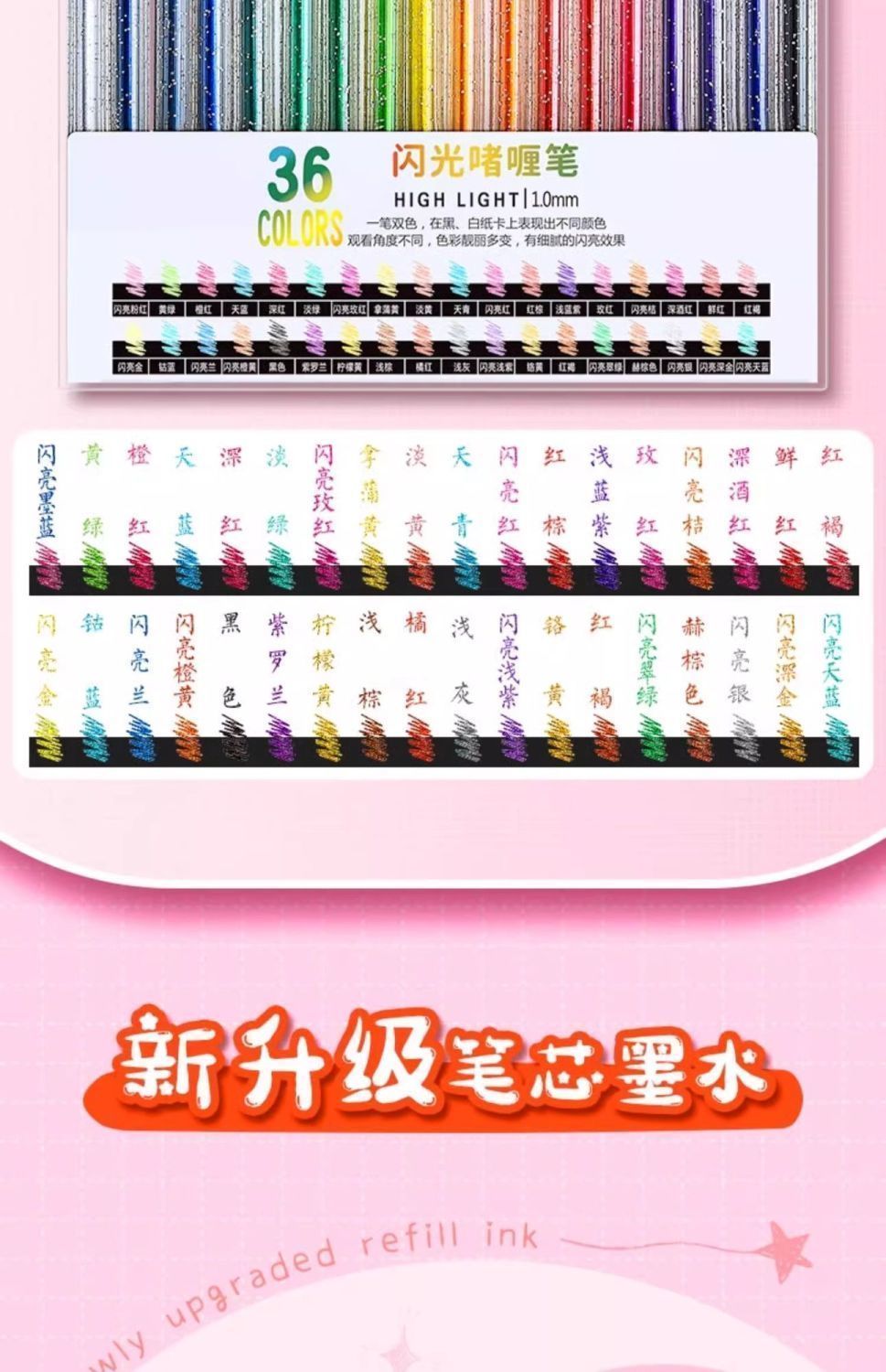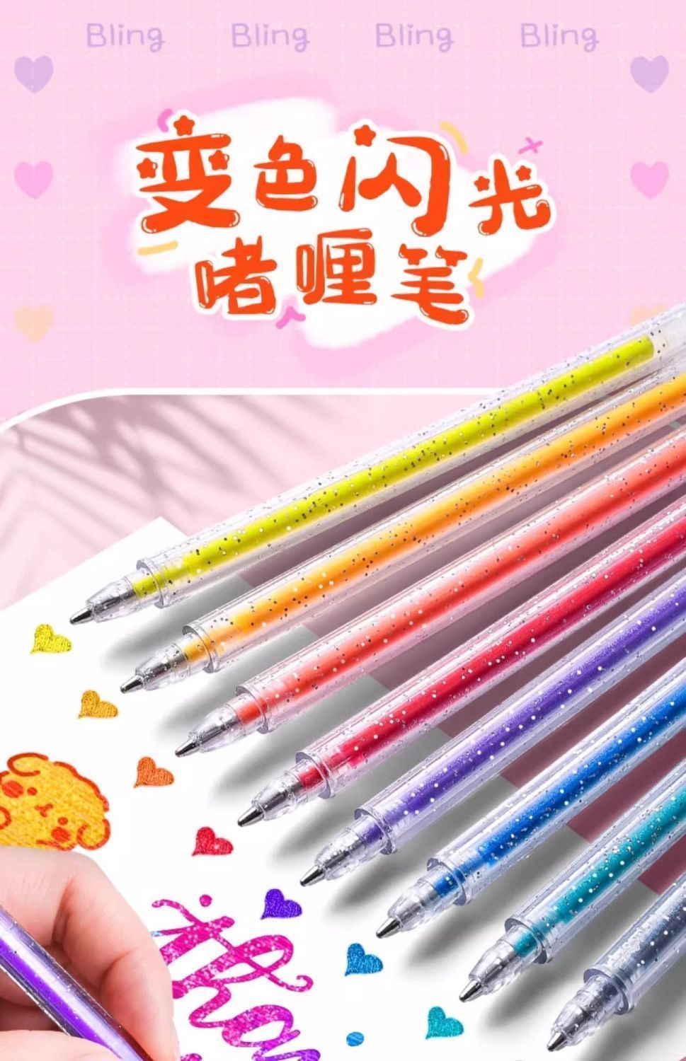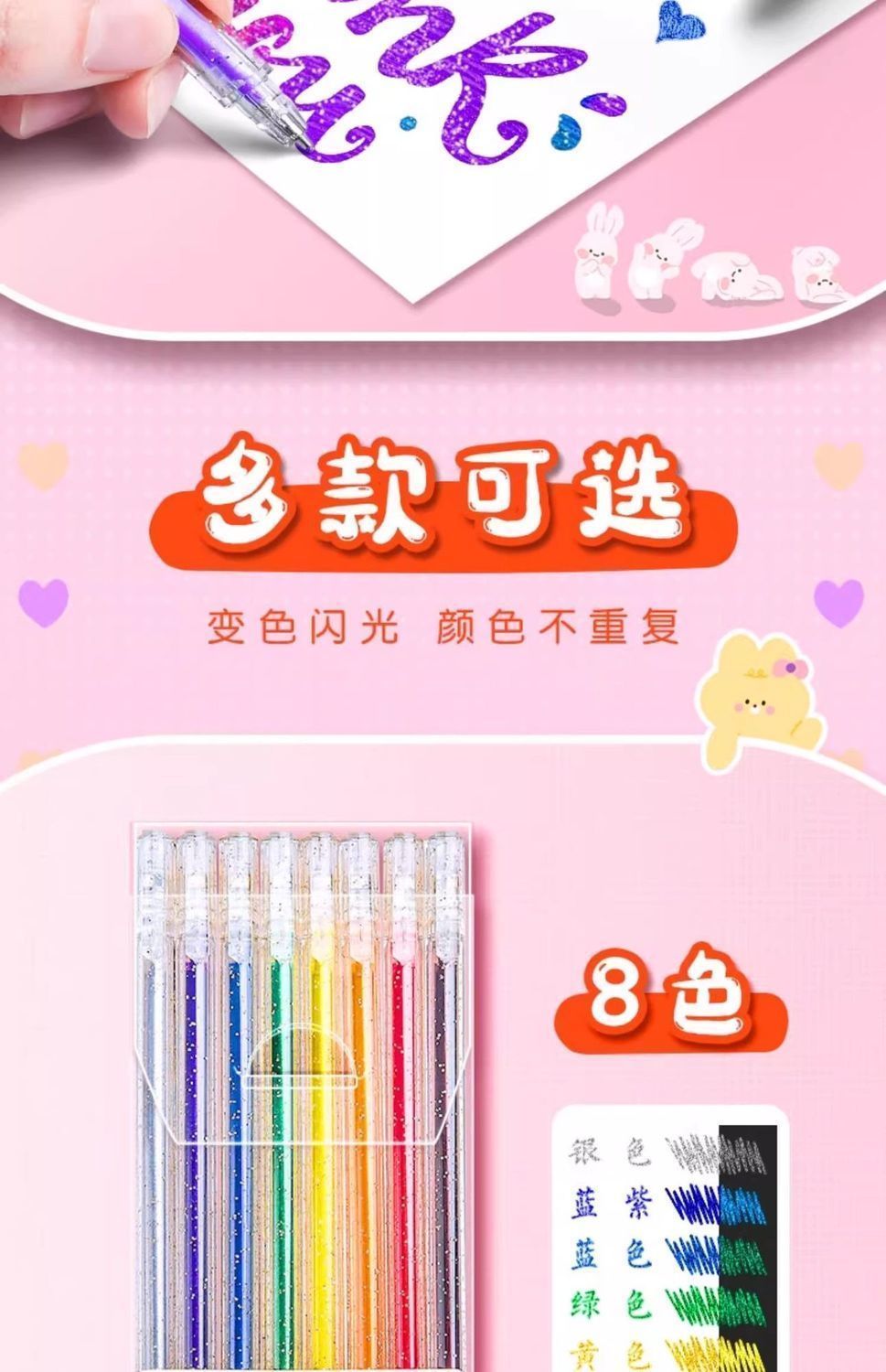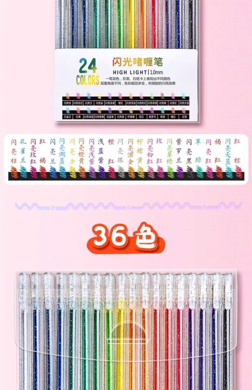 彩光笔闪光啫喱笔彩色儿童手帐专用珠光水彩笔荧光标记笔学生用闪