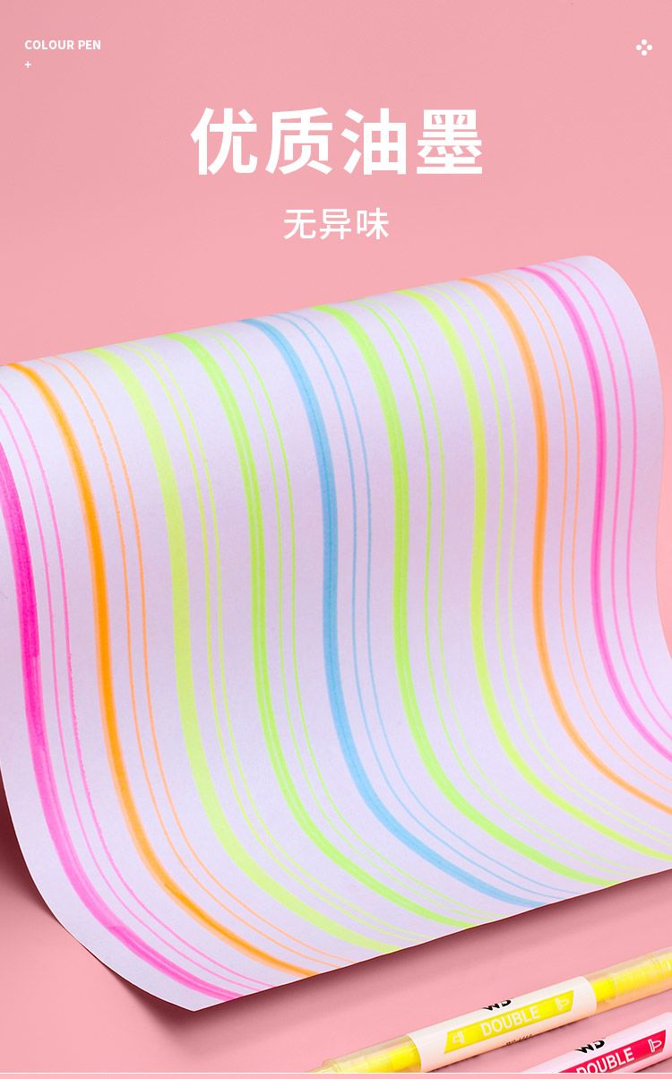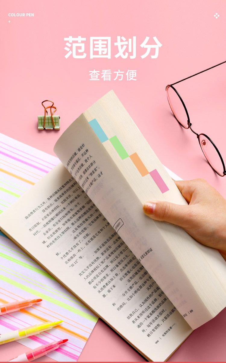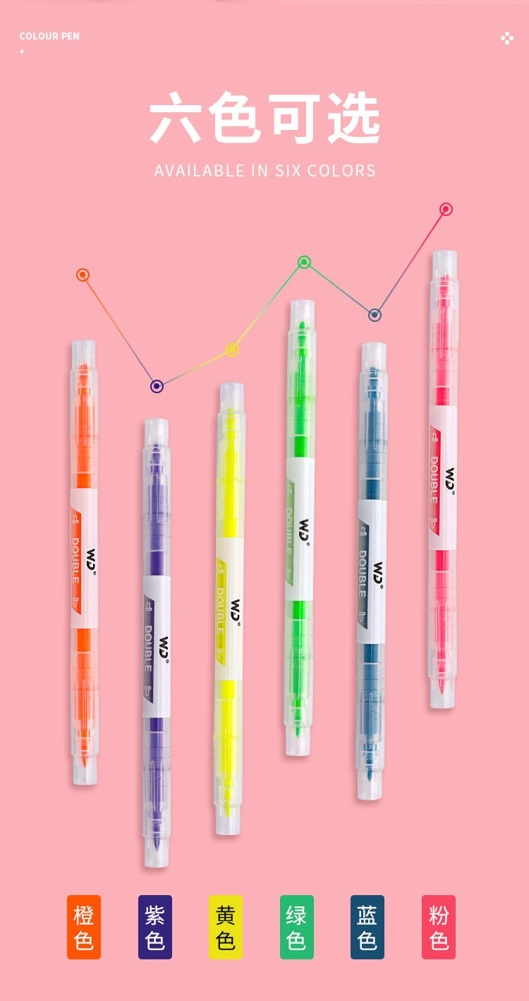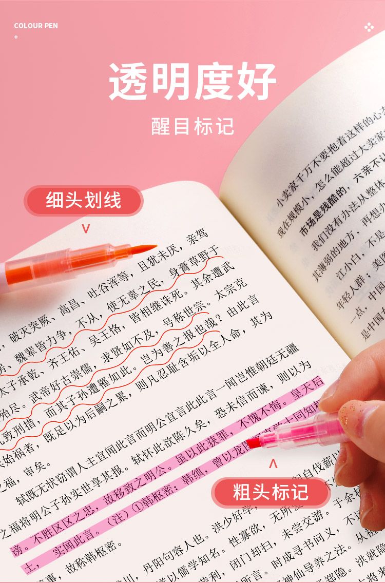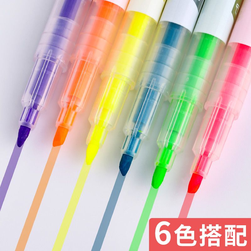 6色荧光笔套装 双头荧光笔课本标记学生笔记重点圈画划线笔标记笔