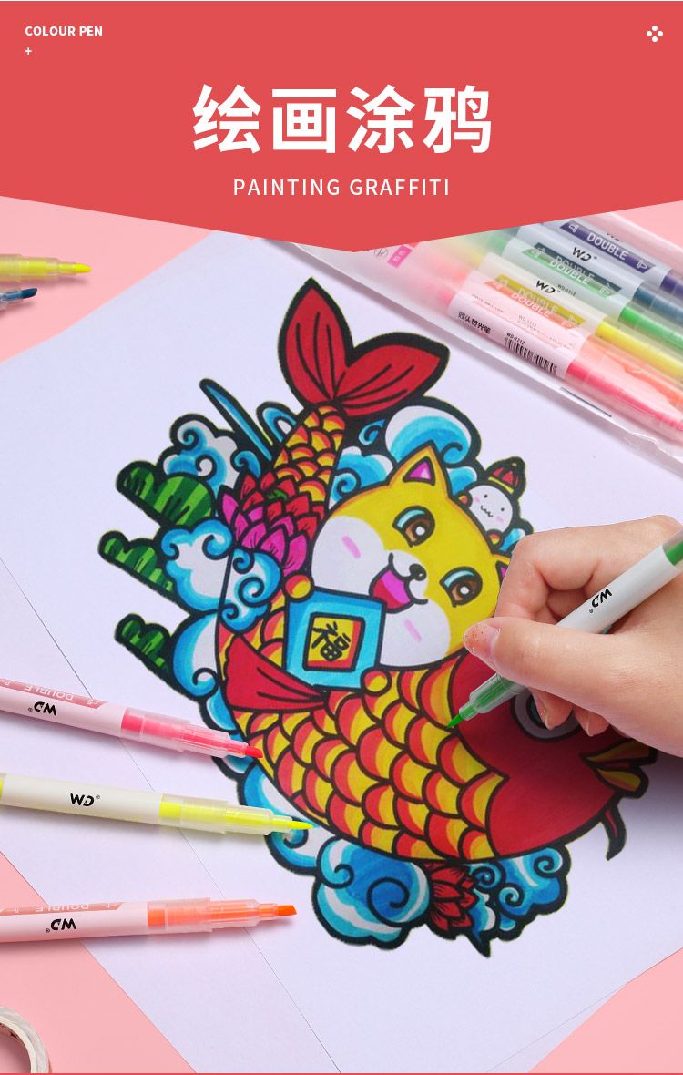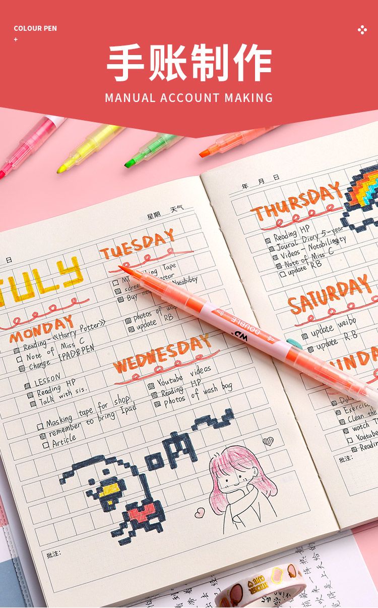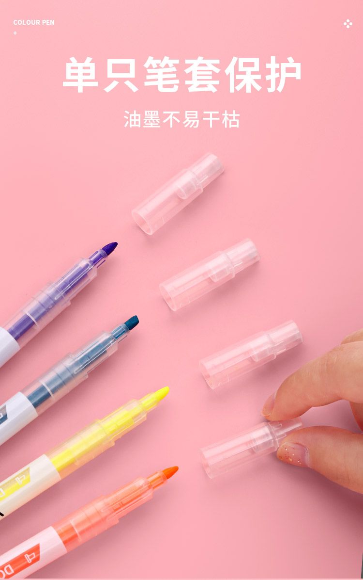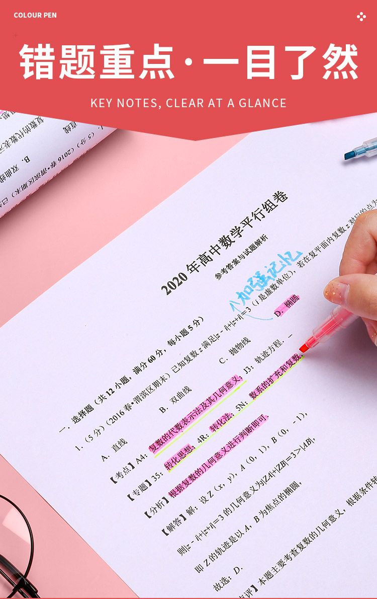 6色荧光笔套装 双头荧光笔课本标记学生笔记重点圈画划线笔标记笔