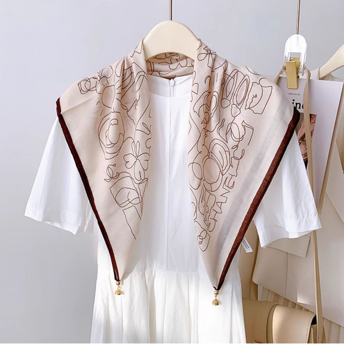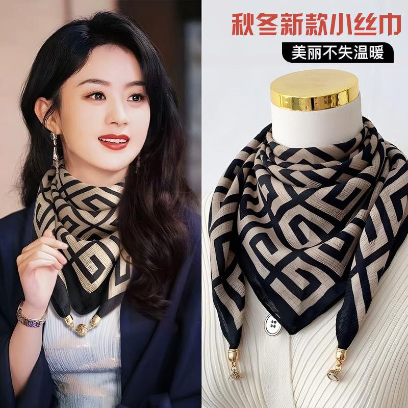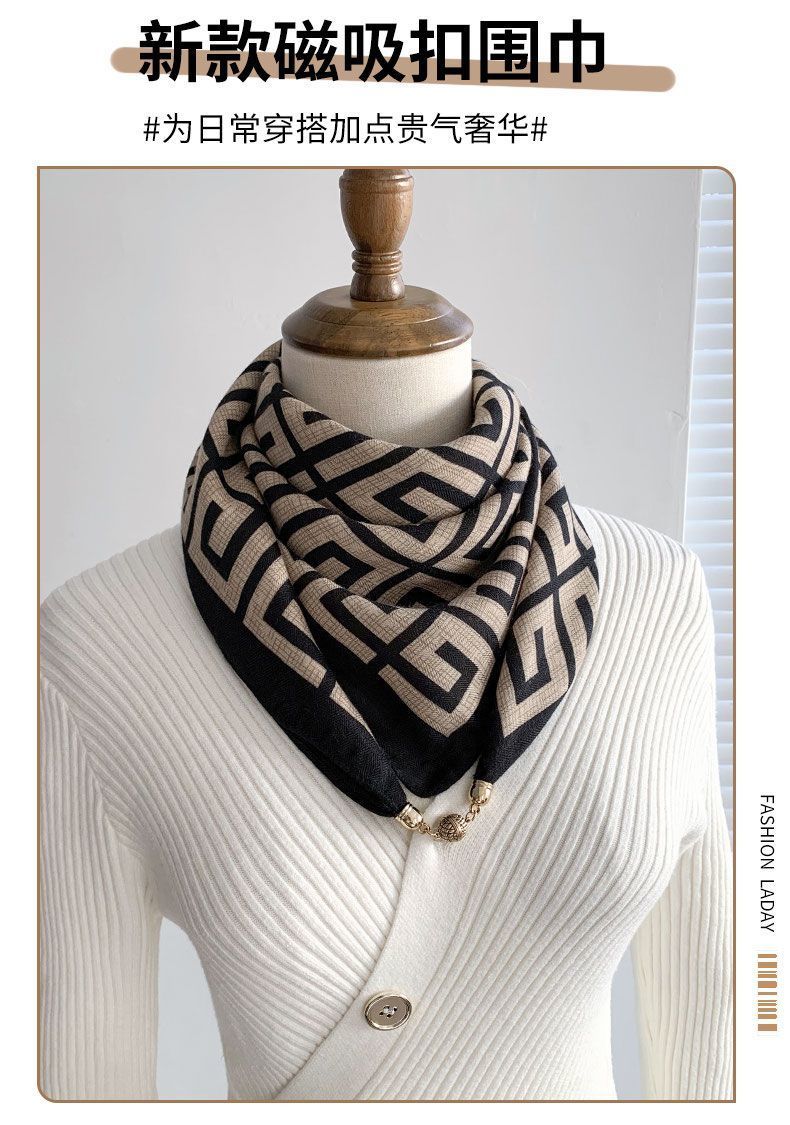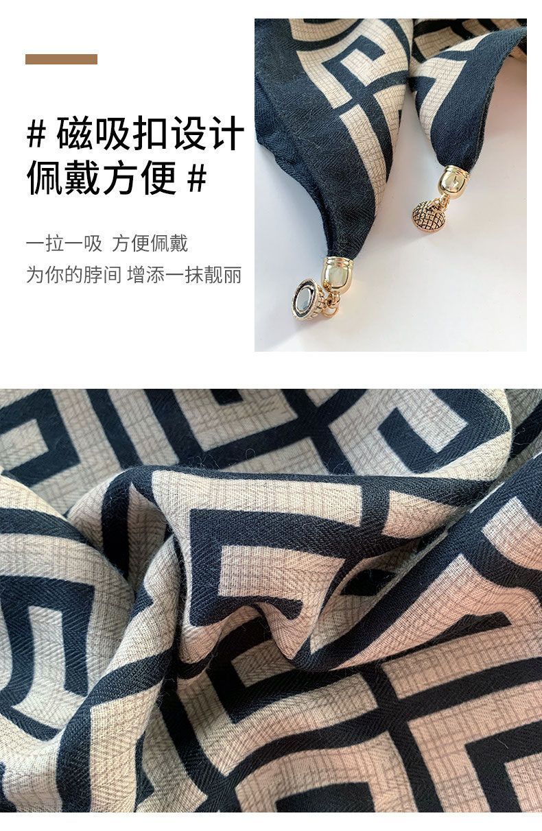 磁吸三角护颈小围巾女秋冬季2024新款棉麻丝巾高级感脖子方巾围脖
