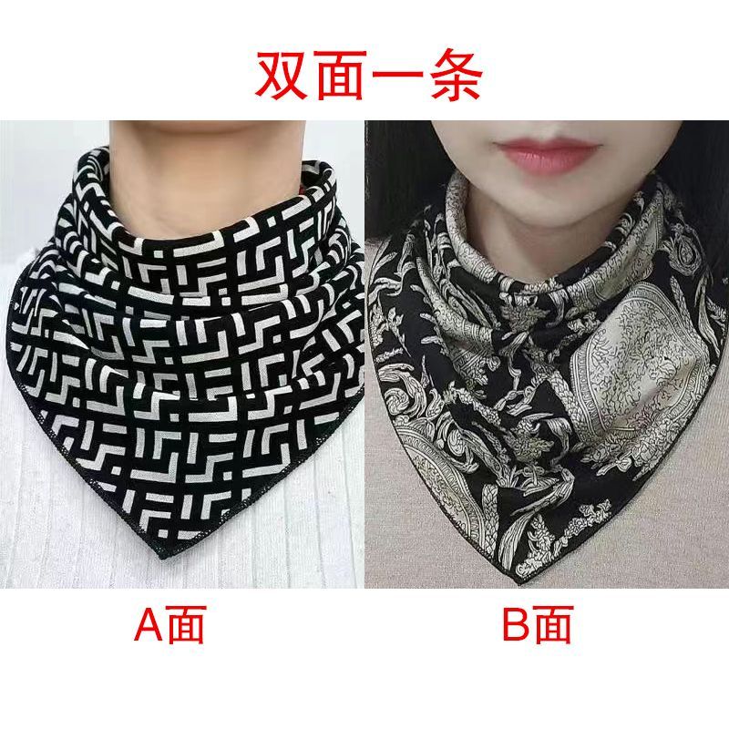 三角巾护颈双层两面带按扣秋冬女士款假领子保暖新款时尚菲灵同款