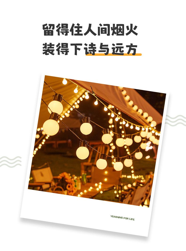 户外露营氛围灯泡圆球灯串婚庆led彩灯带天幕帐篷装饰灯庭院挂灯