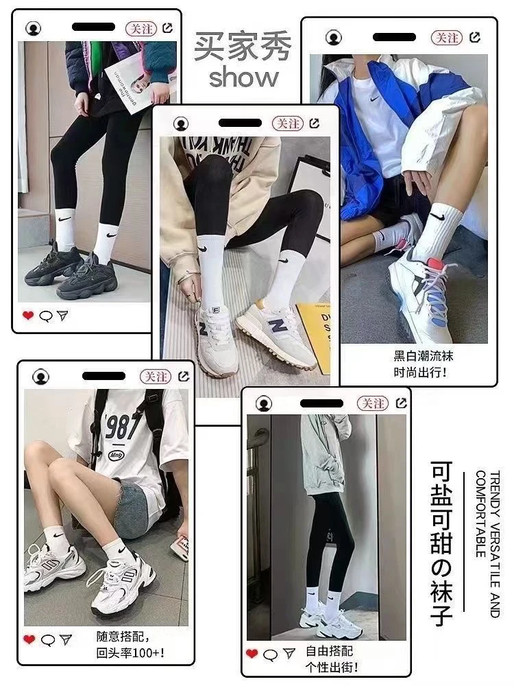 男女袜子运动ins秋冬季中长筒学生薄款百搭防臭半袖纯棉T恤上衣N
