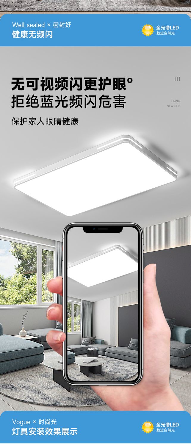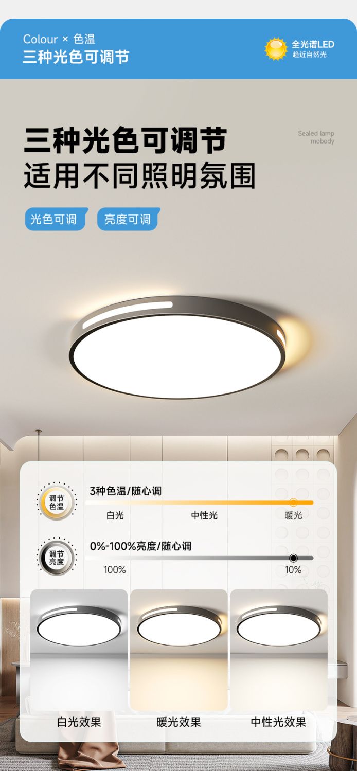 led吸顶灯长方形客厅灯简约现代超薄圆形房间书房卧室套餐灯具