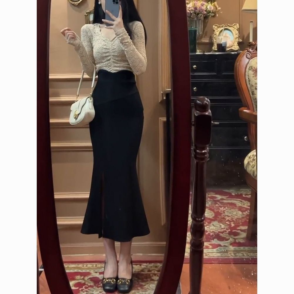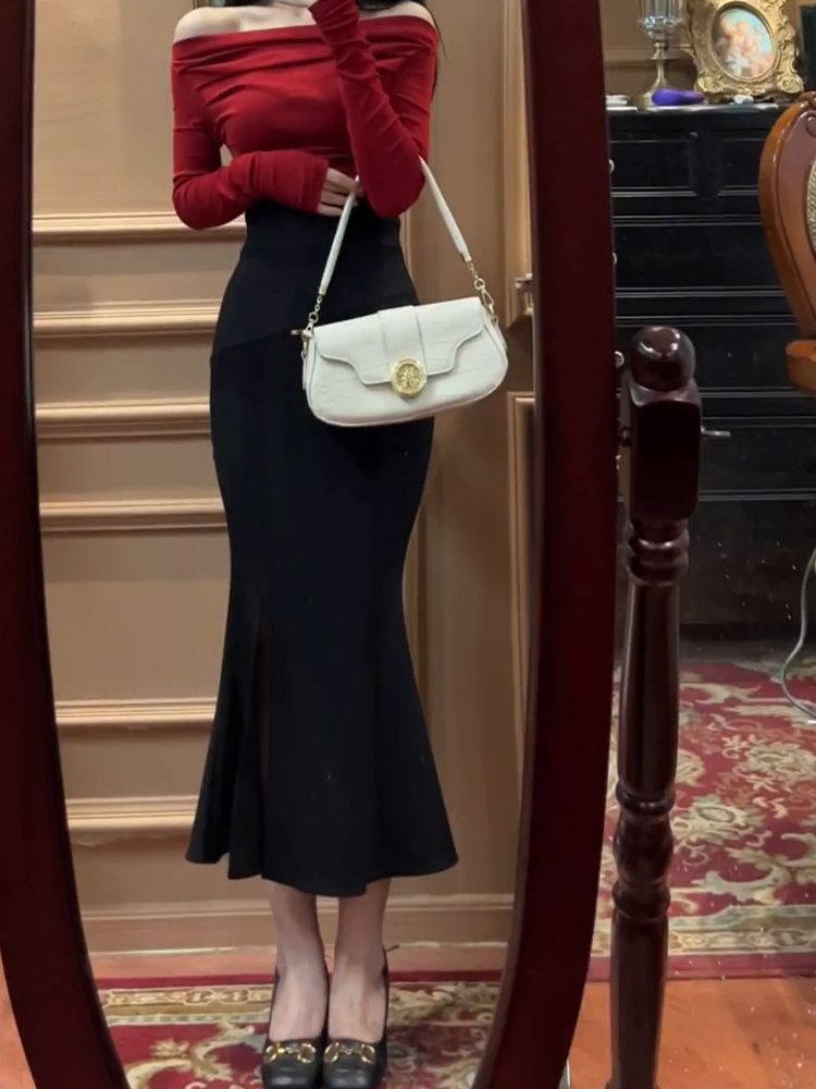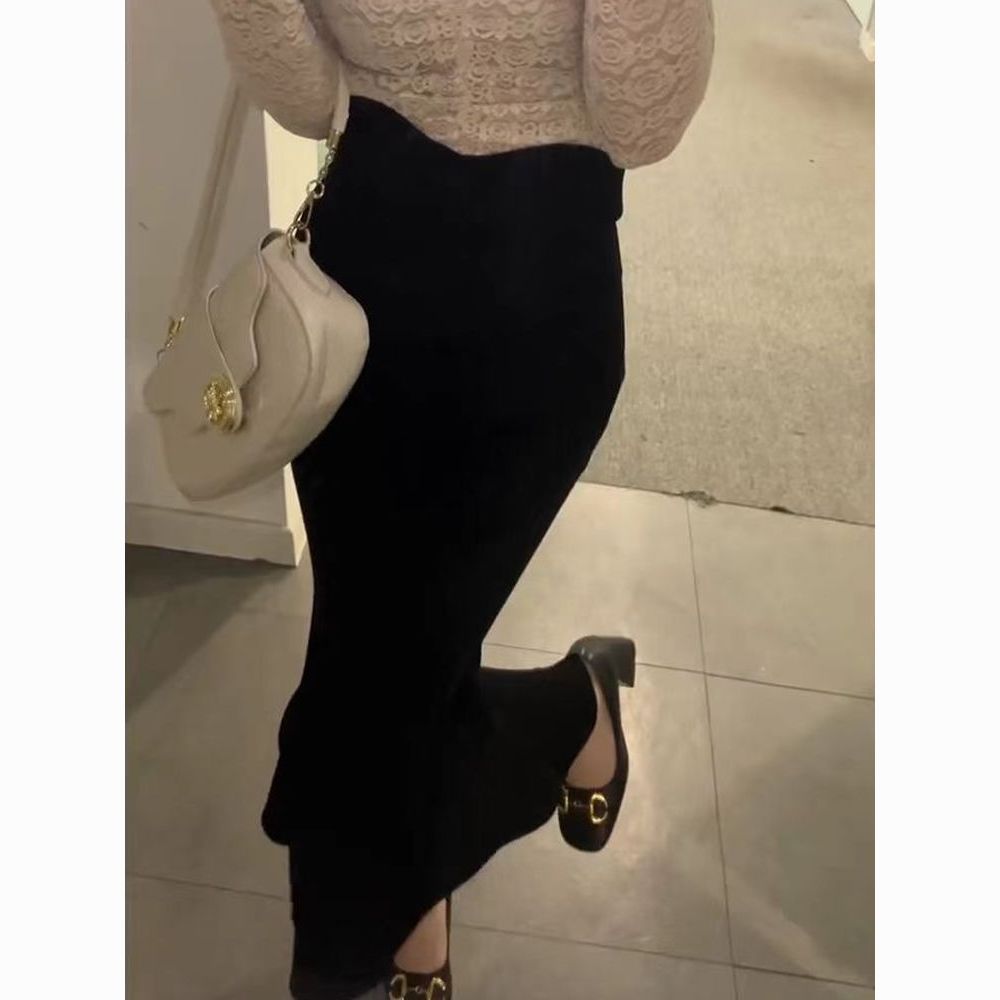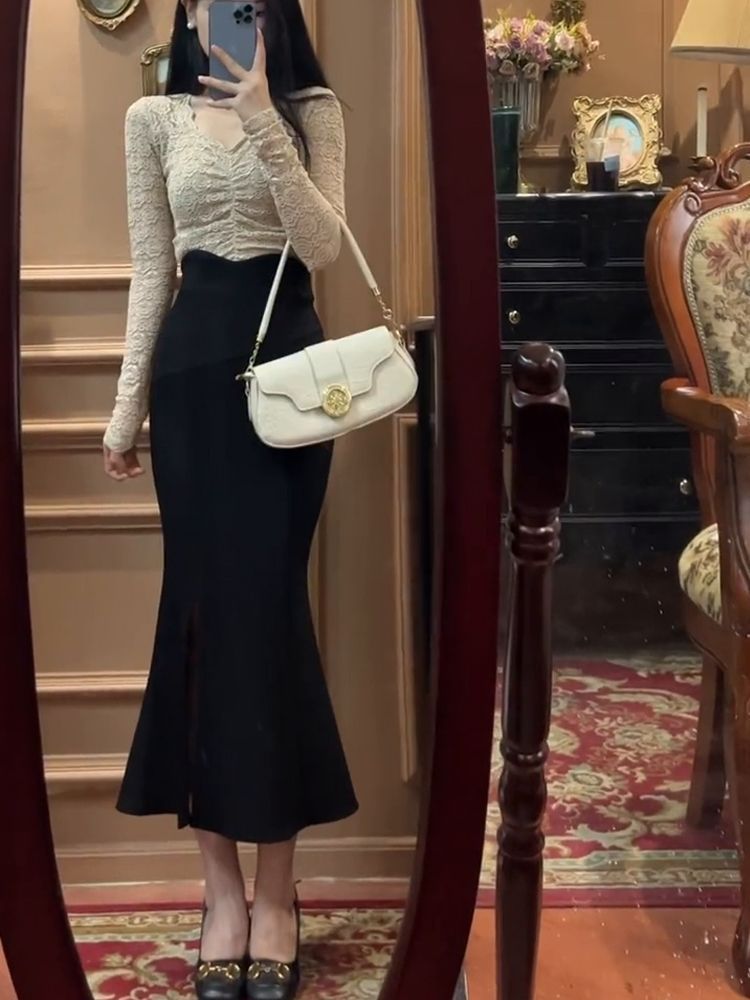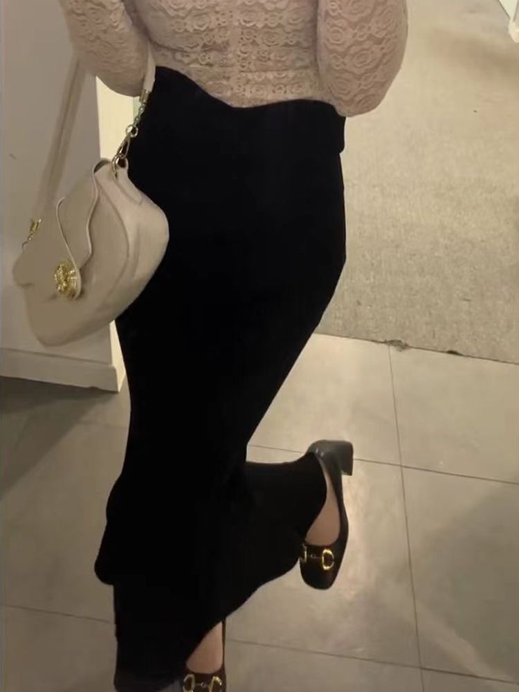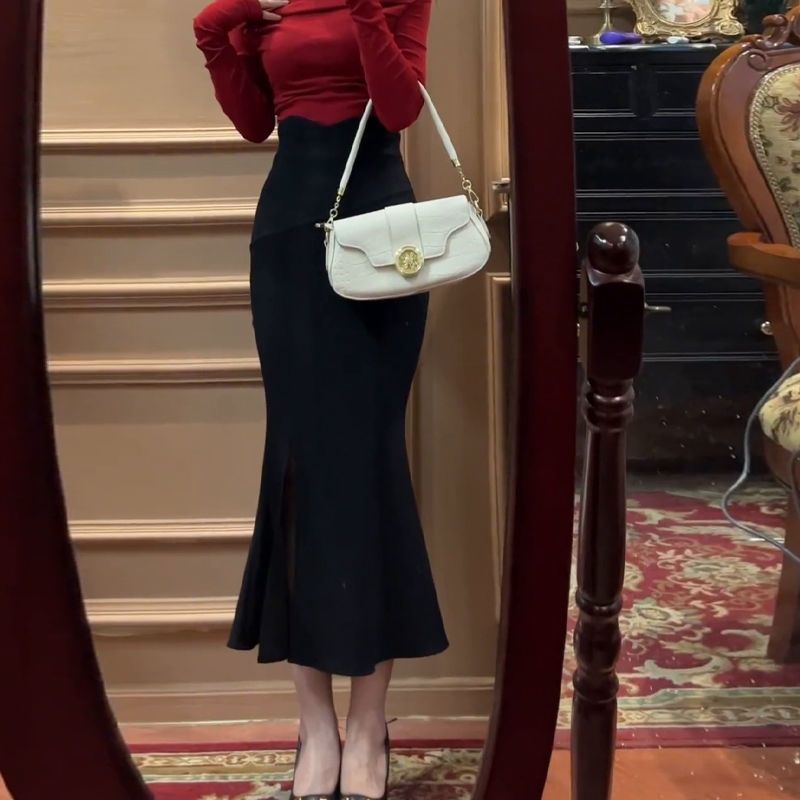 victory&vera鱼尾裙高腰小个子黑色包臀半身裙气质高级感紧身