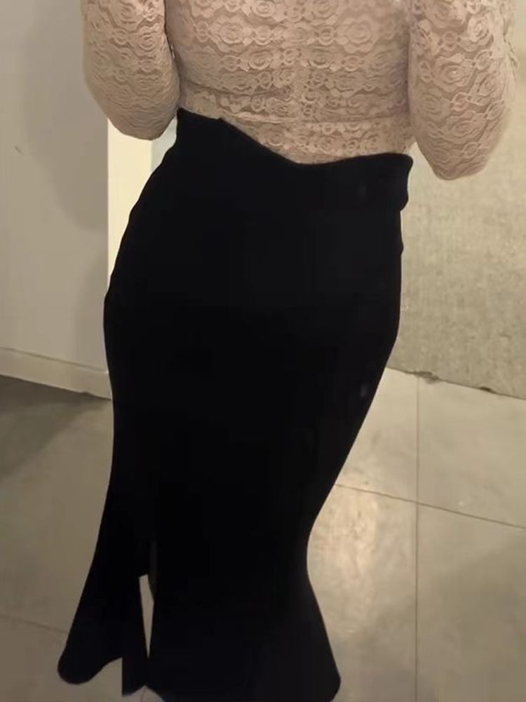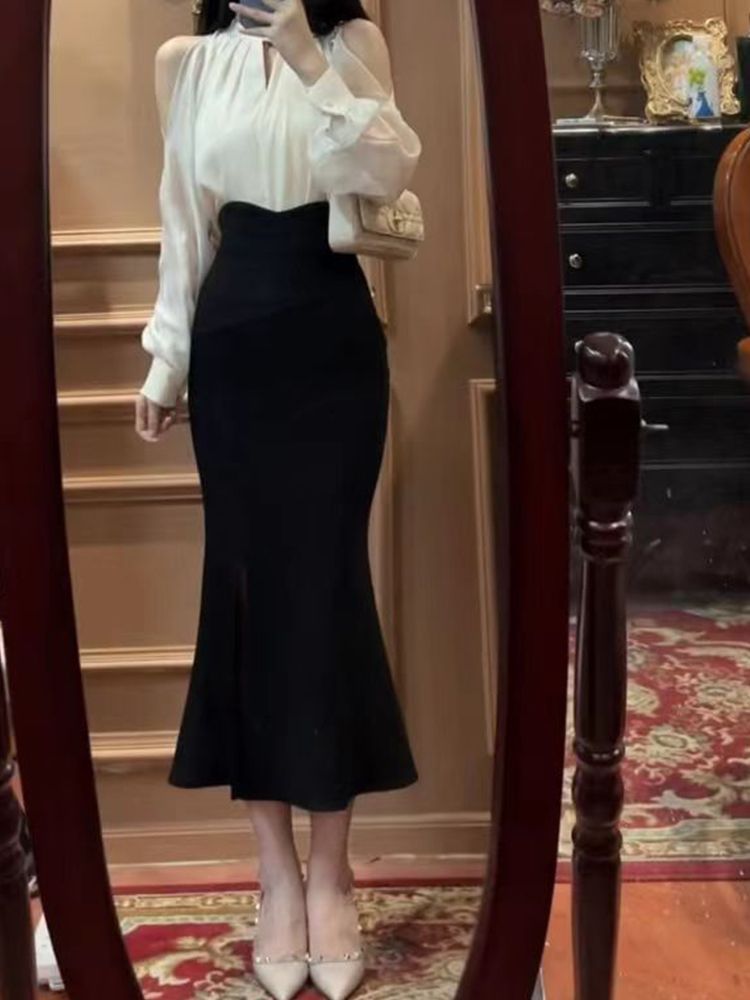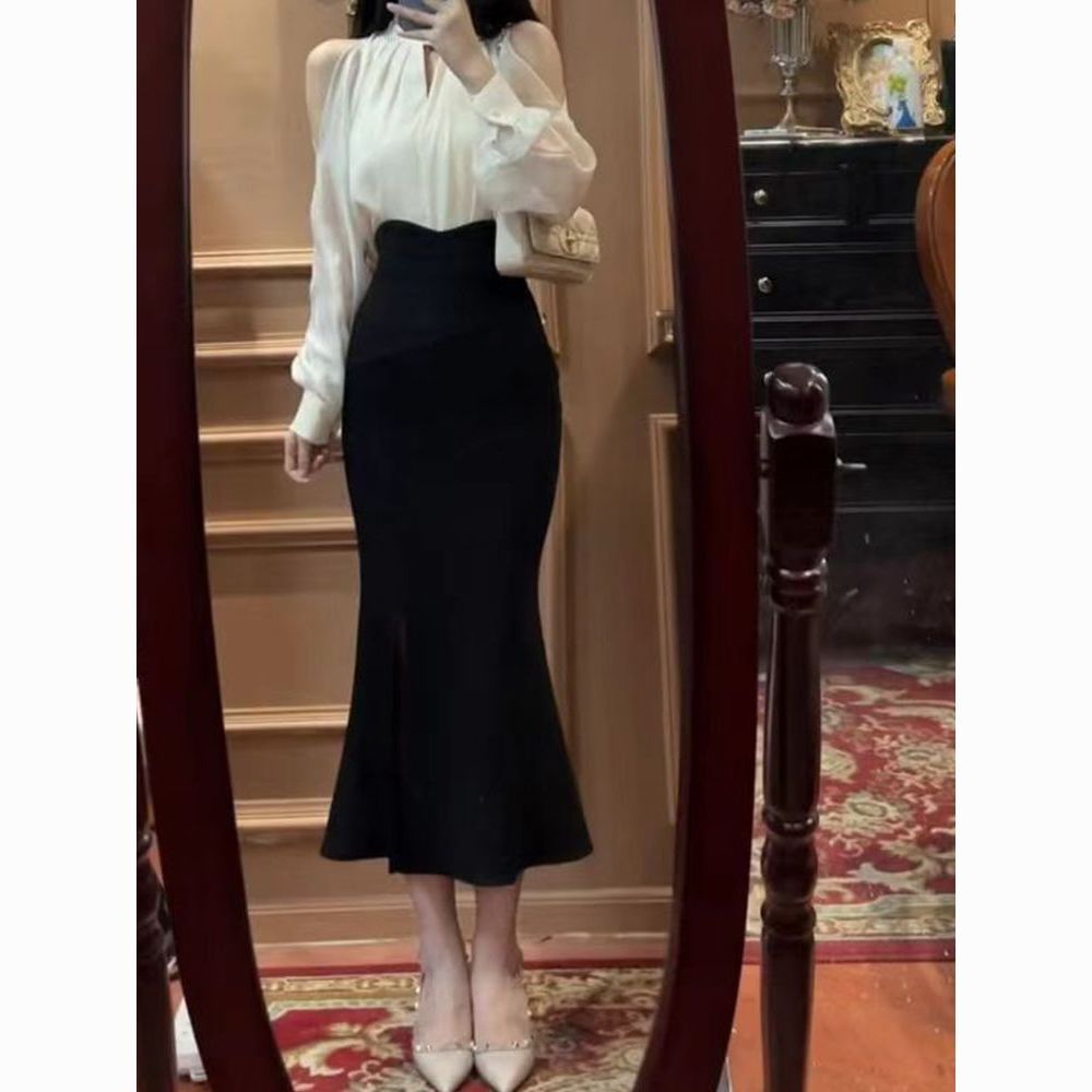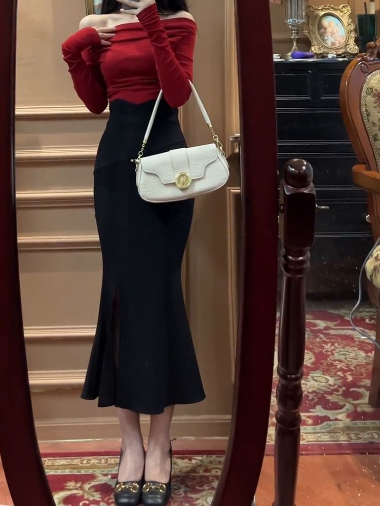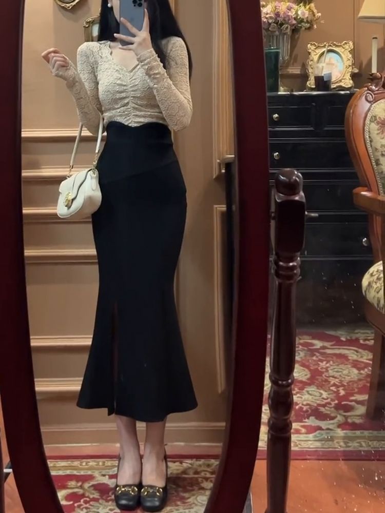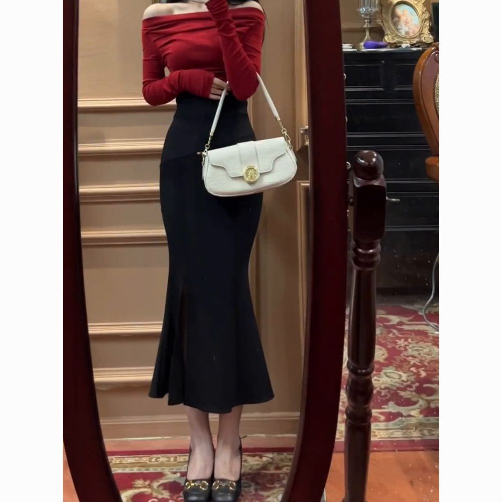 victory&vera鱼尾裙高腰小个子黑色包臀半身裙气质高级感紧身
