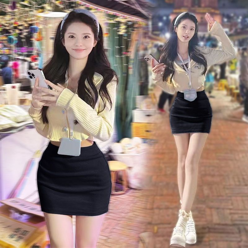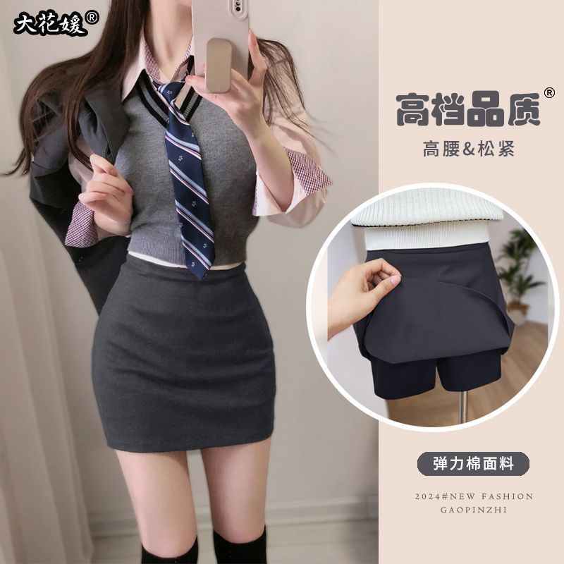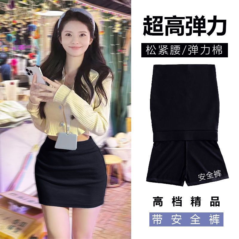 [95%棉]辣妹包臀裙防走光超短裙紧身高腰一步裙遮肉半身裙松紧腰