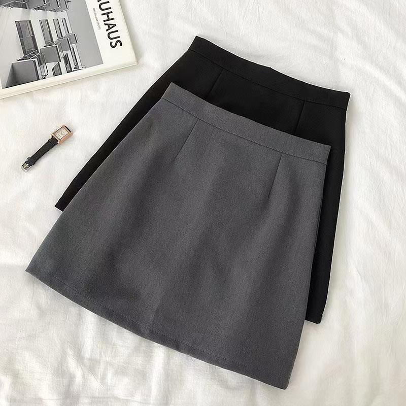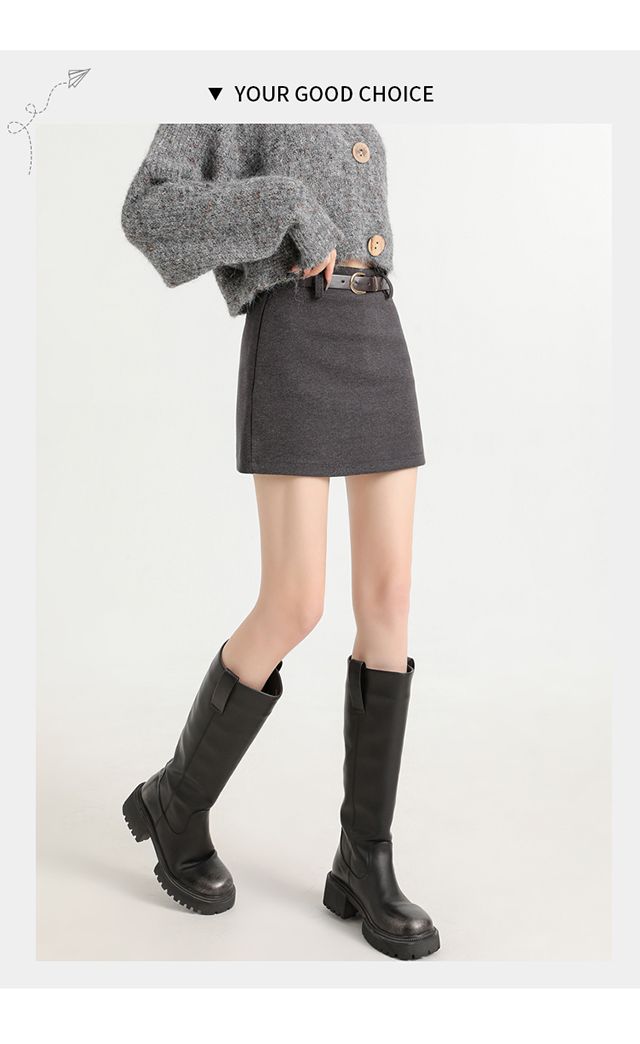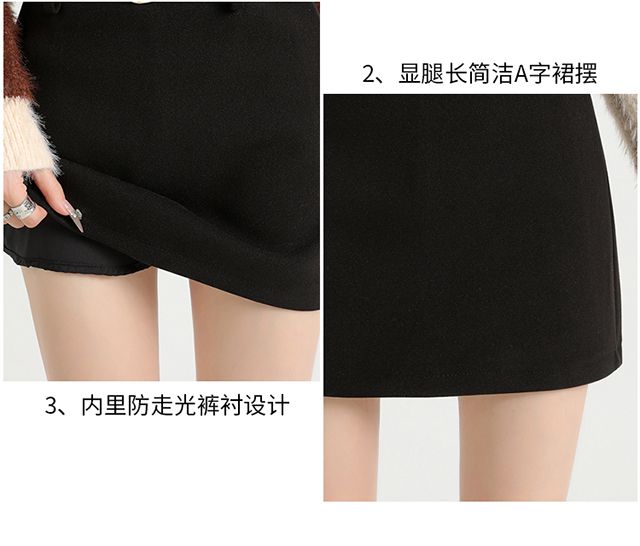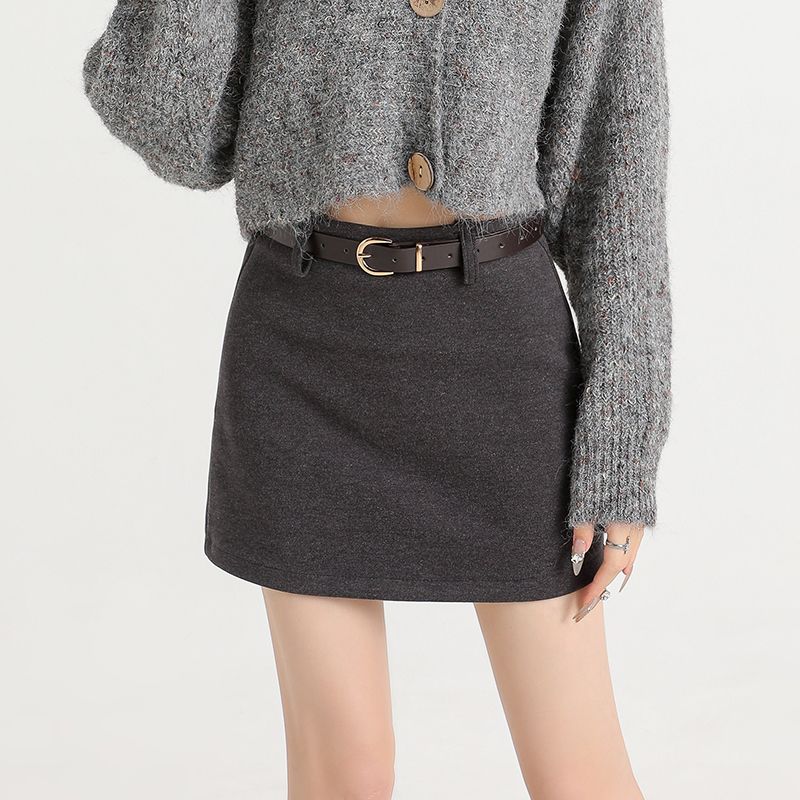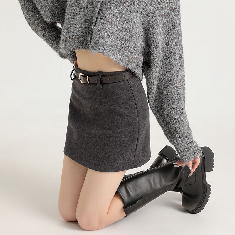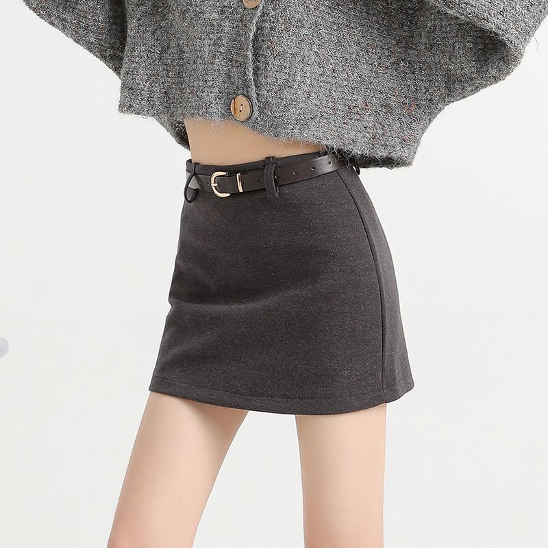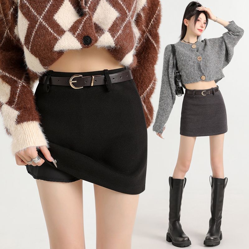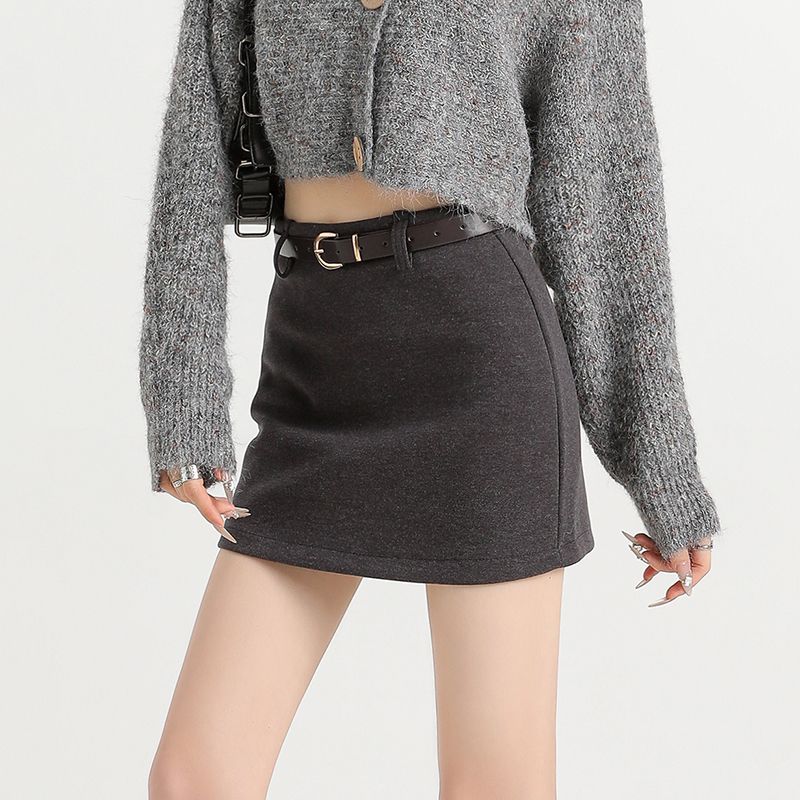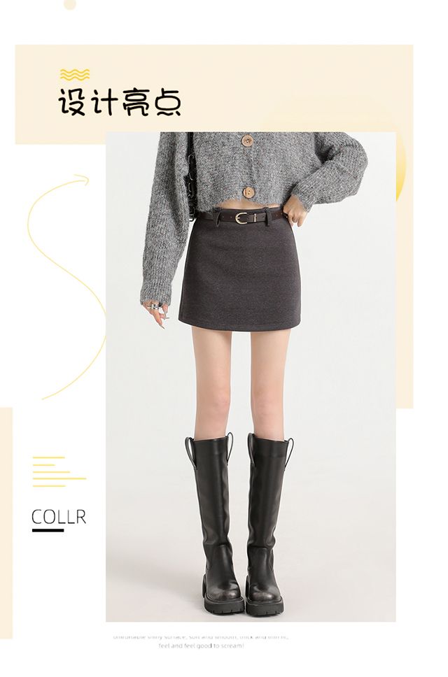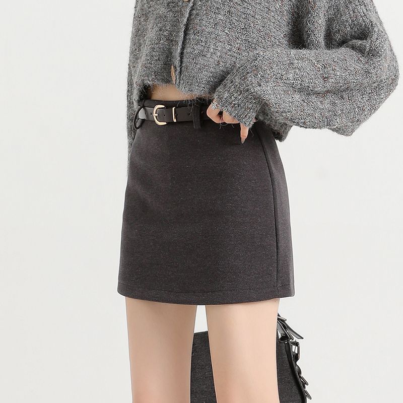 灰色毛呢半身裙女秋冬季高腰显瘦时尚百搭磨毛包臀防走光a字短裙