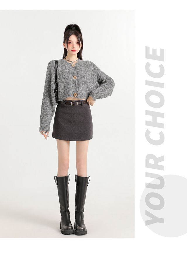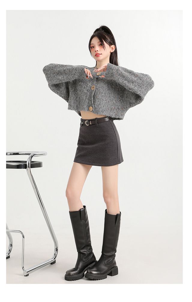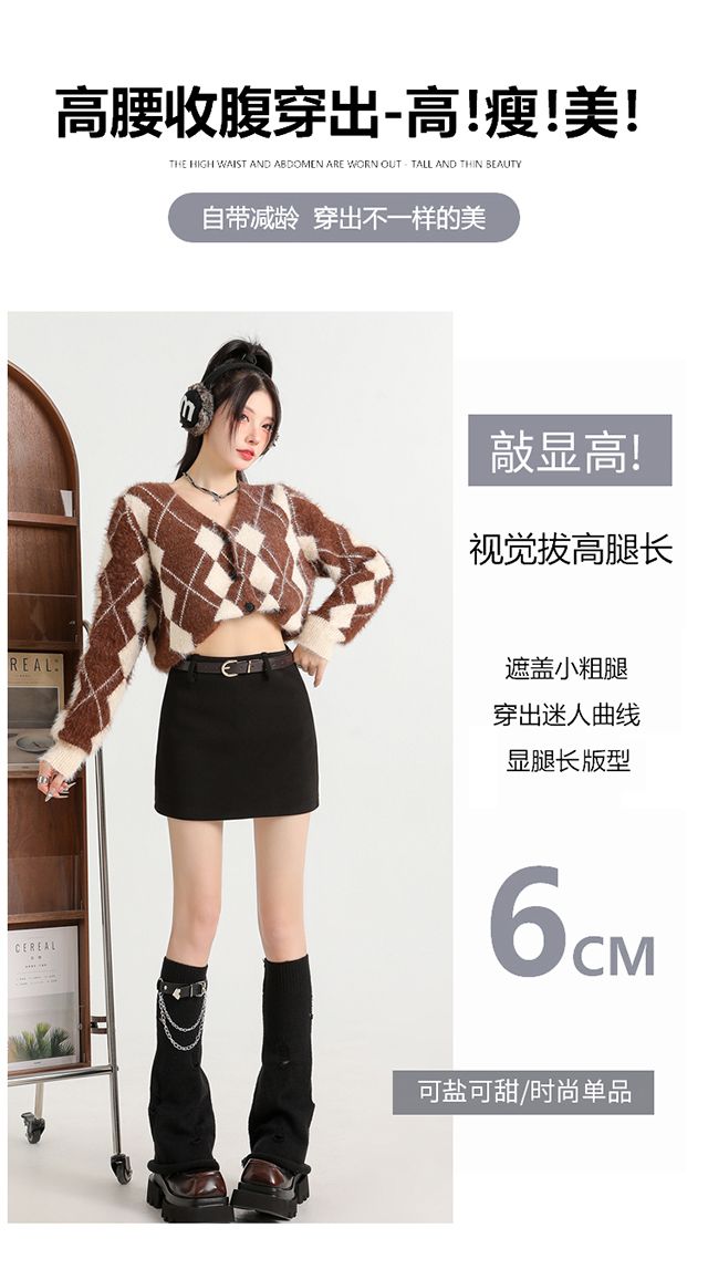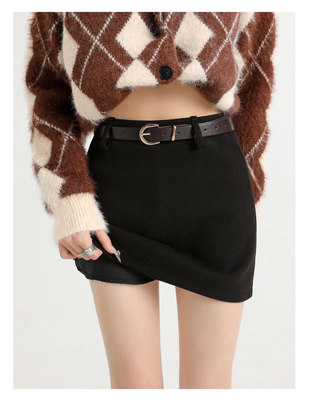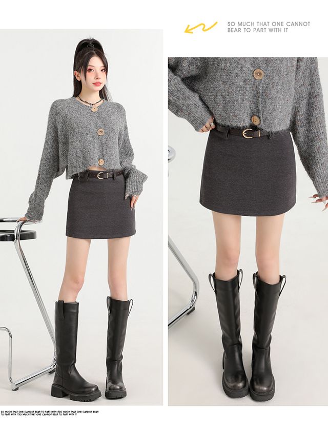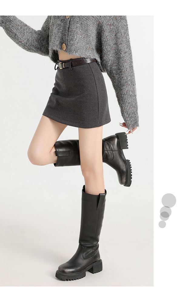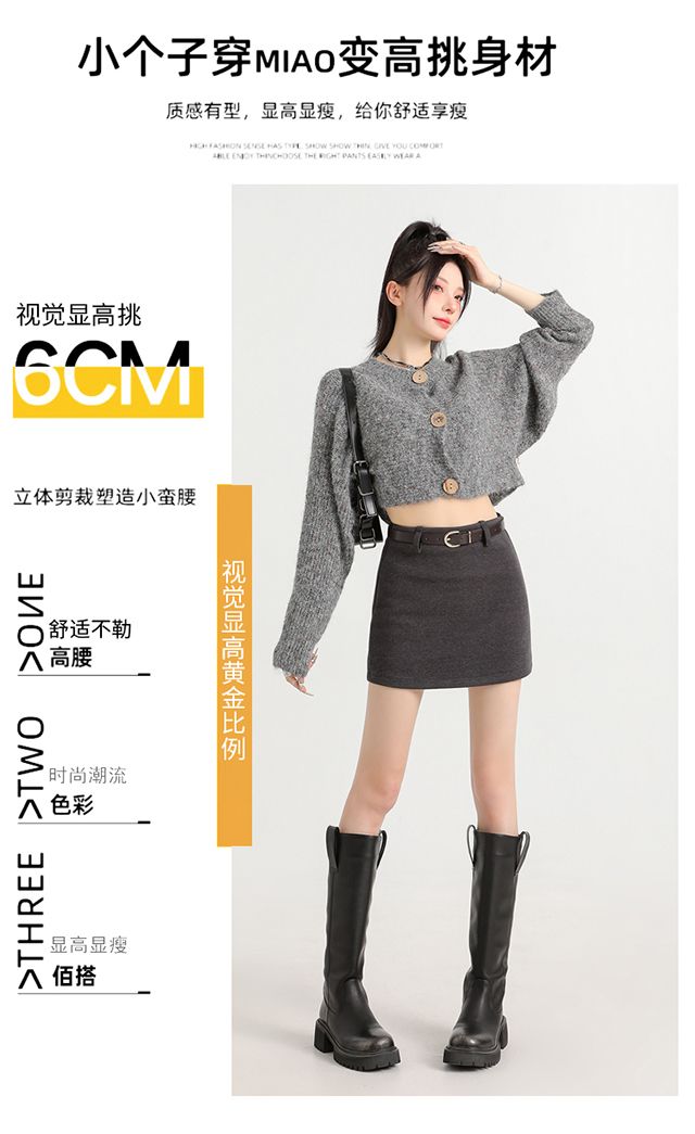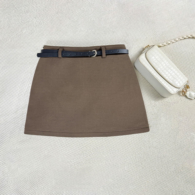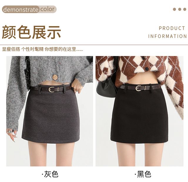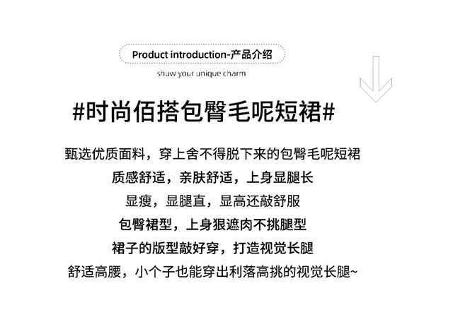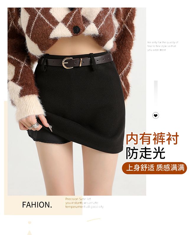 灰色毛呢半身裙女秋冬季高腰显瘦时尚百搭磨毛包臀防走光a字短裙