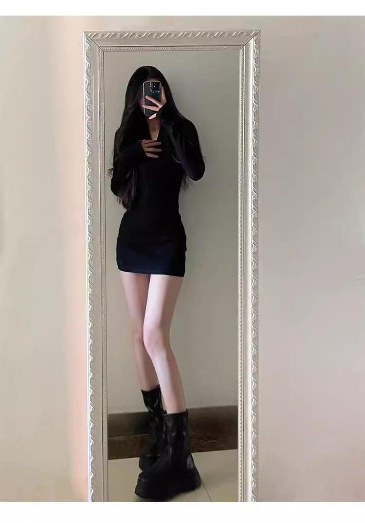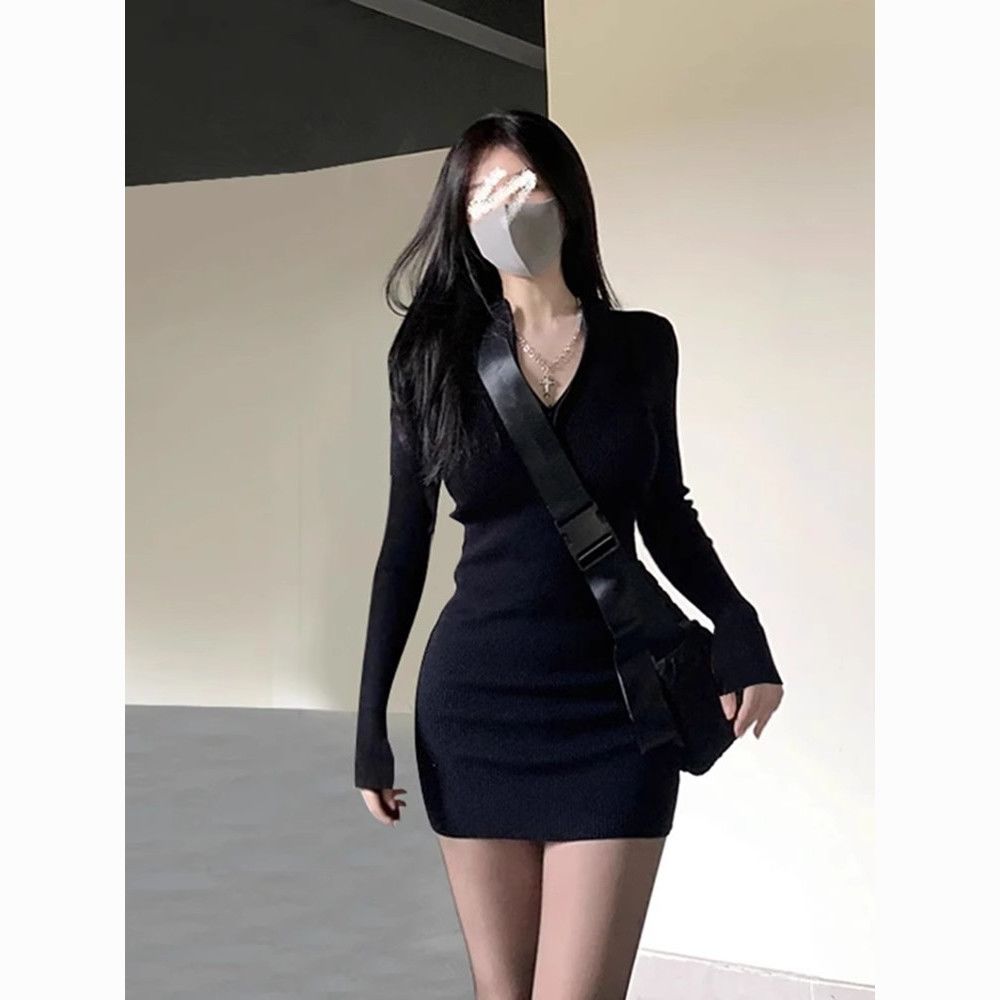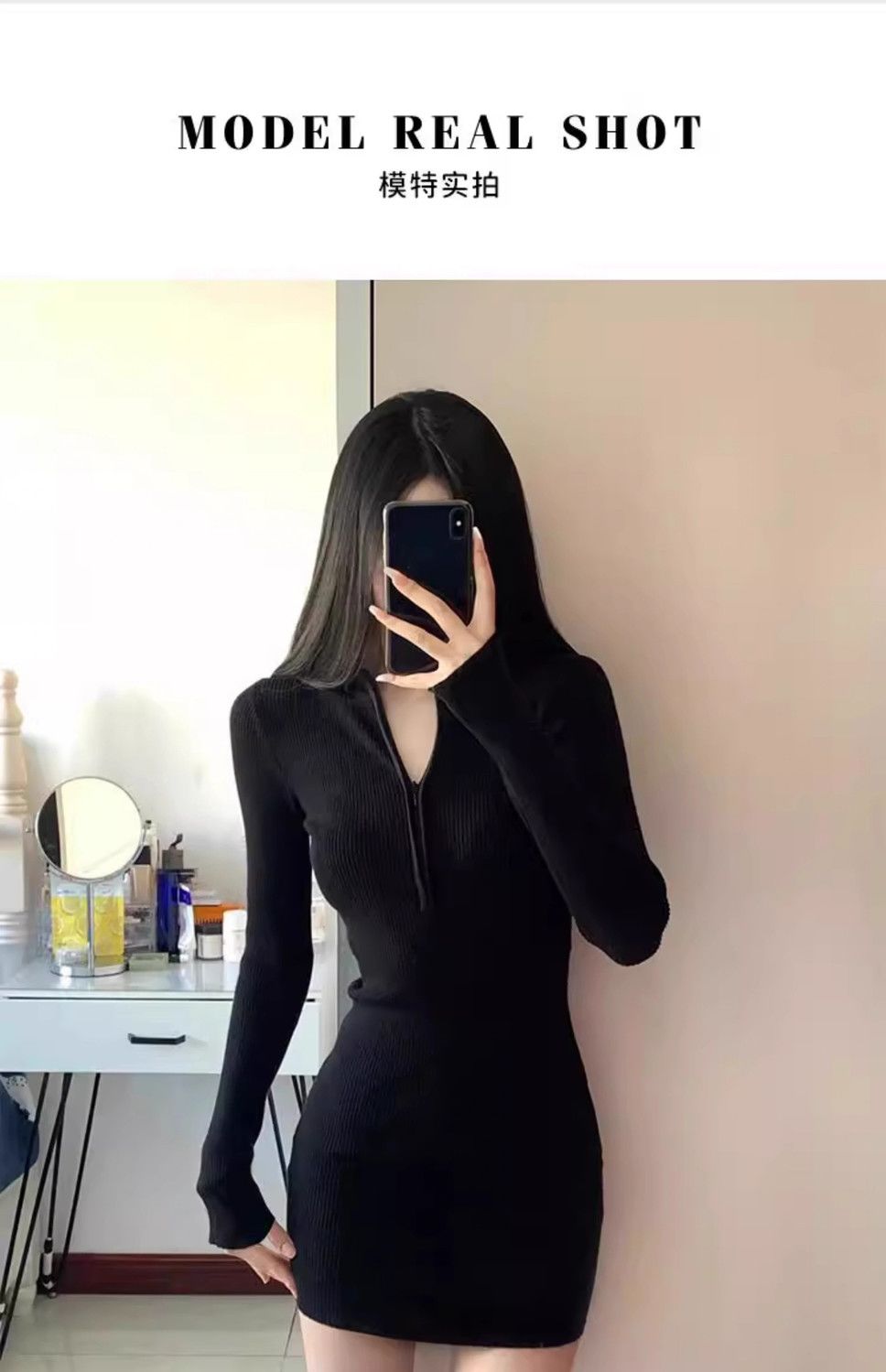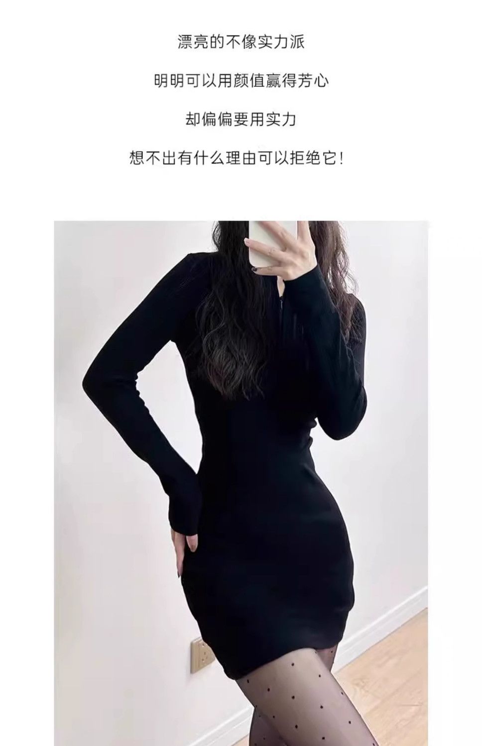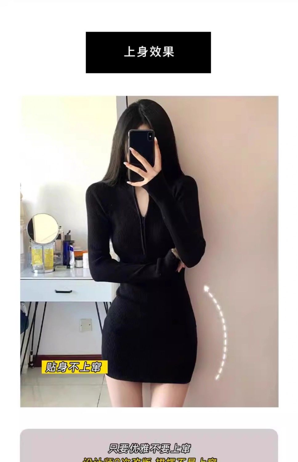 加厚加绒针织连衣裙女秋冬季新款修身性感辣妹穿搭毛衣包臀短裙子