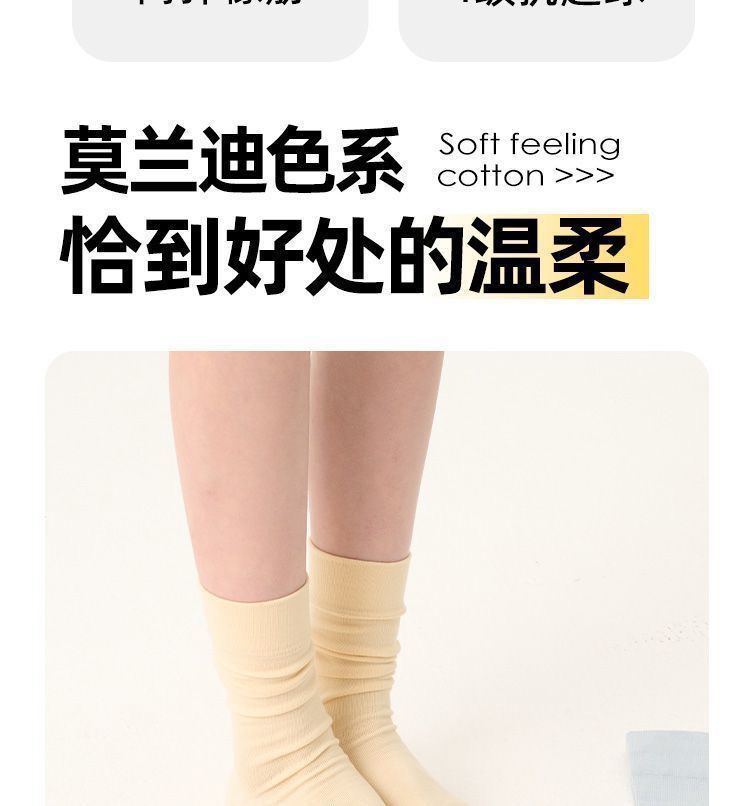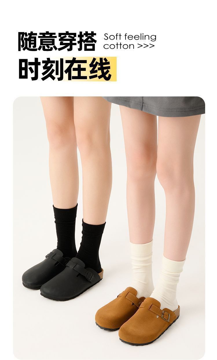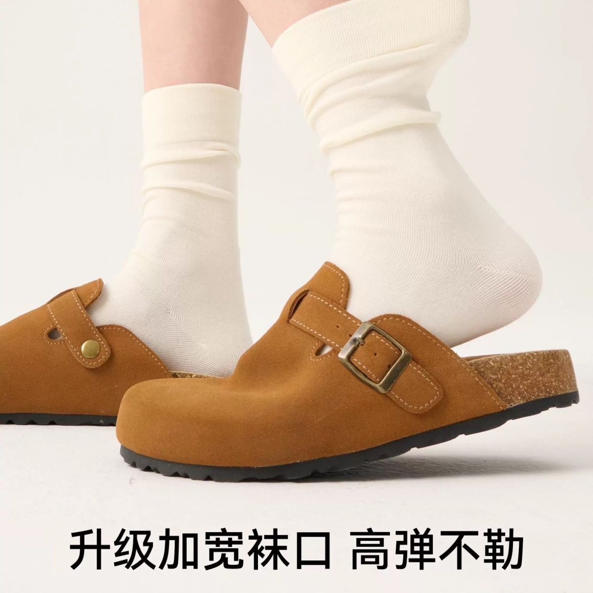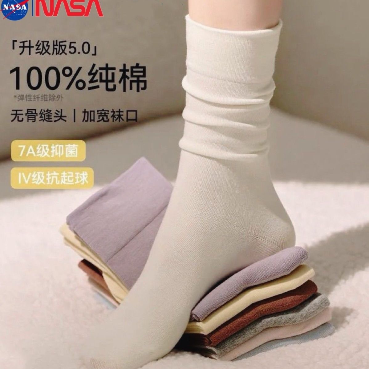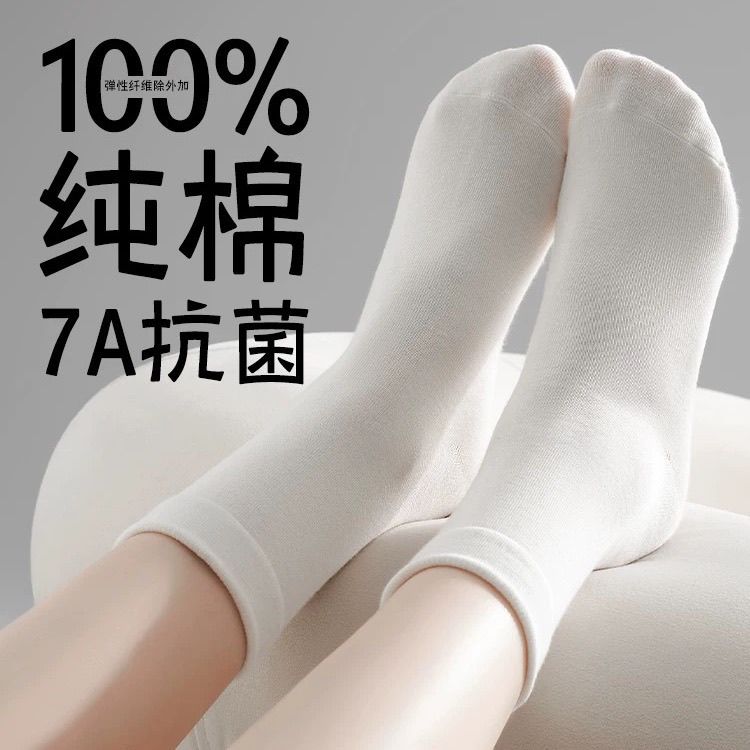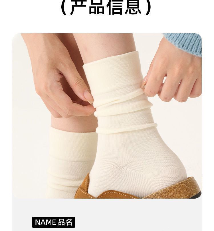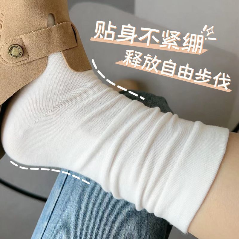 100%棉无骨月子袜子女中筒袜纯棉春秋白色堆堆袜纯色秋冬松口长袜