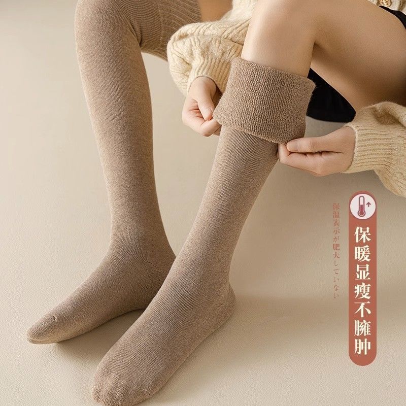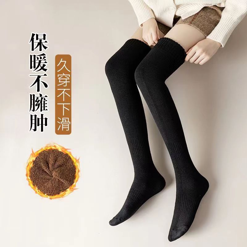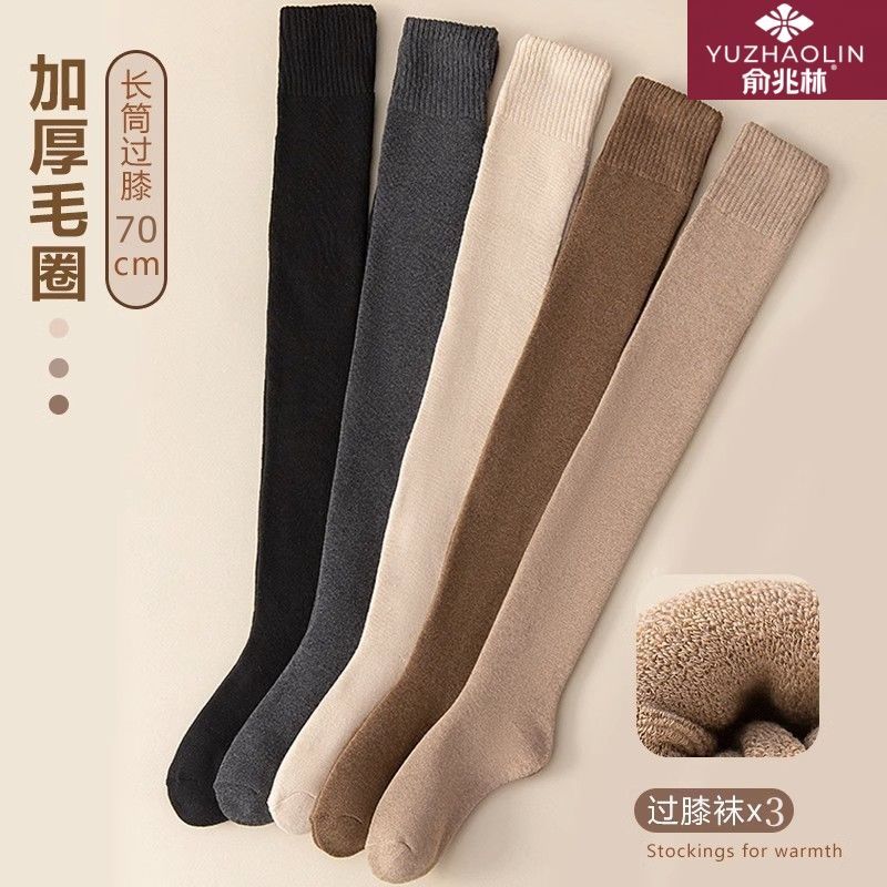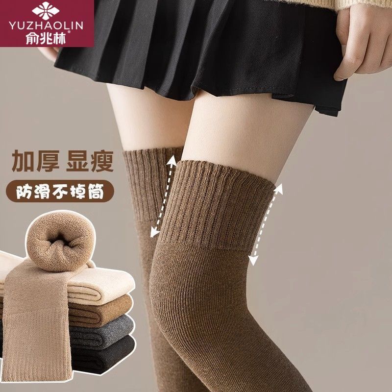 俞兆林秋冬加绒加厚保暖过膝长筒袜毛圈大腿袜显瘦防掉厚膝盖女款