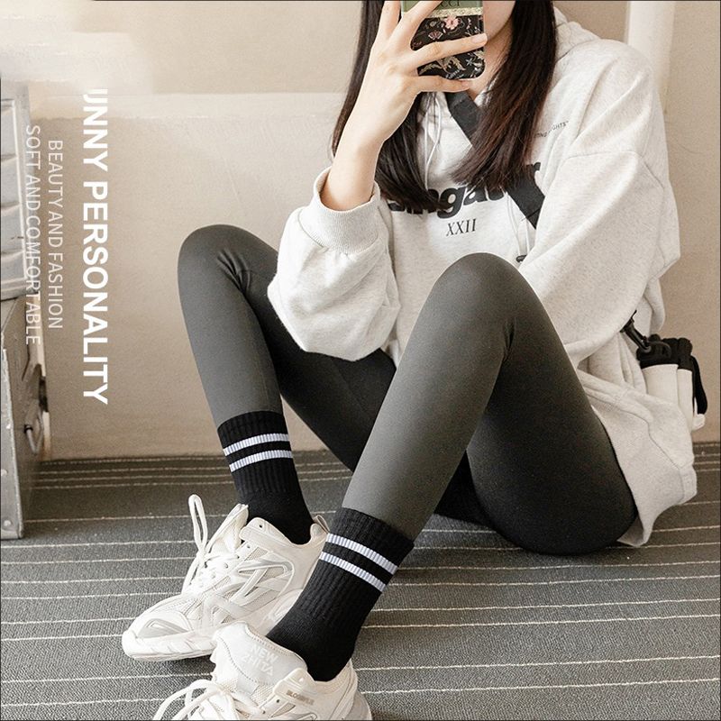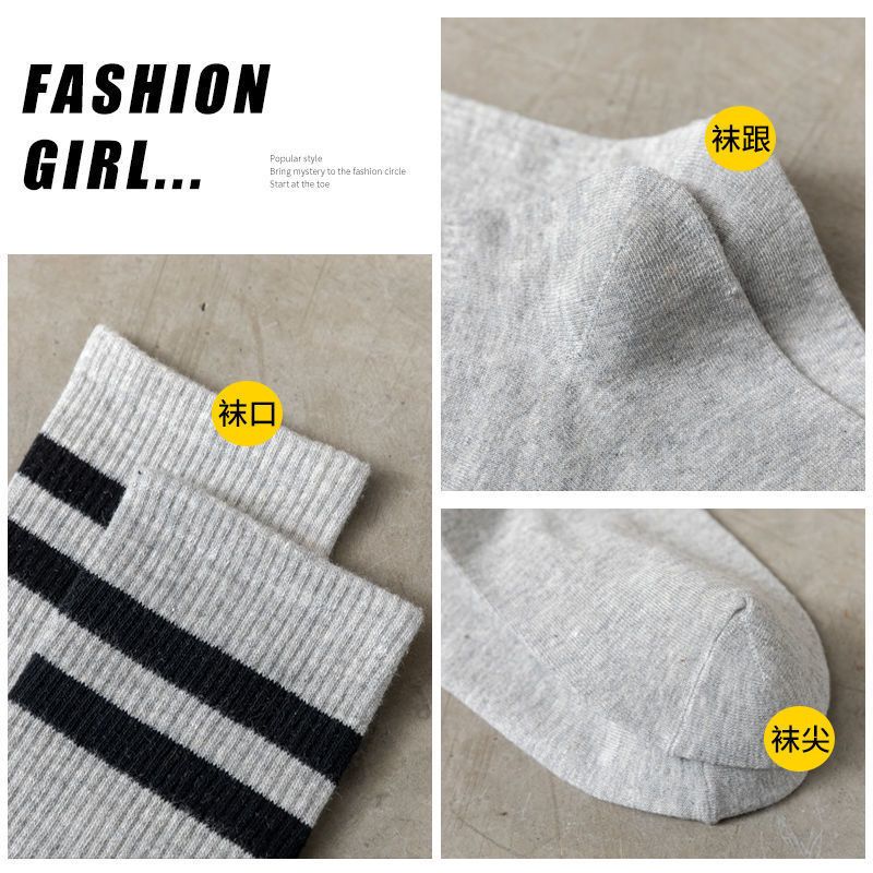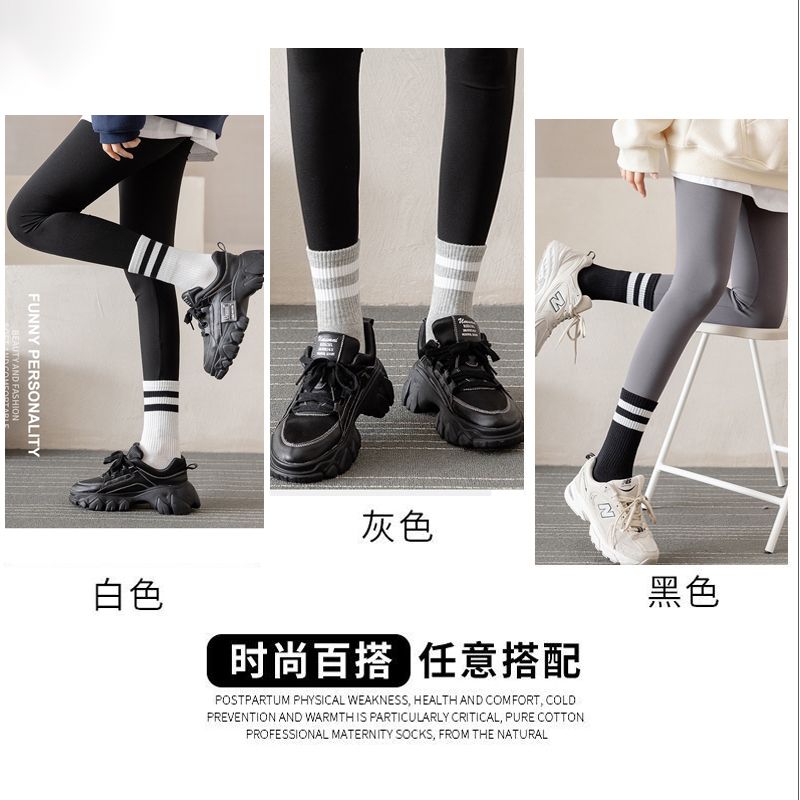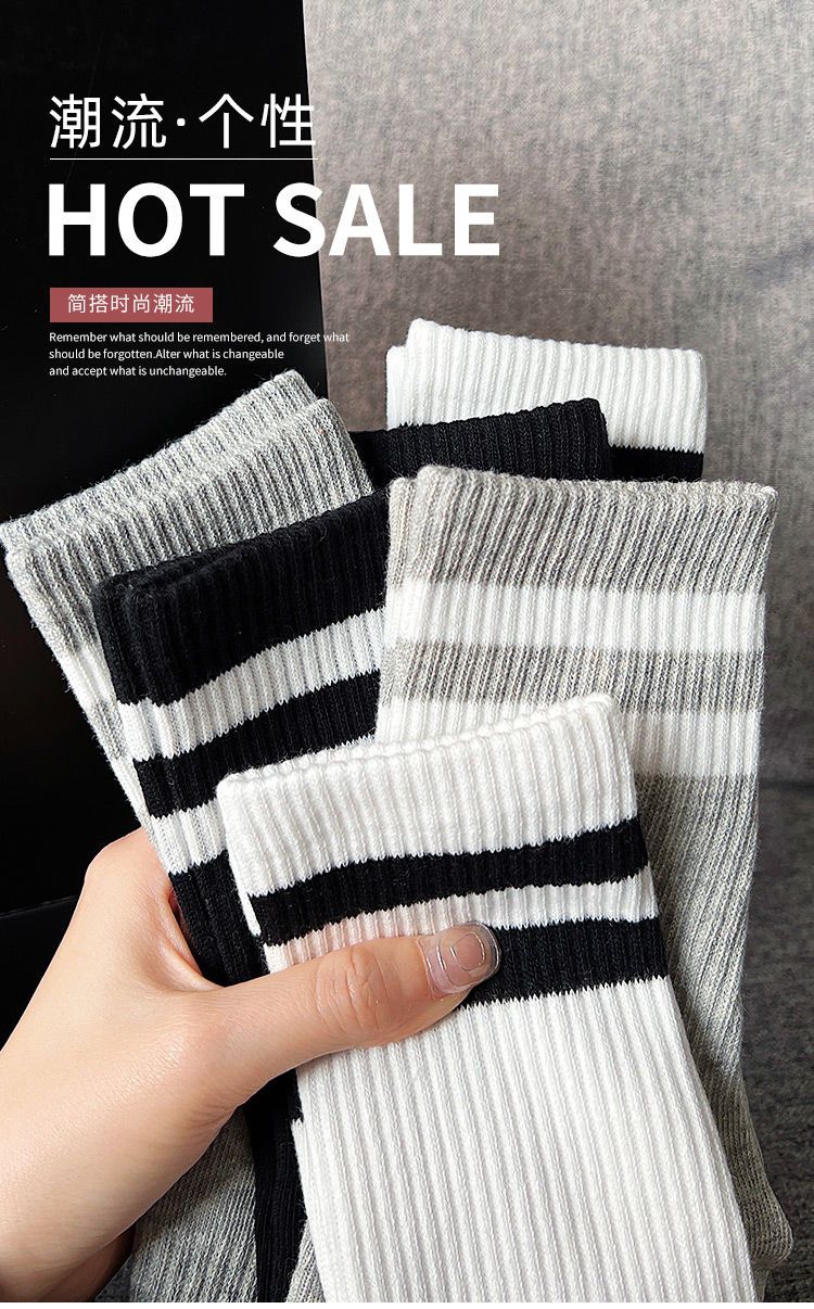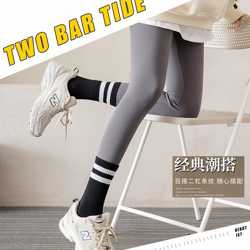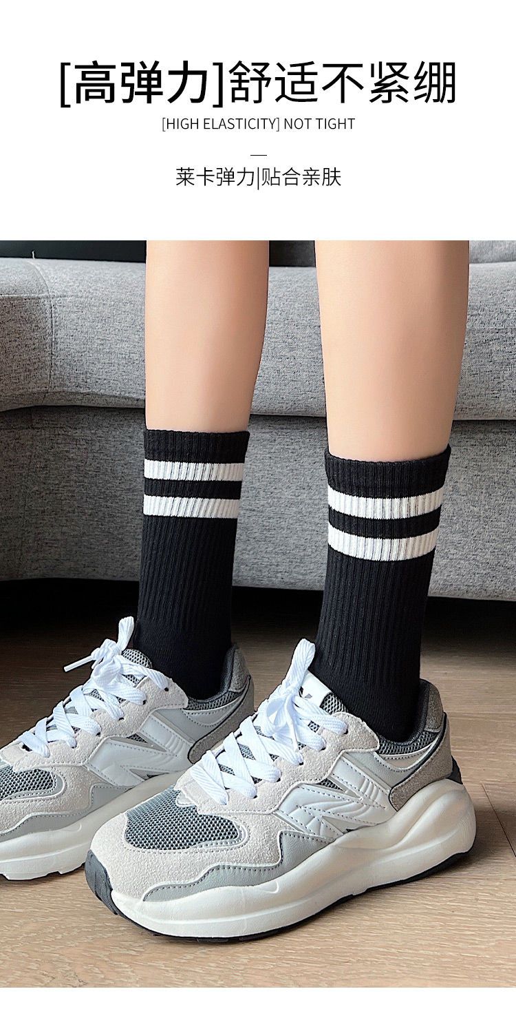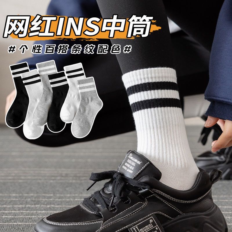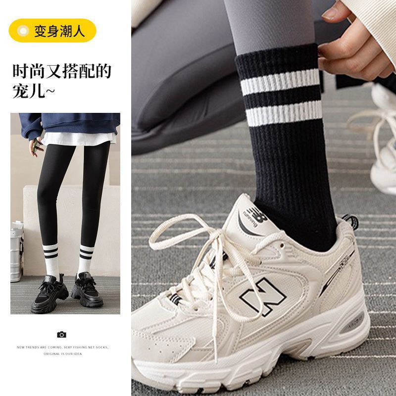长袜子女中筒袜秋冬条纹白色ins潮运动纯色百搭黑色长筒袜