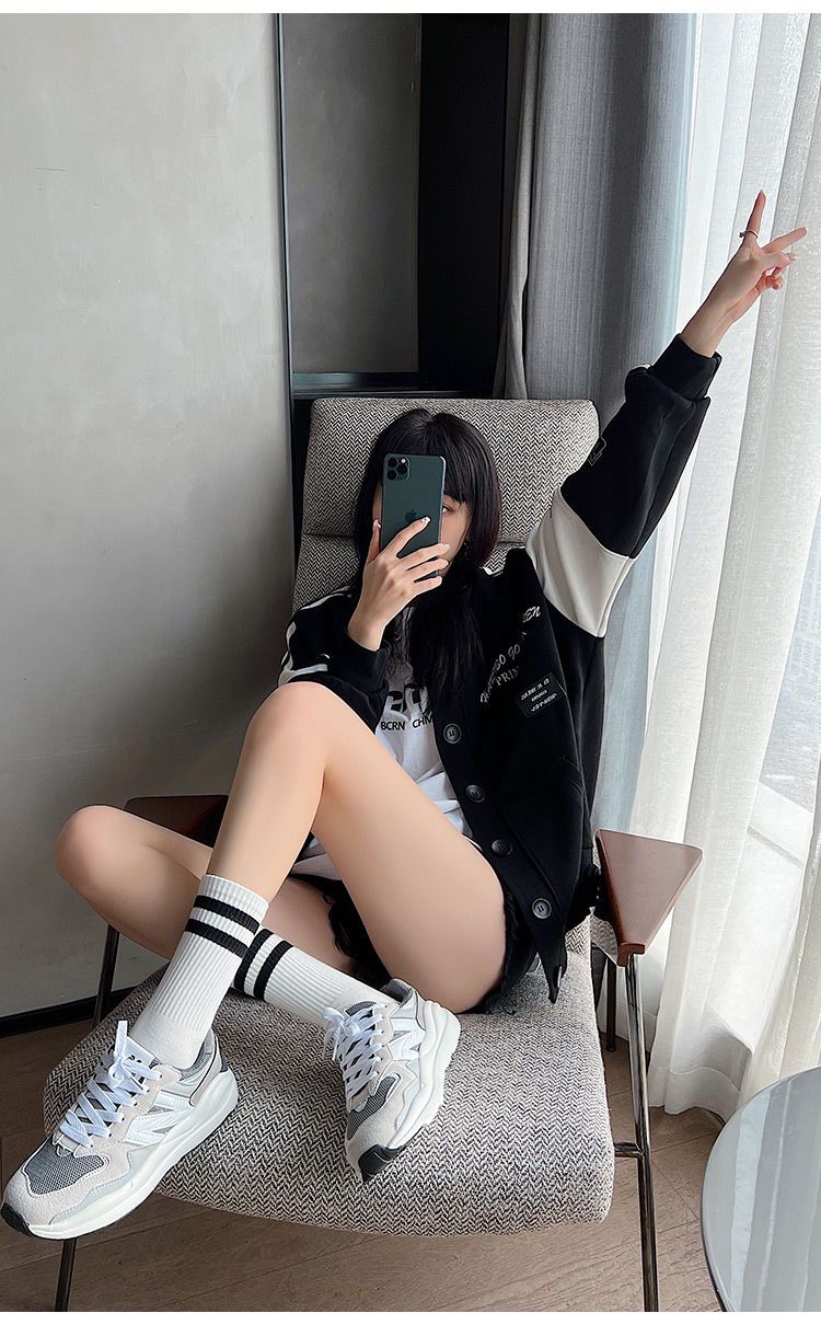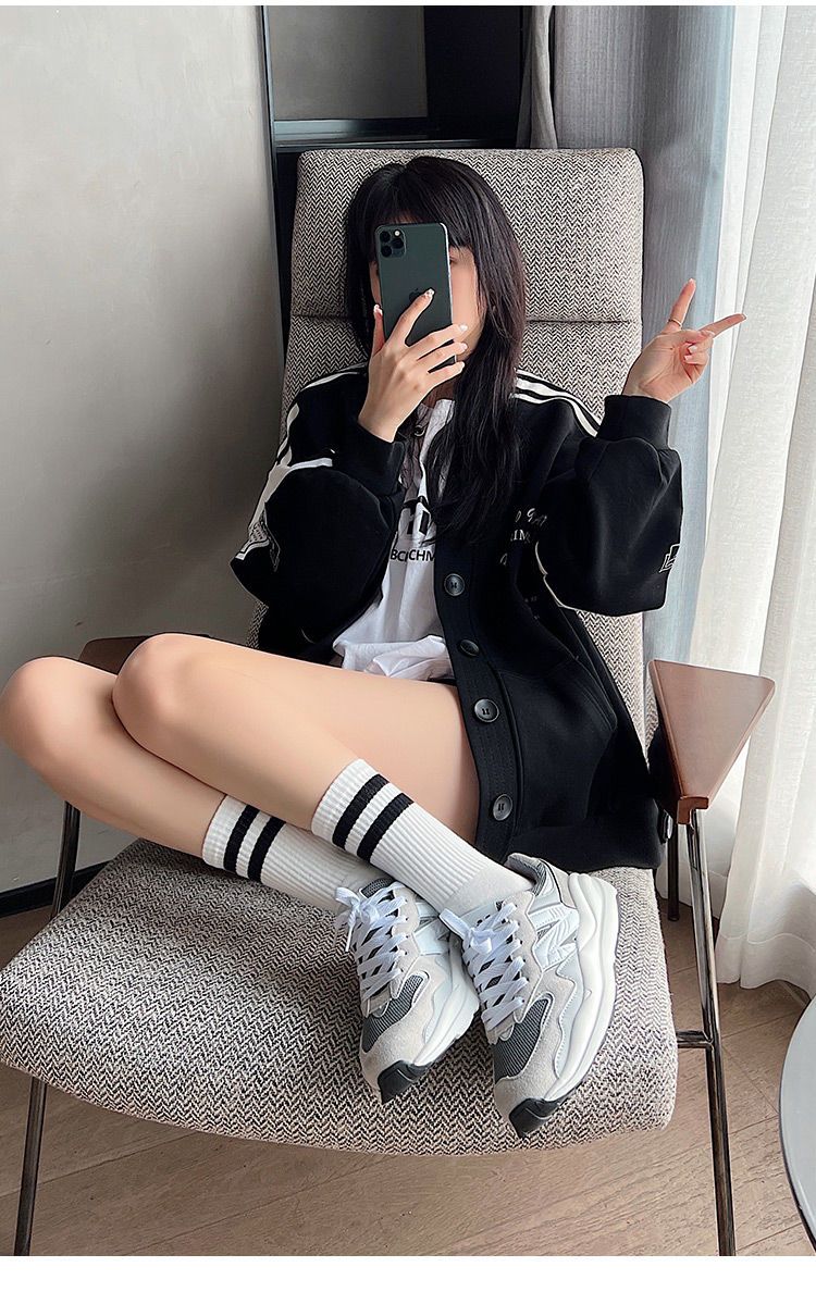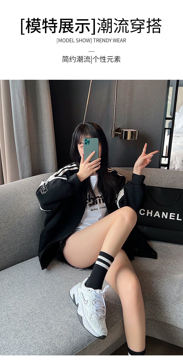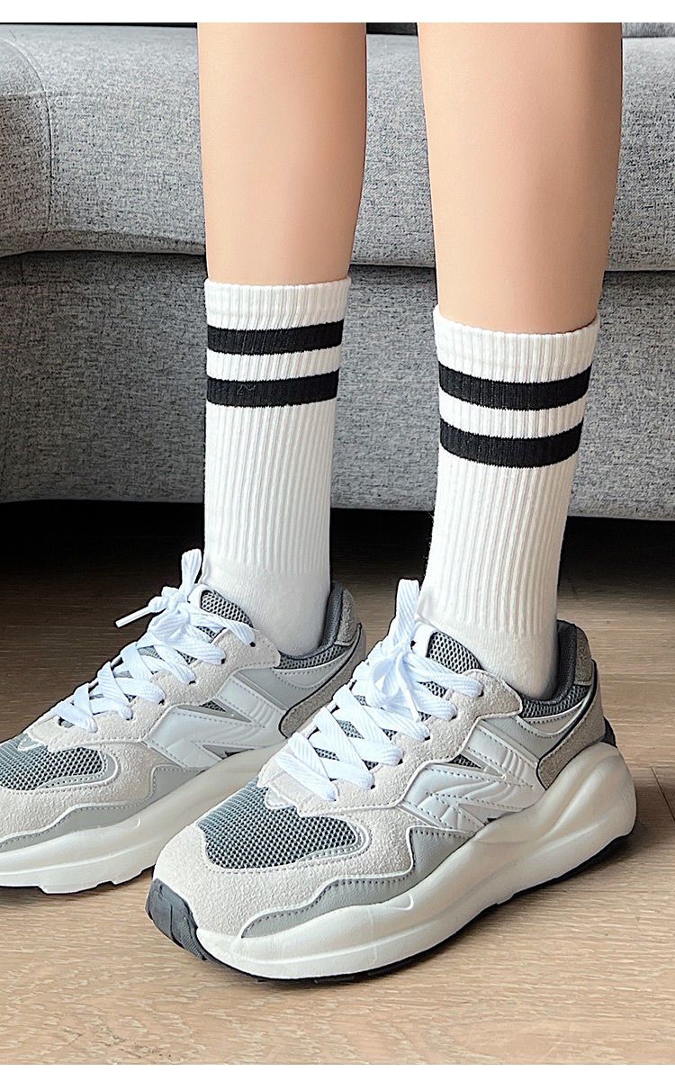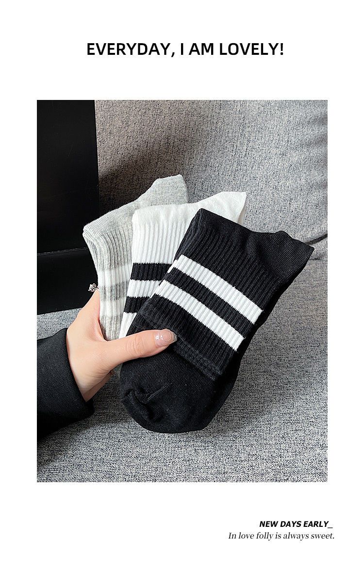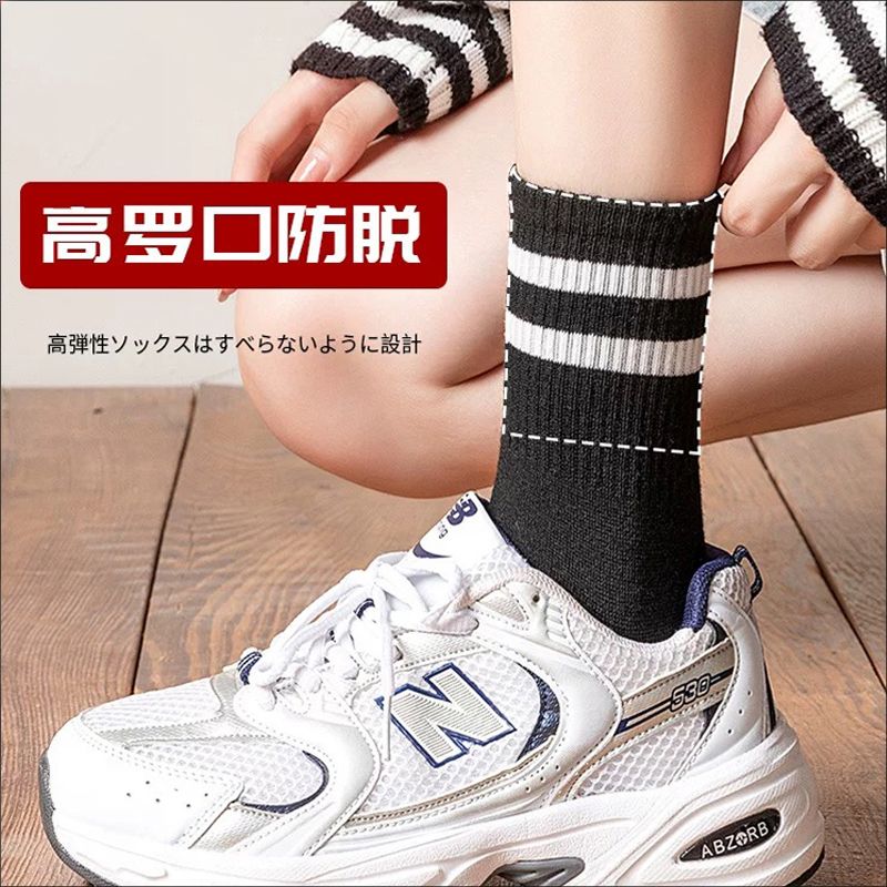 长袜子女中筒袜秋冬条纹白色ins潮运动纯色百搭黑色长筒袜