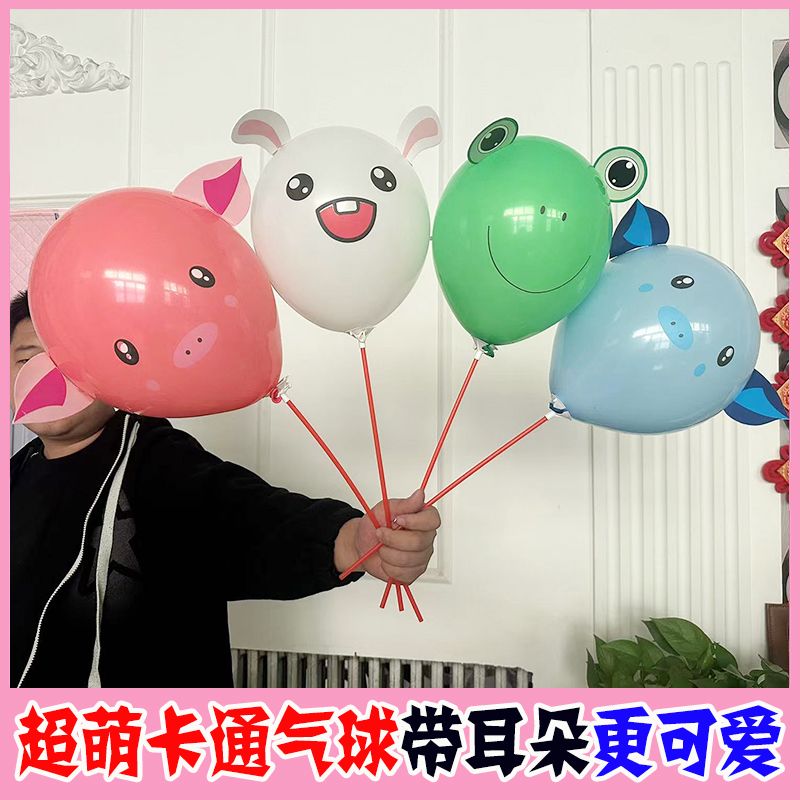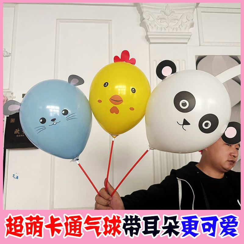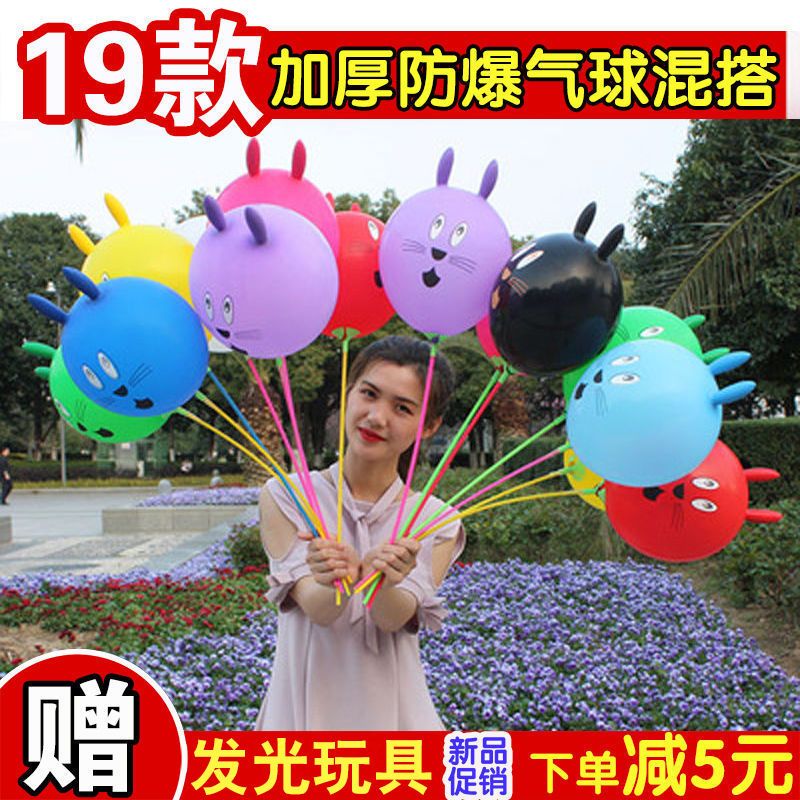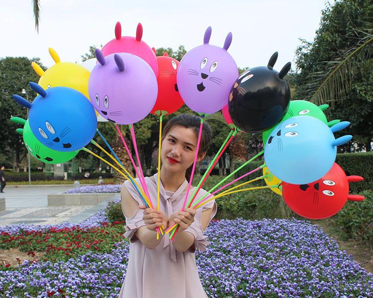 微商扫码小礼品加厚异形地推动物儿童发光带耳朵托杆卡通乳胶气球