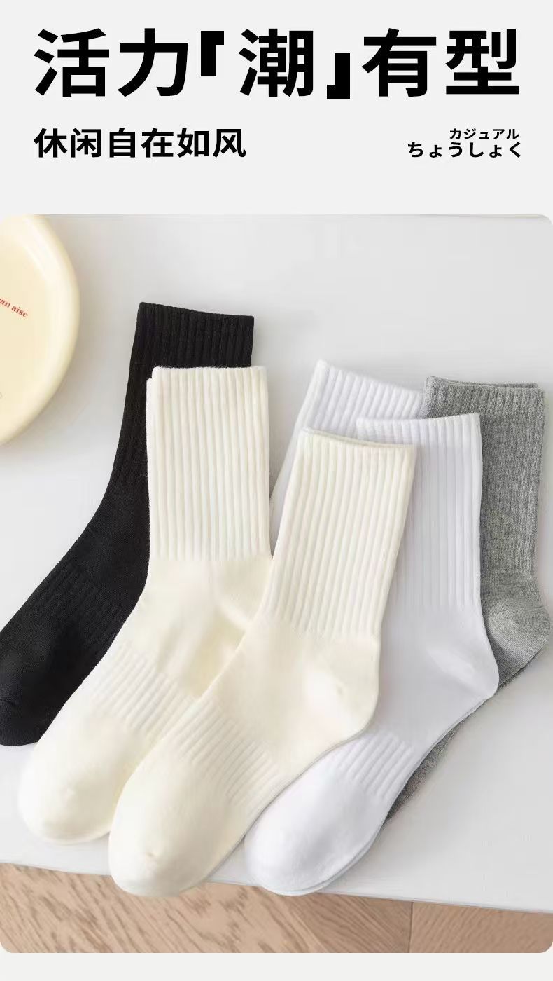 诸暨袜子女款中筒秋冬款ins潮百搭纯色长筒运动情侣长袜女高颜值
