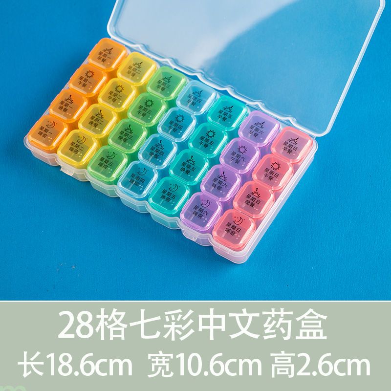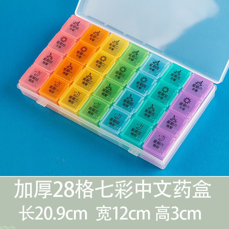 | colorful thickened large 28-grid pill box(七彩加厚大号28格药盒) | USD $2.38 | 999999 piece available |