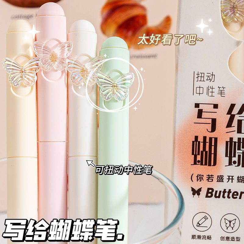 写给蝴蝶旋转中性笔ins风高颜值学生速干闺蜜笔软套0.5速干CS黑笔
