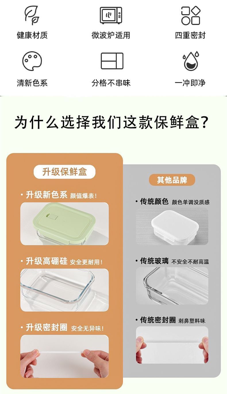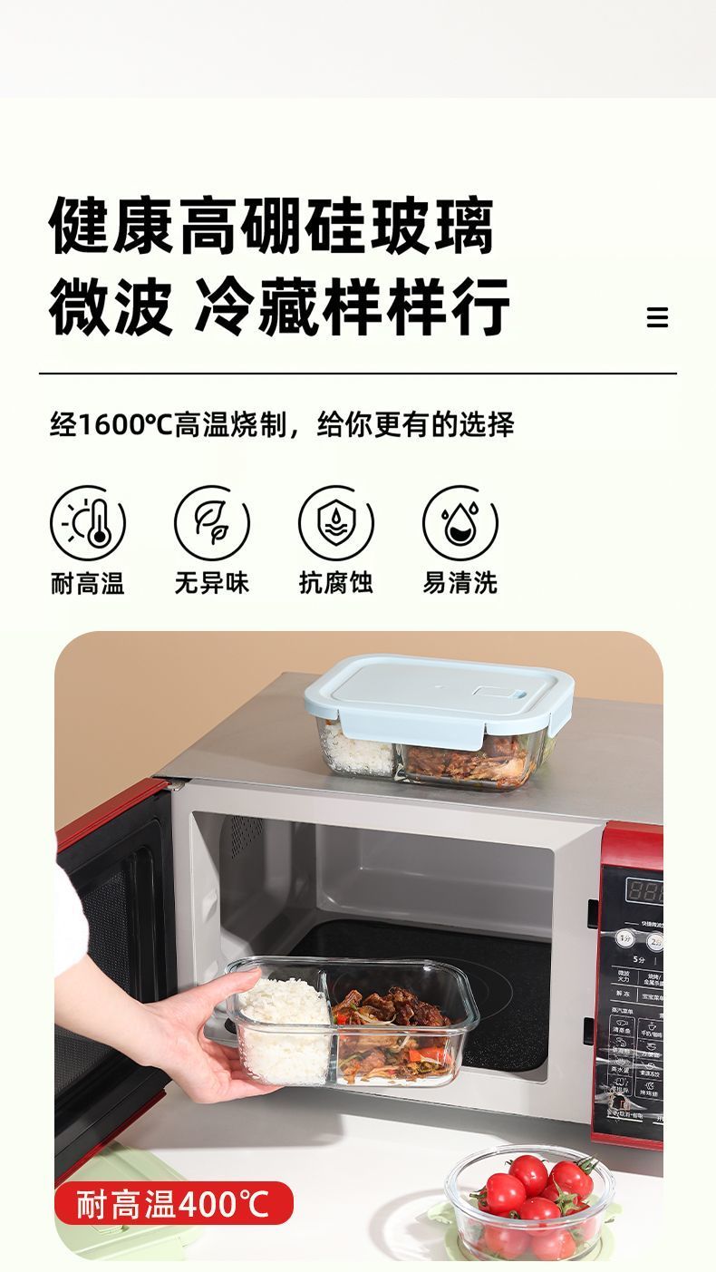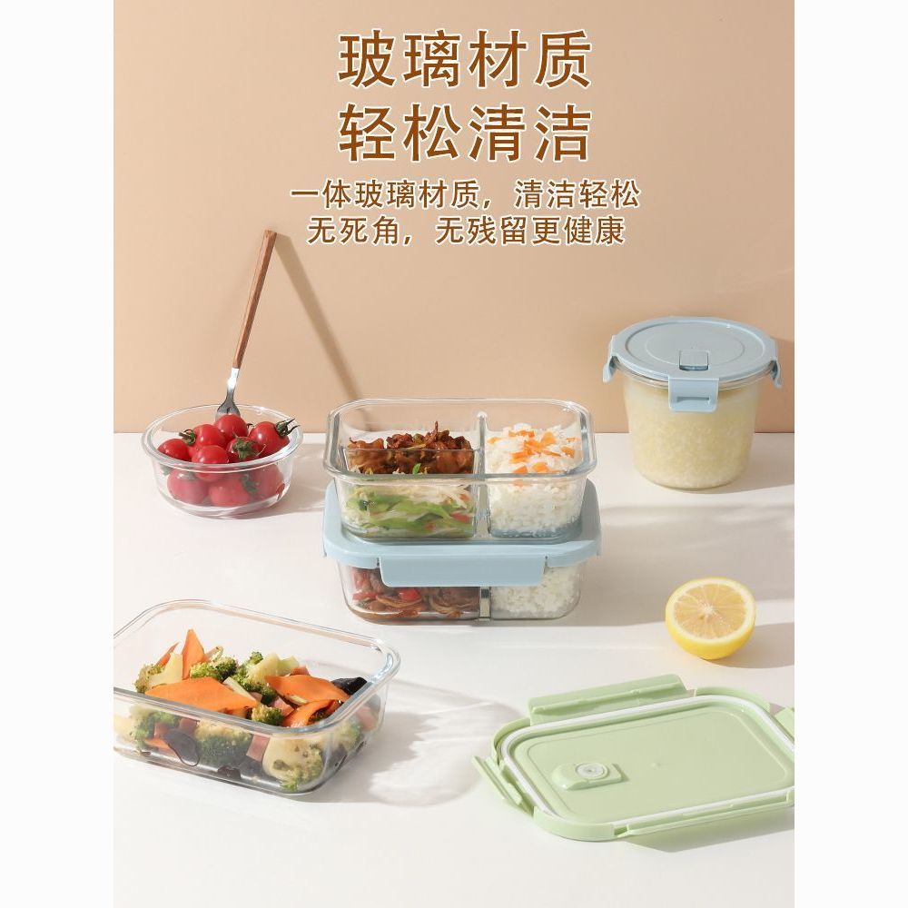玻璃饭盒可加热微波炉专用上班族带饭带盖餐盒分隔断不串味便当盒