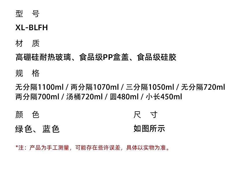 | no separation 1150 + two separation 1075 + bag + tableware(无隔1150+两隔1075+包+餐具) | USD $8.25 | 999999 piece available |