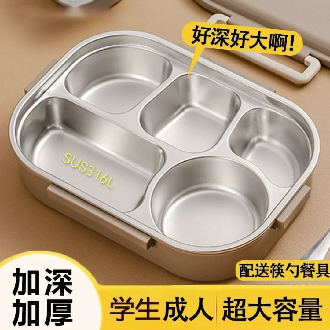 316不锈钢餐盘密封分格盘带盖成人商用学生饭盘食堂带碗快餐盘