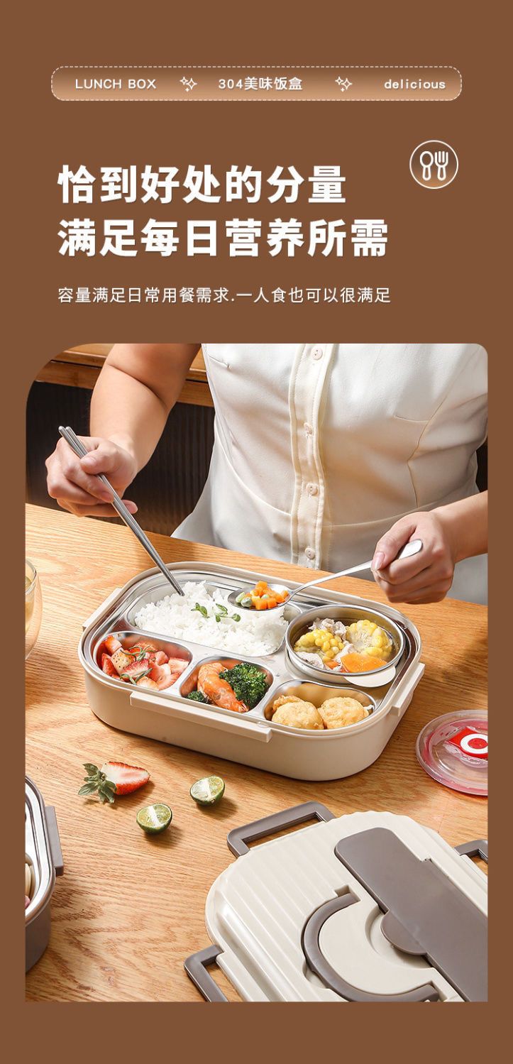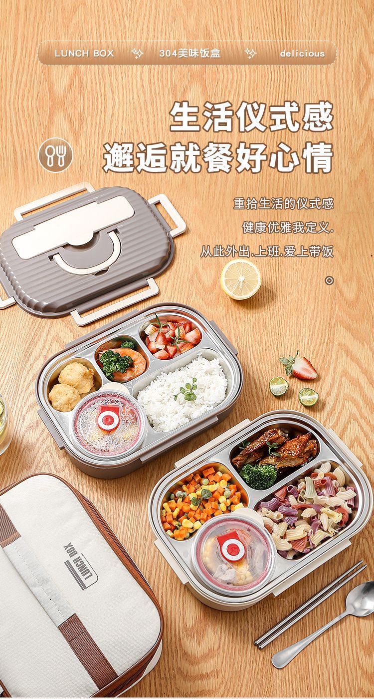 | four grids +304 soup bowl + thermal bag + tableware(四格+304汤碗+保温袋+餐具) | USD $6.47 | 999999 piece available |